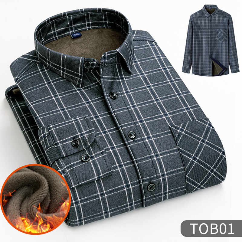 따뜻한 셔츠 남자의 긴팔 가을과 겨울 비즈니스 캐주얼 격자 무늬 셔츠 기모 중년 아빠를위한 두꺼운 내부 셔츠