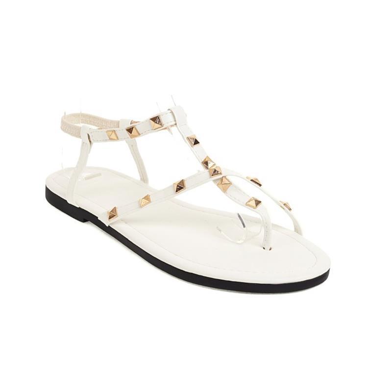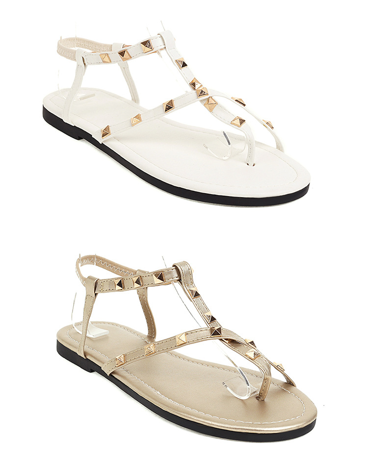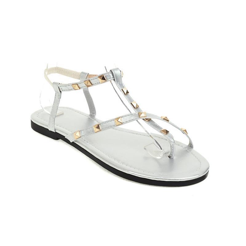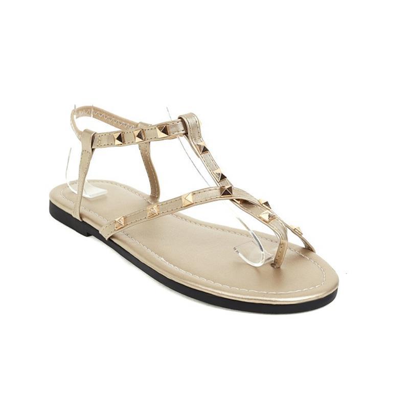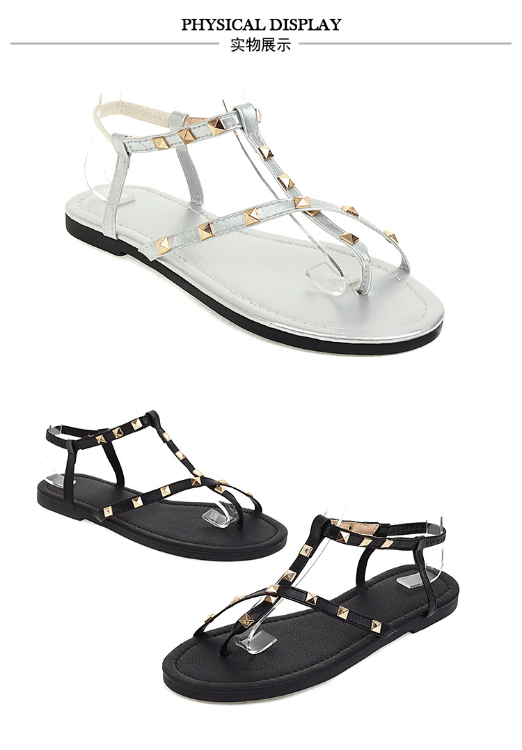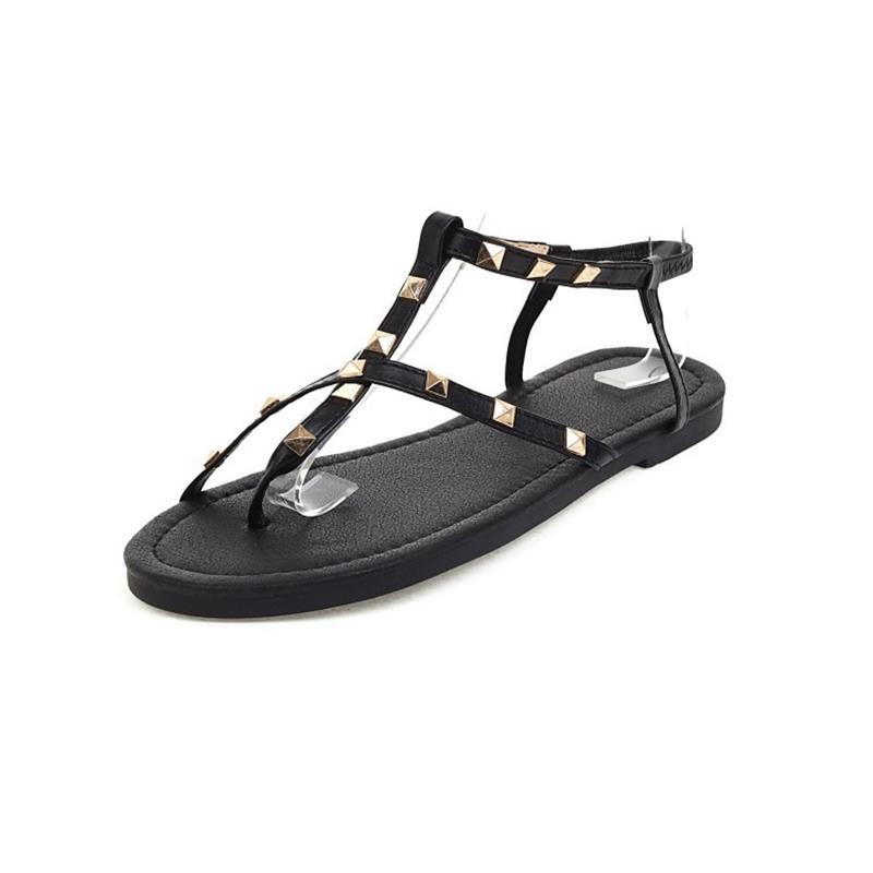 40-42 외국 무역 플러스 사이즈 숙녀 플랫 샌들 리벳 여름 클립 발가락 발목 버클 샌들 W40 의 세대