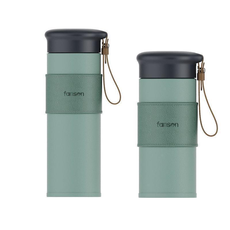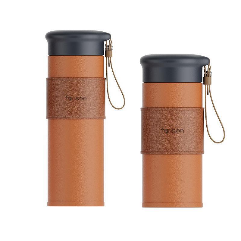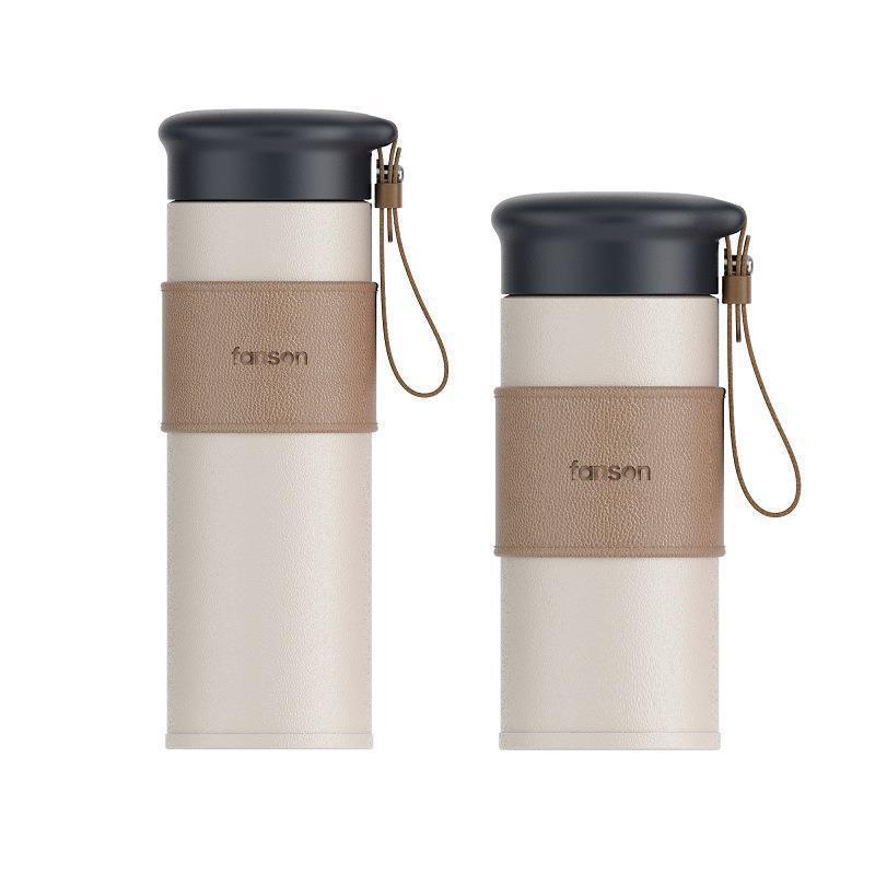 Acus Bose 스테인레스 스틸 보온병 가죽 패턴 비즈니스 사무실 실리콘 커버 선물 차 칸막이가있는 진공 물 컵