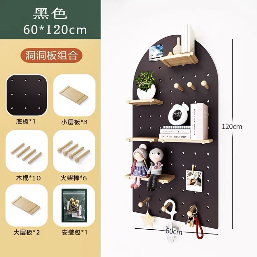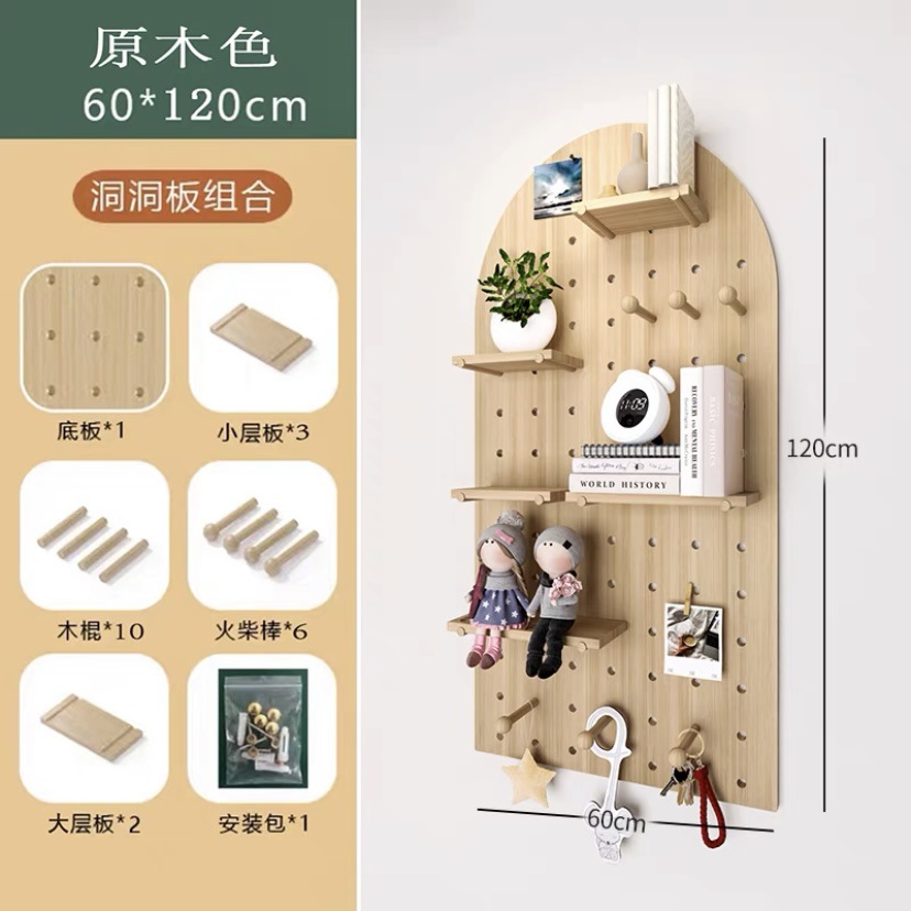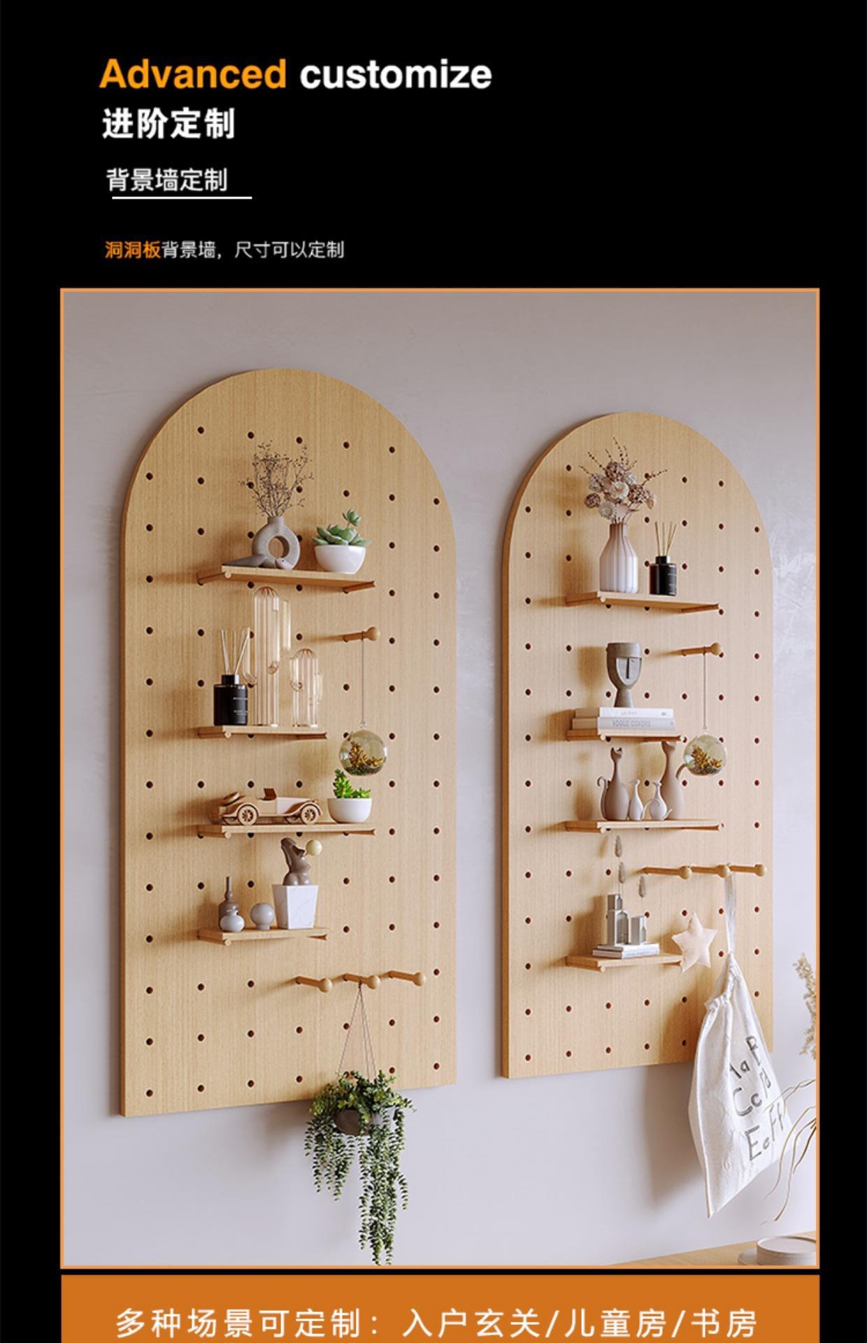 단단한 나무 구멍 보드 아치 벽 장식 파티션 선반 라미네이트 보드 홈 나무 거실 입구 보관 랙