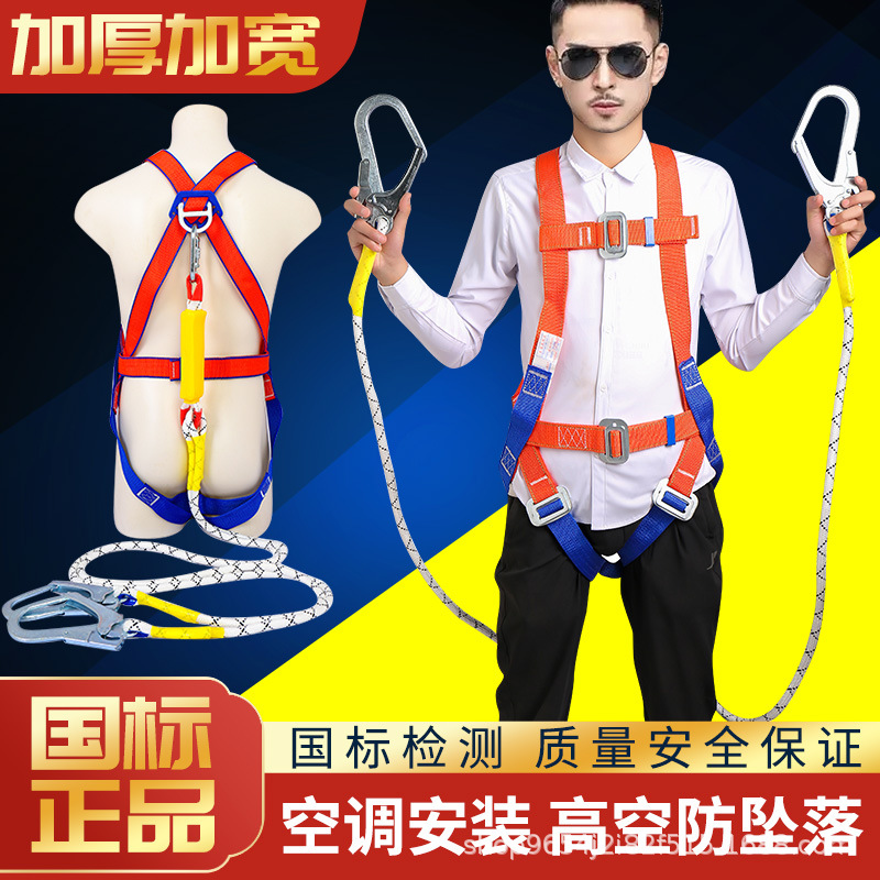 안전 벨트 공중 작업 국가 표준 5 점 야외 안전 로프 더블 후크 전신 에어컨 세트 내마모성 보호 커버스토어 가기