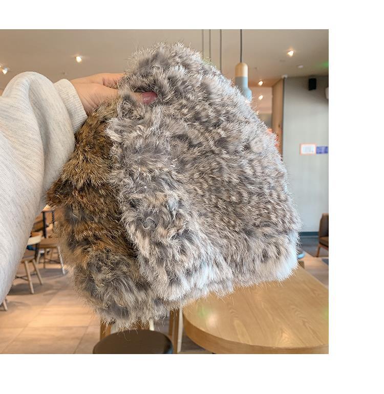 두꺼운 따뜻한 리얼 토끼 봉제 모피 원피스 짠 모자 어린이 겨울 방한 모든 매치 니트 토 울 모자스토어 가기