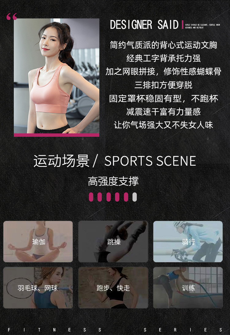 맞춤형 원피스 가슴 패드 고정 컵 고강도 충격 방지 스포츠 속옷 여성의 아름다운 백 스포츠 브래지어