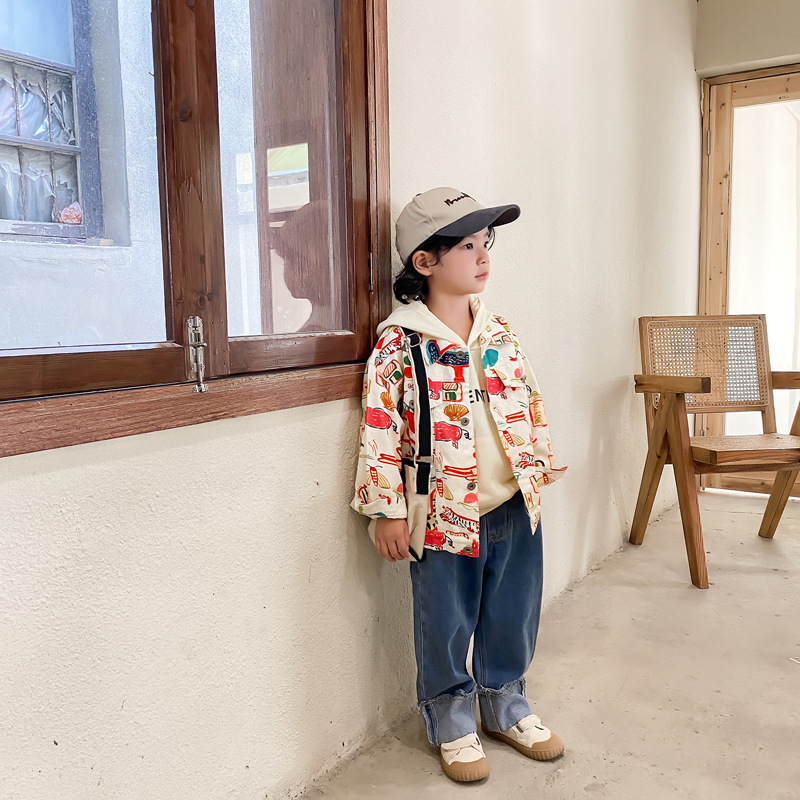2025 새로운 가을 아동 의류 소년 재킷 아동 재킷 소녀 낙서 베이비 데님 탑