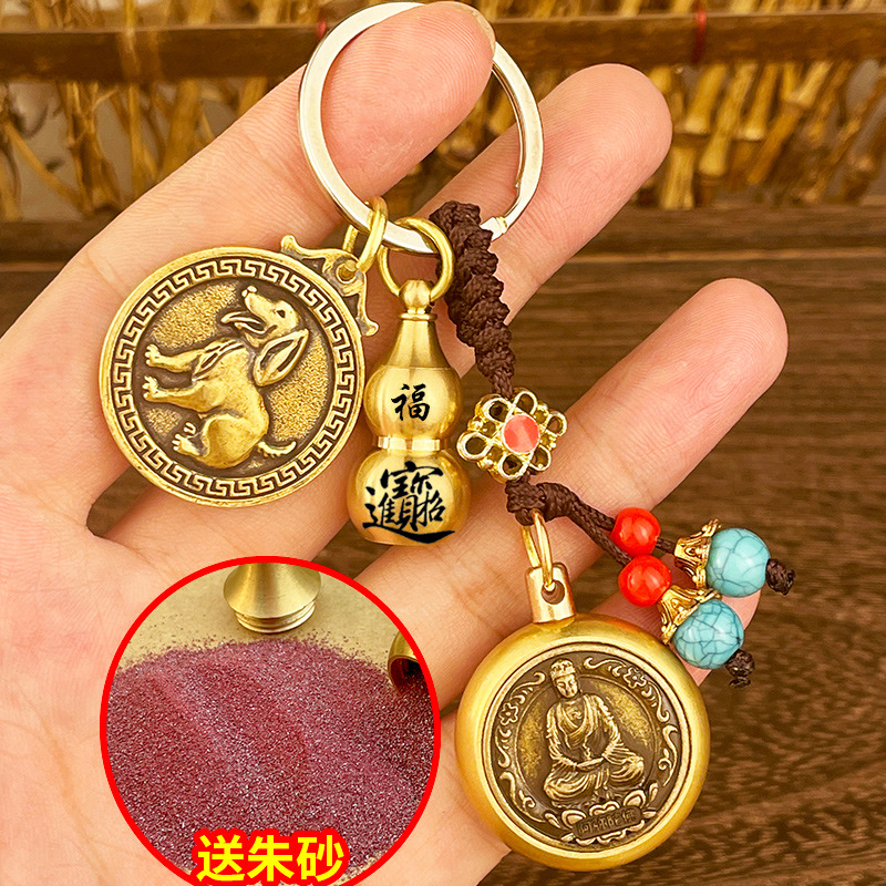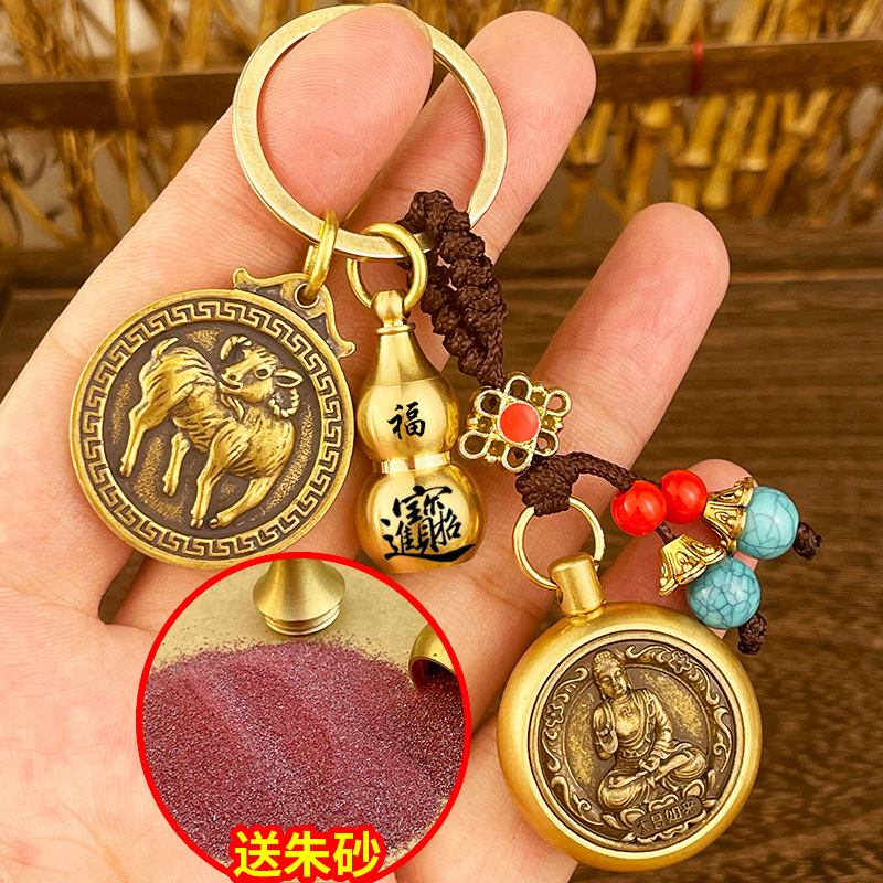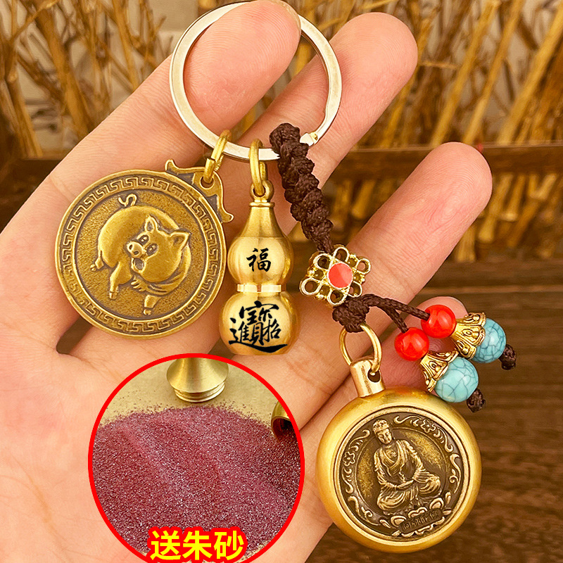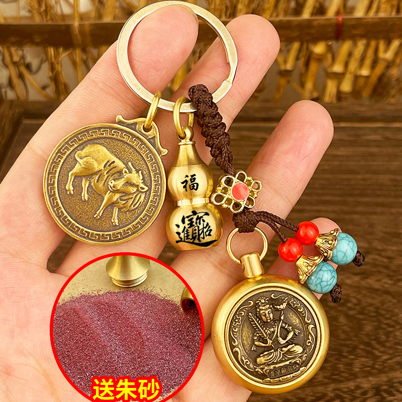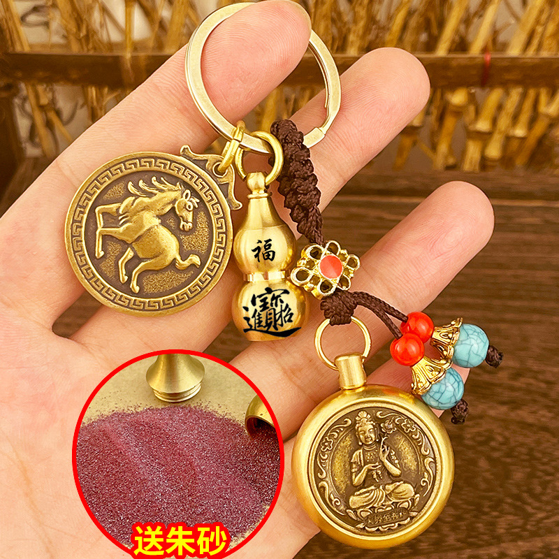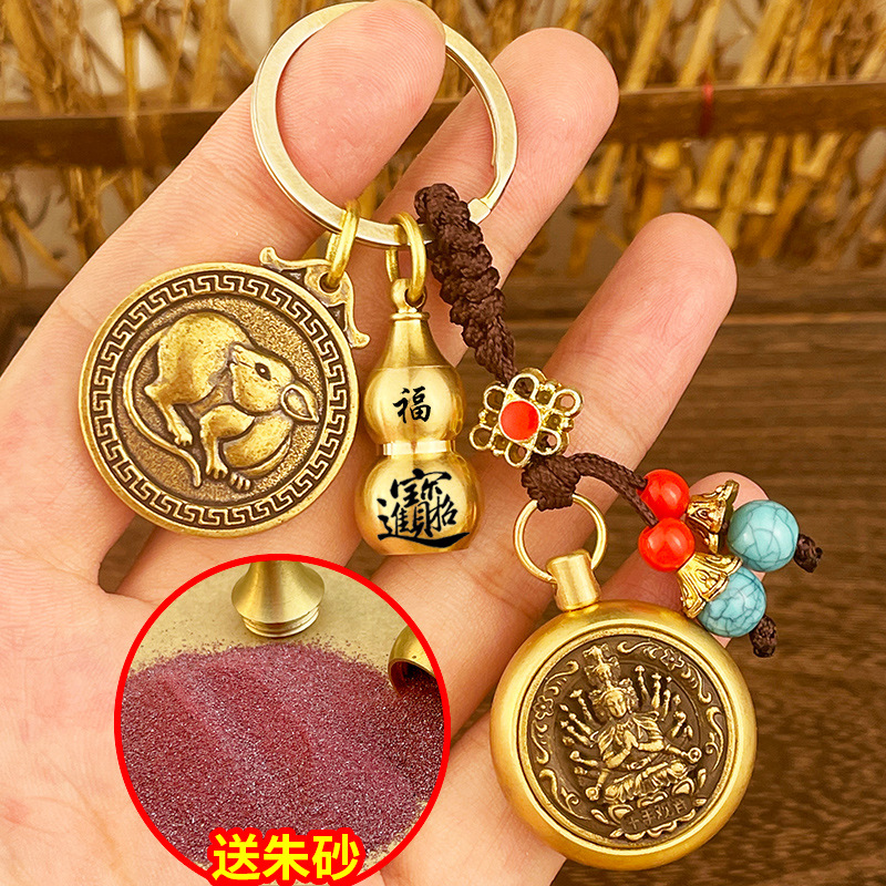 돈 자동차 열쇠 고리 구리 Benningfo 펜던트 창조적 인 복고풍 손 손잡이의 황동 조디악 여덟 수호자스토어 가기