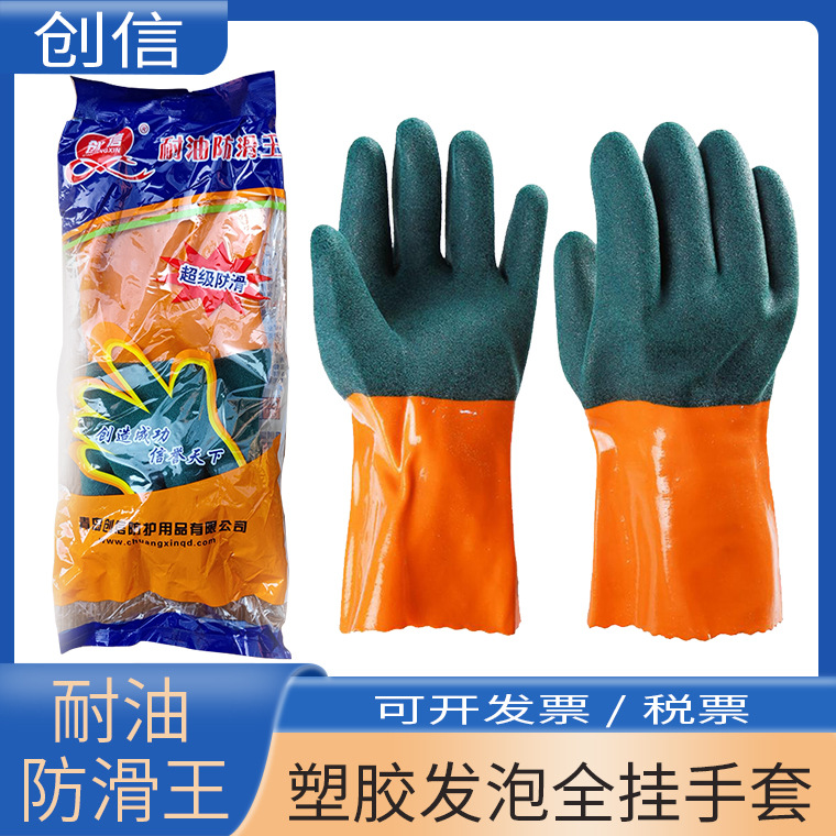 【商品名称】:创信耐油防滑王敞口塑胶发泡全挂手套