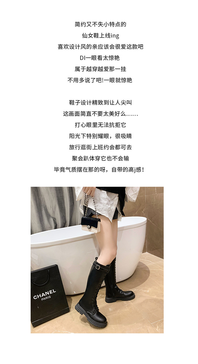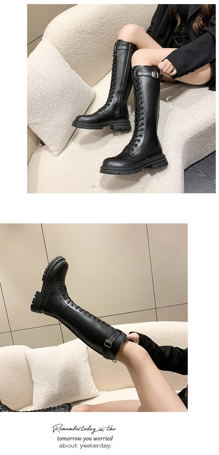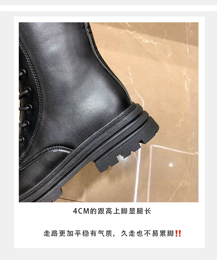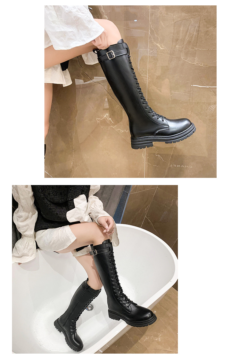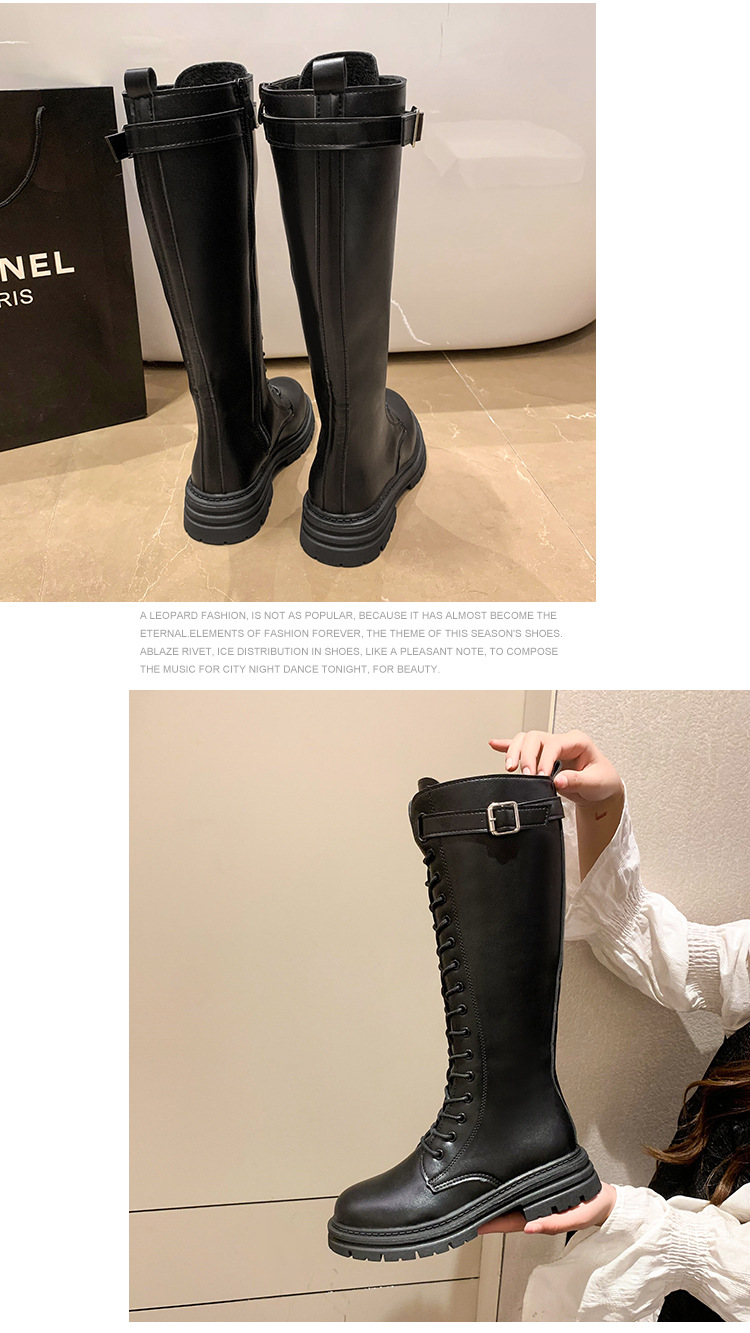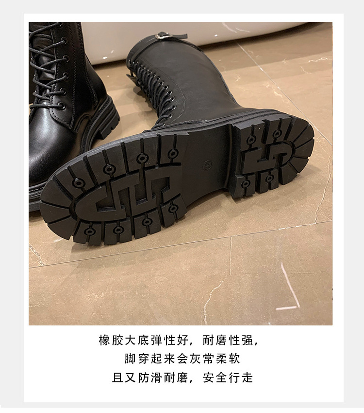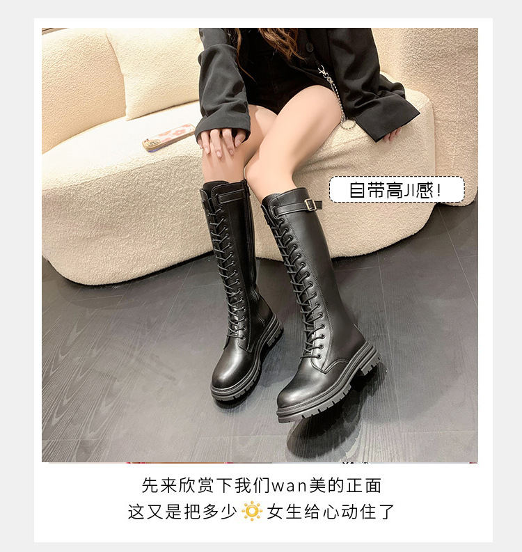 2024 가을, 겨울 여성을위한 새로운 한국 스타일 부츠 영국 스타일 프론트 레이스 업 나이트 부츠 세련된 사이드 지퍼 오토바이 가죽 부츠스토어 가기