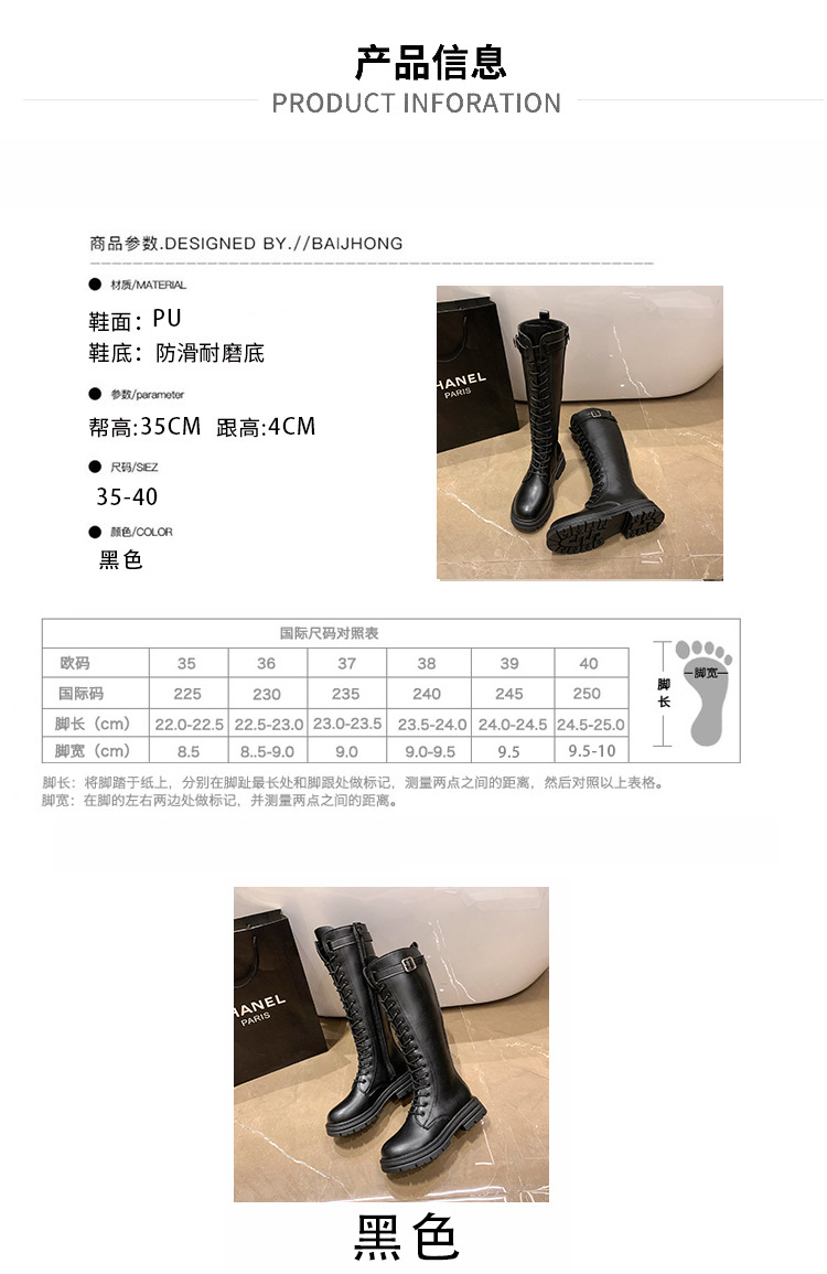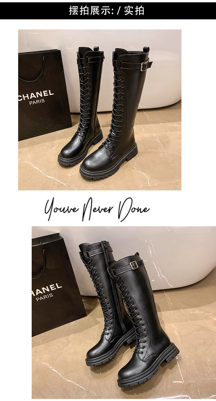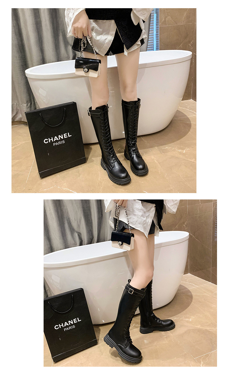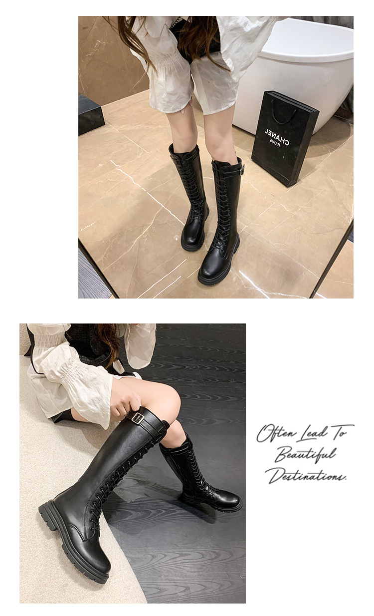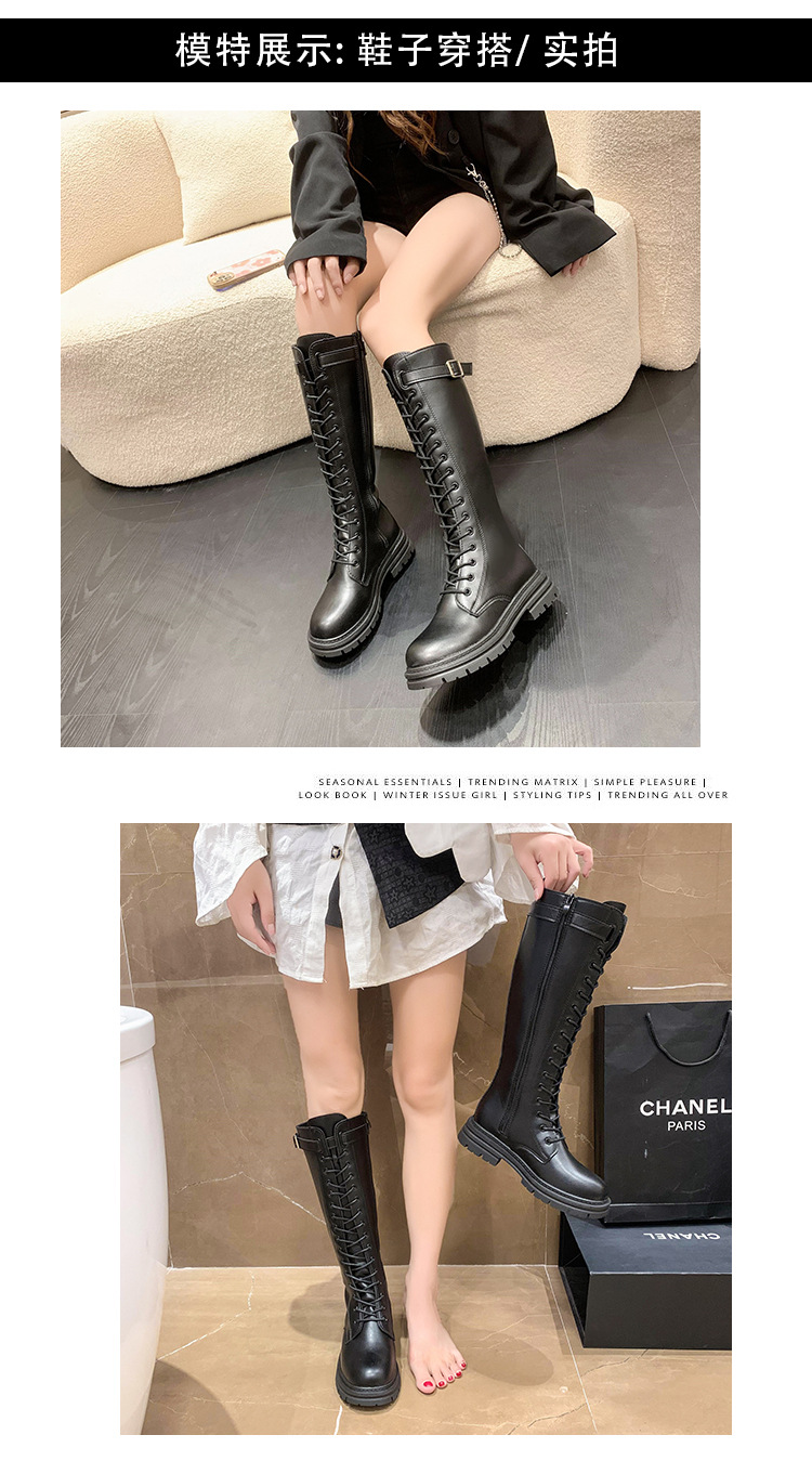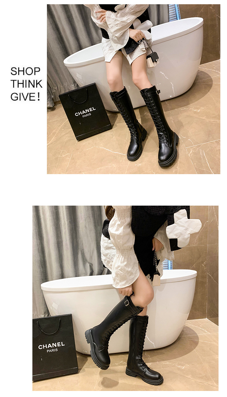 2024 가을, 겨울 여성을위한 새로운 한국 스타일 부츠 영국 스타일 프론트 레이스 업 나이트 부츠 세련된 사이드 지퍼 오토바이 가죽 부츠스토어 가기