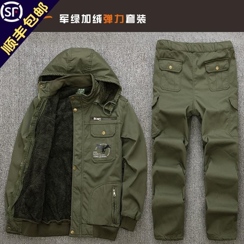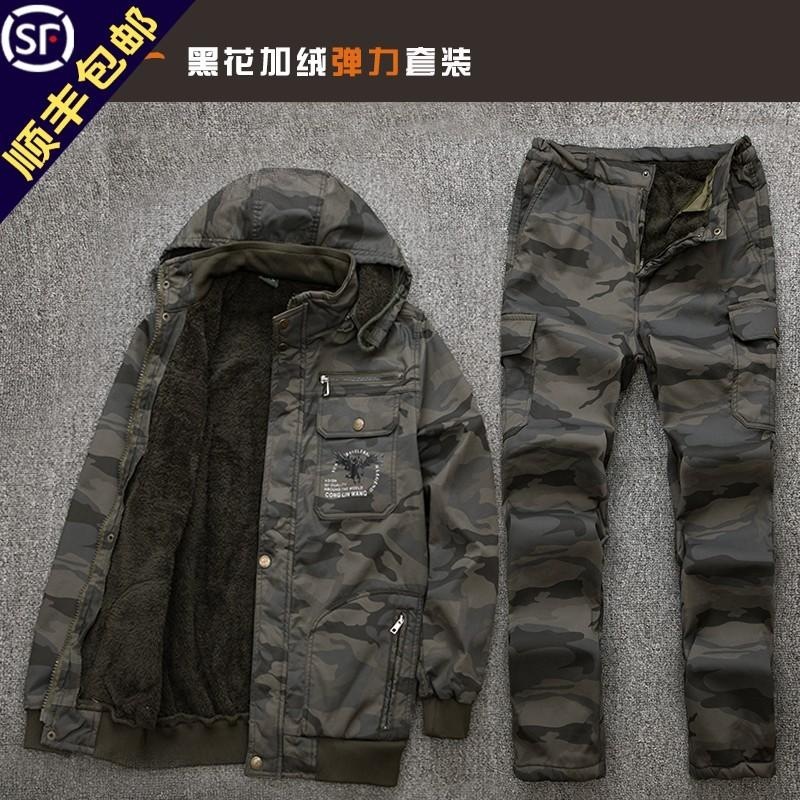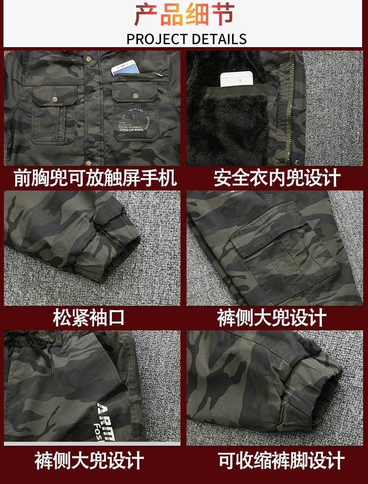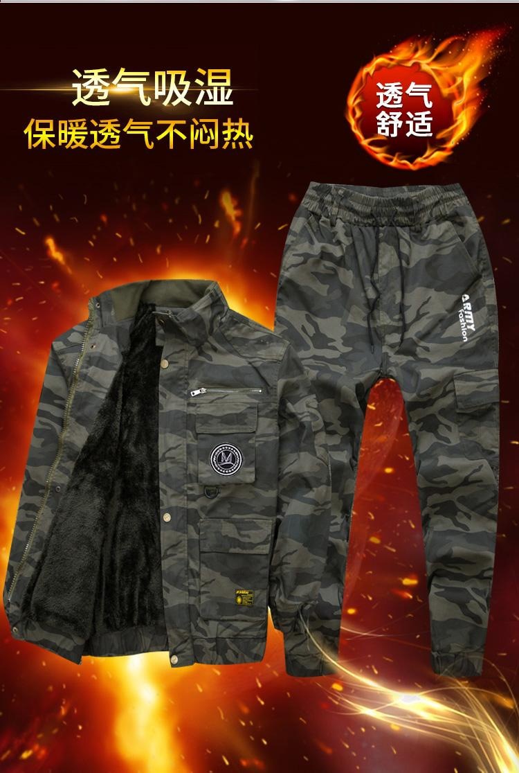 겨울 기모 두꺼운 따뜻한 위장 의류 작업복 세트 남자의 마모 방지 화상 방지 자동 수리 작업 보호 의류 가을과 겨울 도구