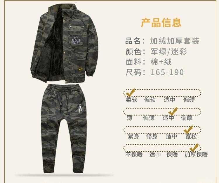 • 619 위장 플러스 벨벳 세트 (후드 재킷 + 바지)