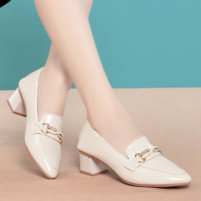 특허 가죽 싱글 레이어 신발 여성 뾰족한 발가락 깊은 입 부드러운 가죽 부드러운 바닥 가죽 신발 어머니 신발 가을 새로운 청키 발 뒤꿈치 여성 신발 슬립 온스토어 가기