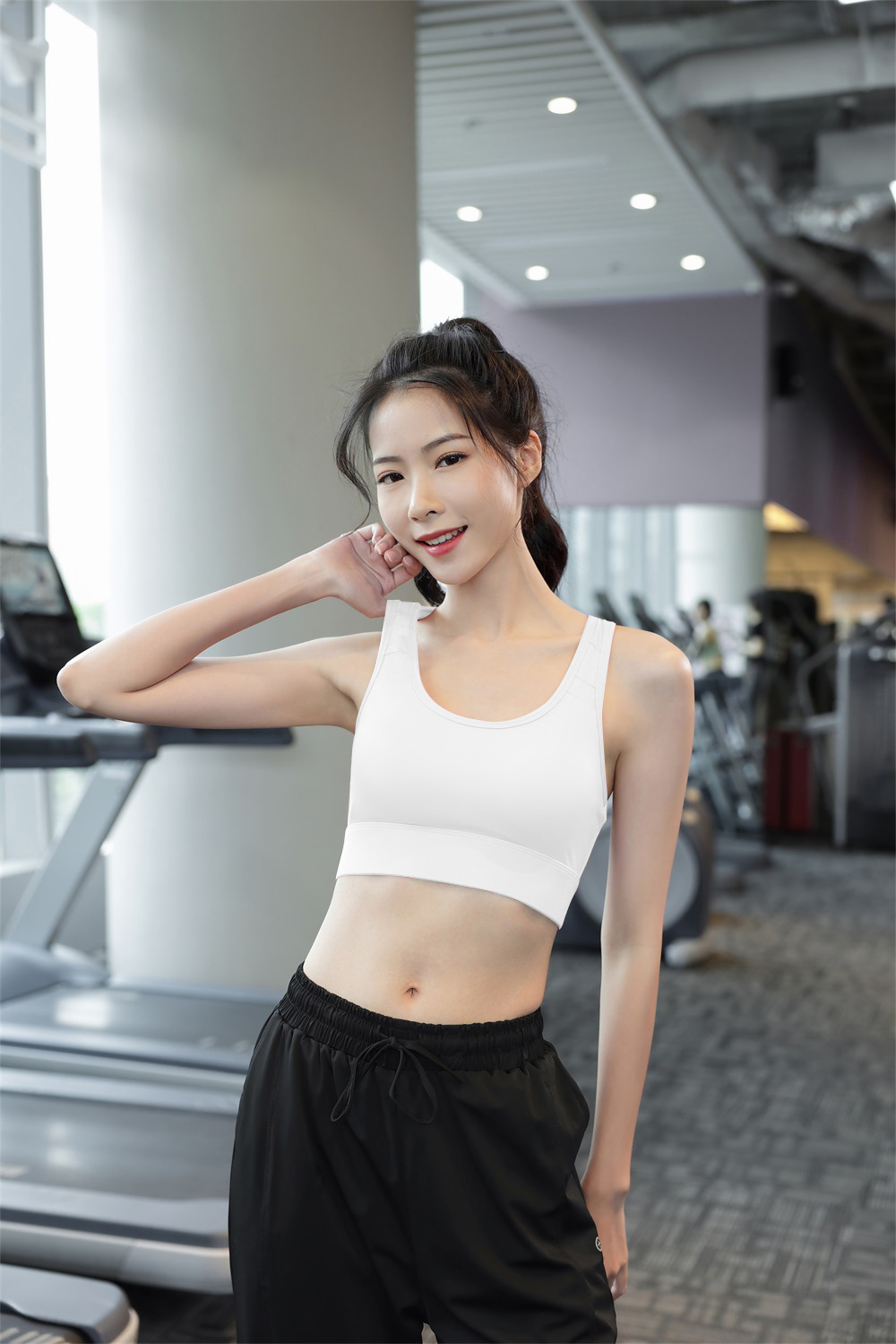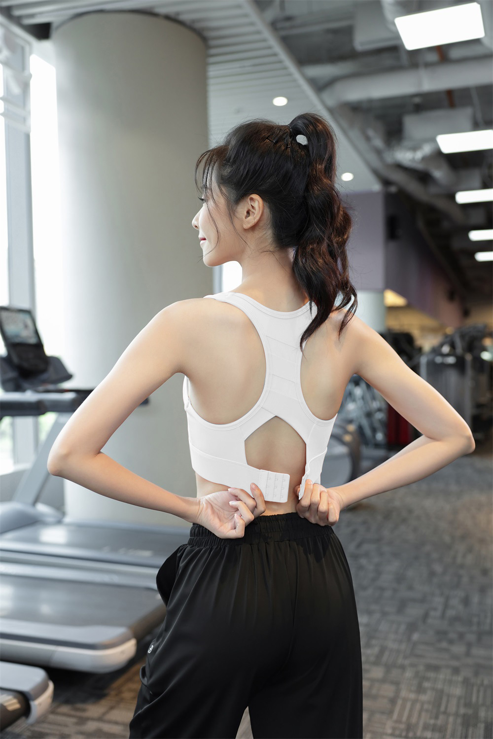 【特色】本款运动内衣采用固定式一体杯,稳固有形随心洗不跑杯,后背网纱拼接工字背设计修饰性感蝴蝶骨,美背舒适,三排扣可调节方便穿脱提升防震效果,U型领口聚拢无勒感,精选速干排汗透气的高弹锦纶运动面料,宽边下摆更好提升弹力性能。