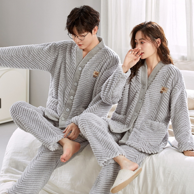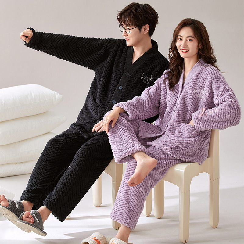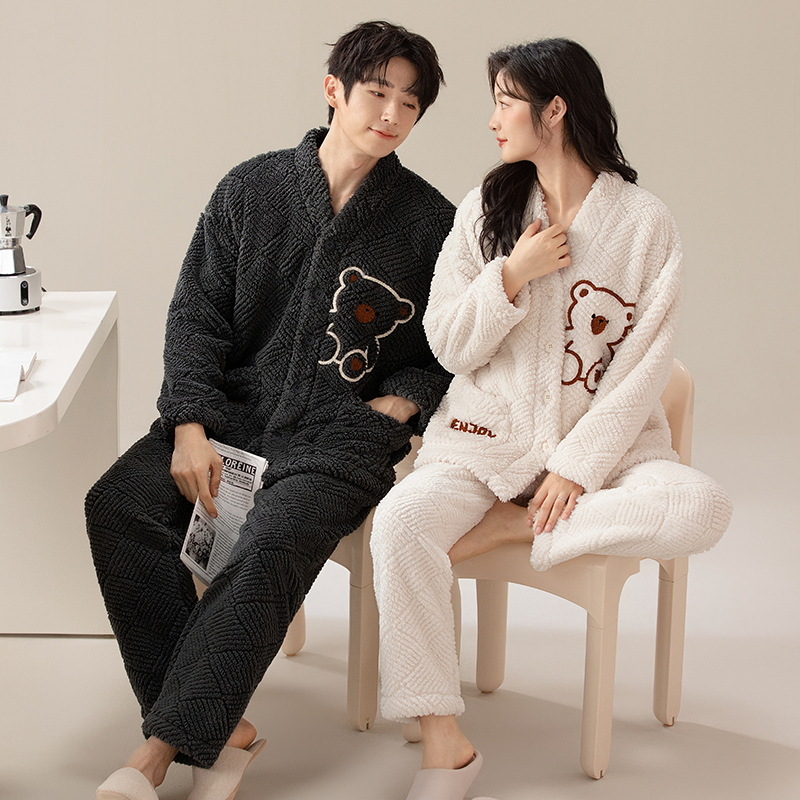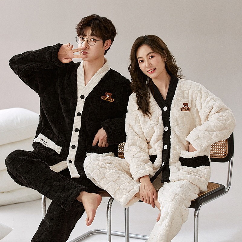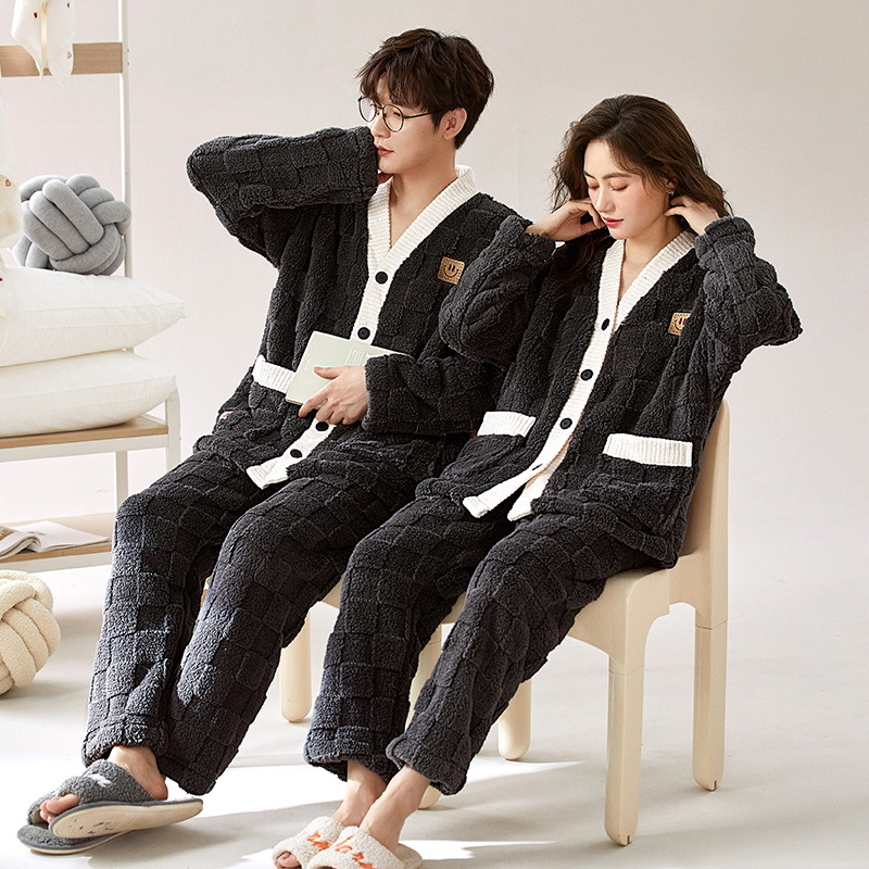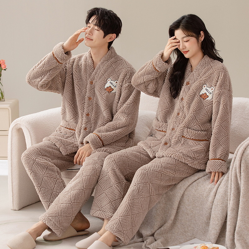 플란넬 커플 잠옷 여성의 겨울 긴 소매 세트 달콤한 귀여운 느슨한 남성 플러스 사이즈 산호 양털 홈 옷스토어 가기