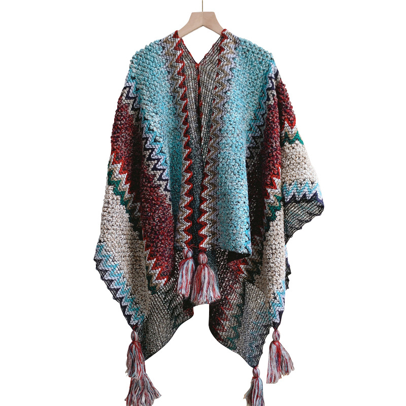 가을과 겨울 빈티지 에스닉 스타일 숄 모조 캐시미어 자카드 술 케이프 여성용 두꺼운 모헤어 여행 사진 스카프스토어 가기