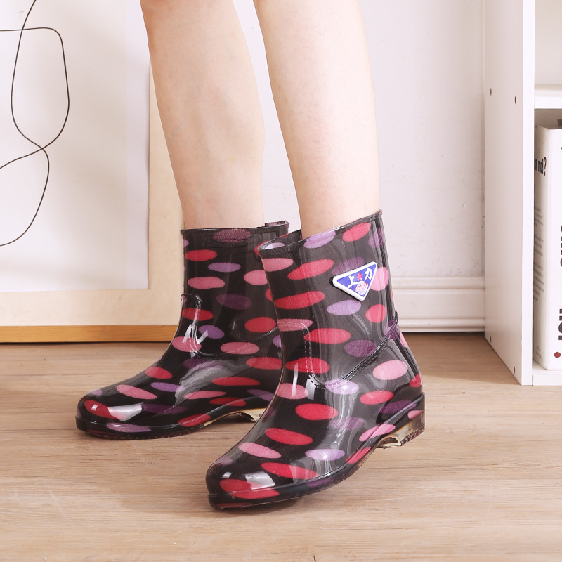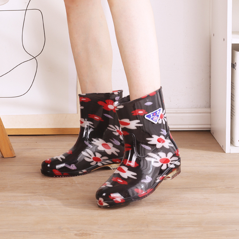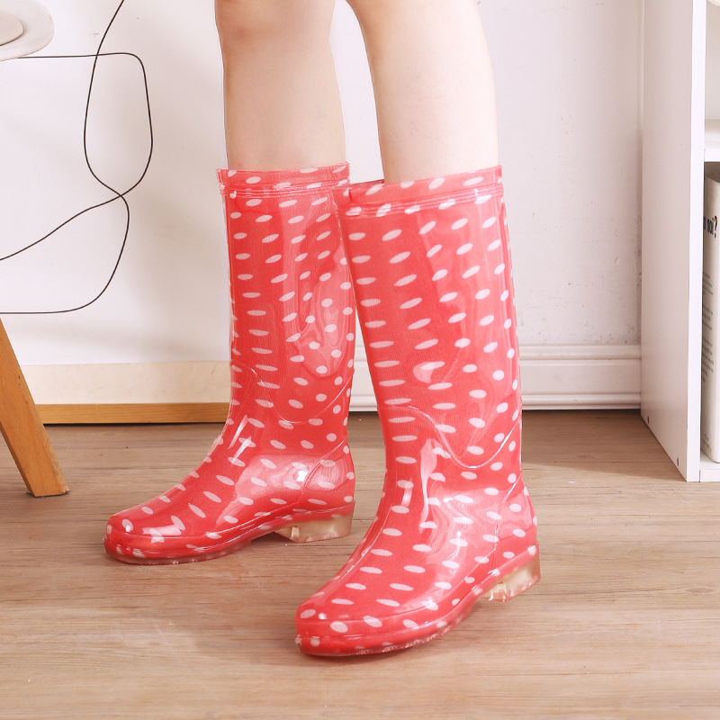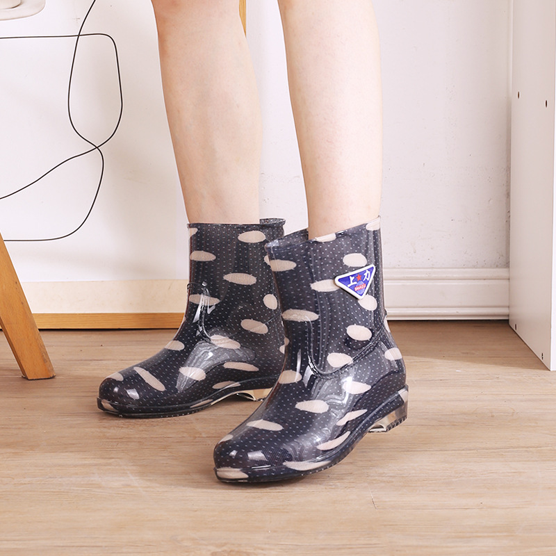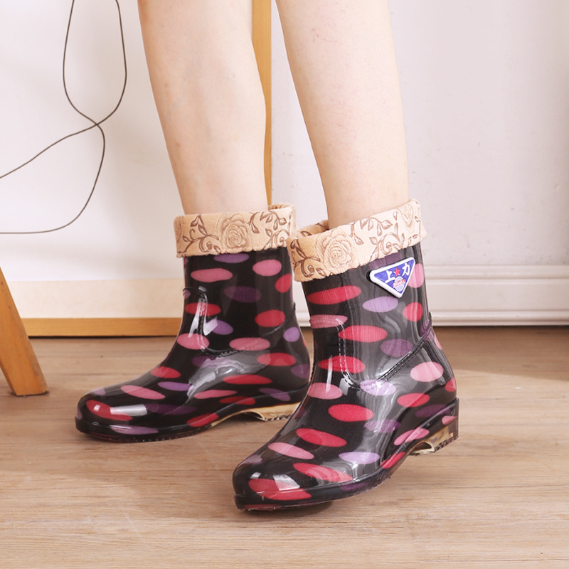 세련된 하이 탑 레인 부츠 여성용 중간 송아지 워터 부츠 기모 긴 장화 주방 미끄럼 방지 노동 보호 고무 신발 방수 신발 여름스토어 가기