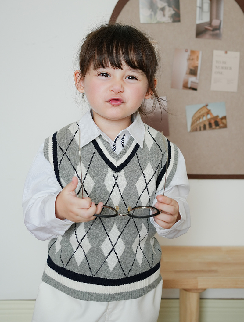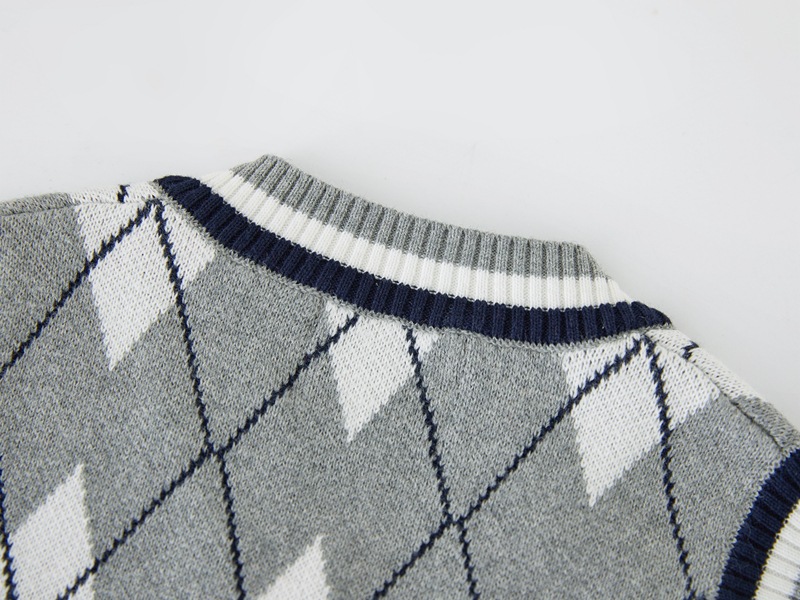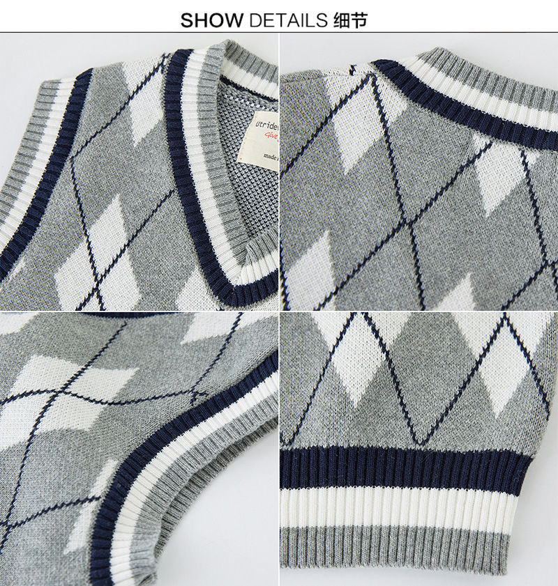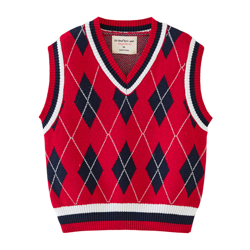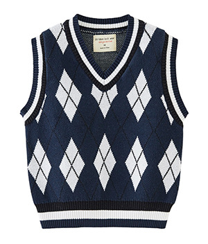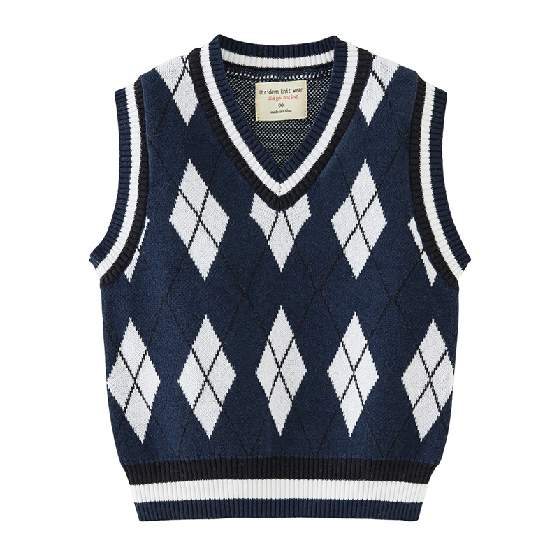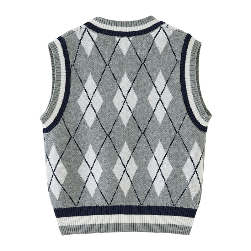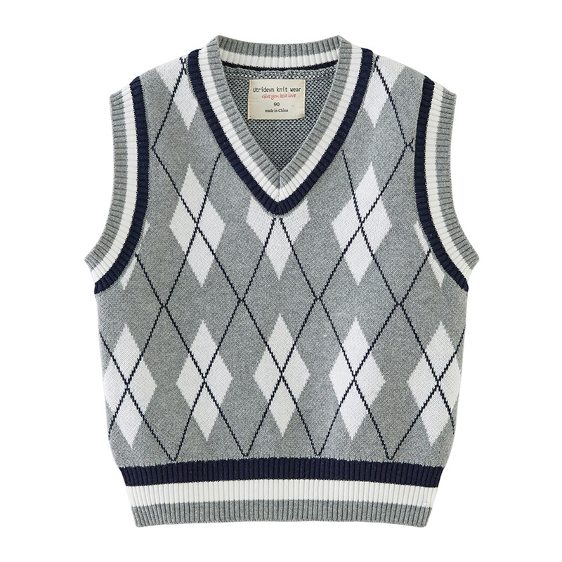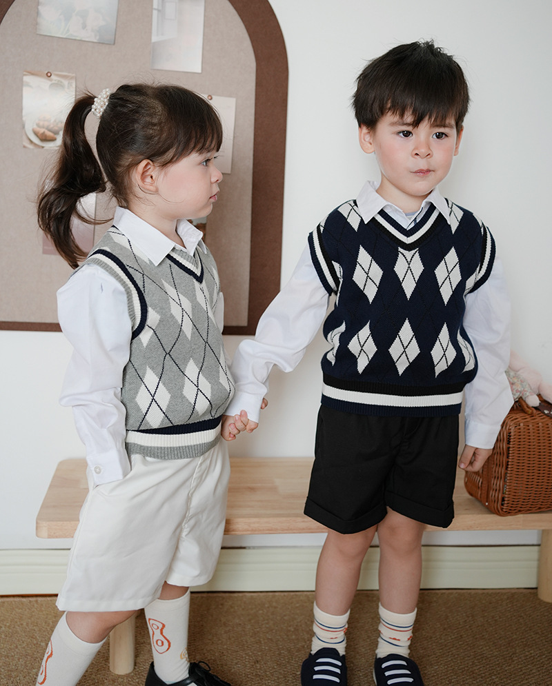 V-넥 다이아몬드 자카드 남아 양복 조끼 스웨터 중소 여자 니트 조끼 초등학교 교복 공장 도매스토어 가기