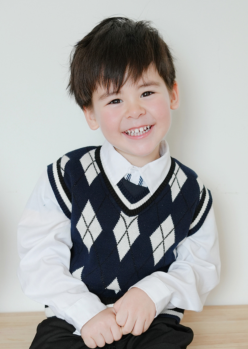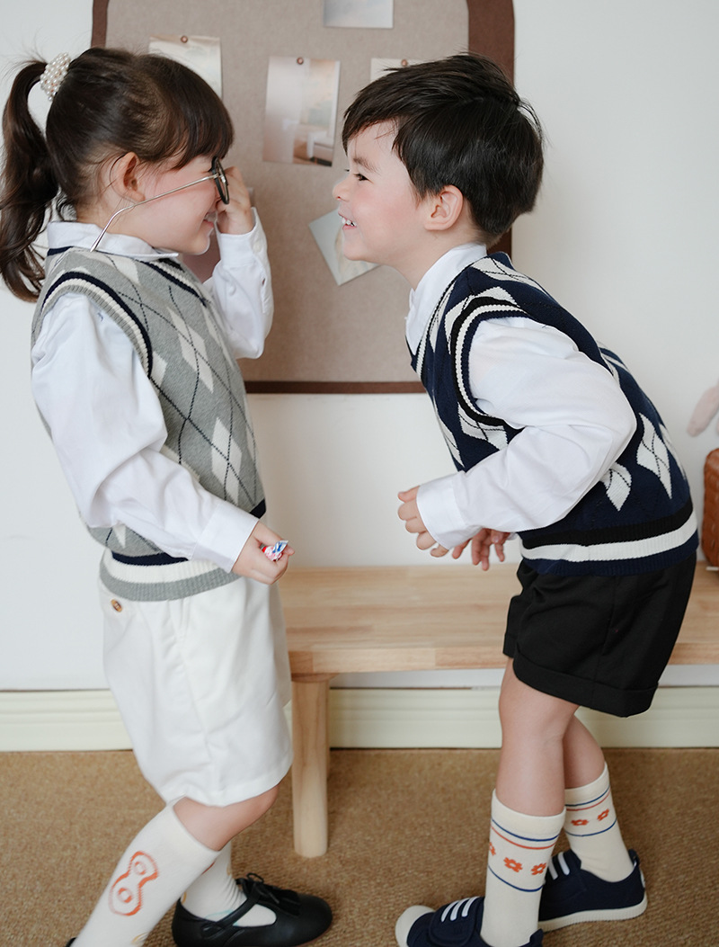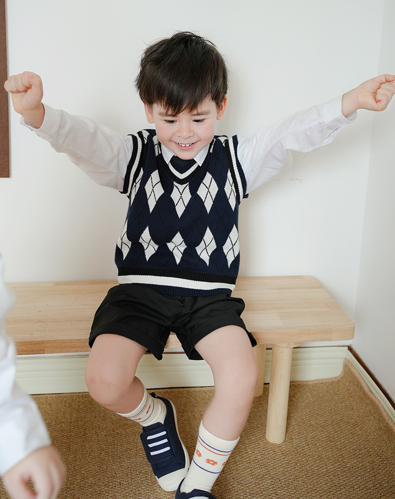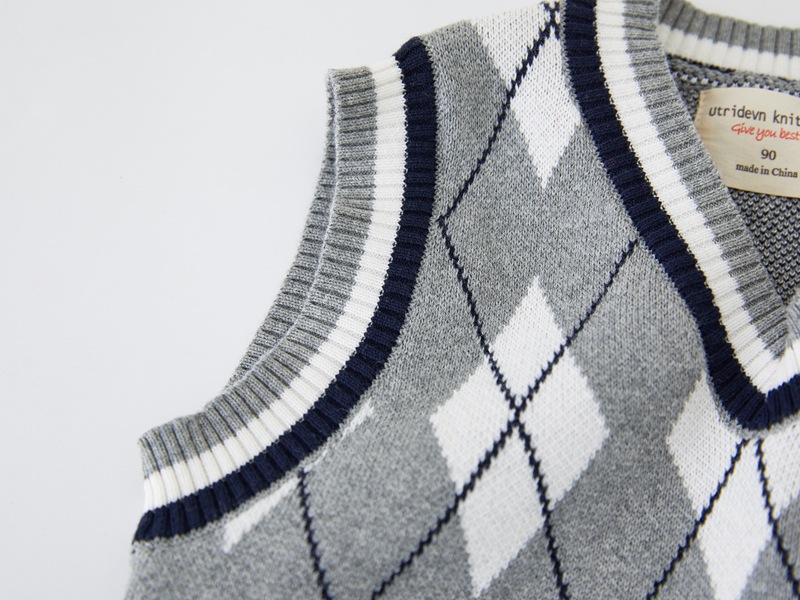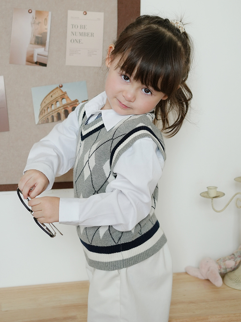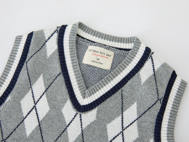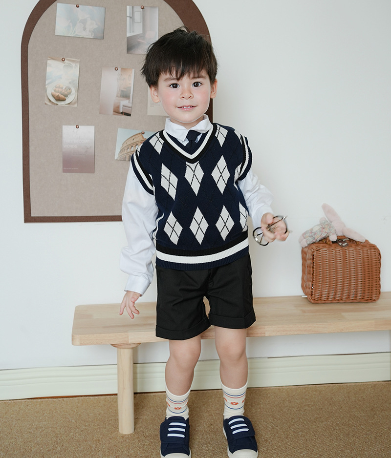 V-넥 다이아몬드 자카드 남아 양복 조끼 스웨터 중소 여자 니트 조끼 초등학교 교복 공장 도매스토어 가기