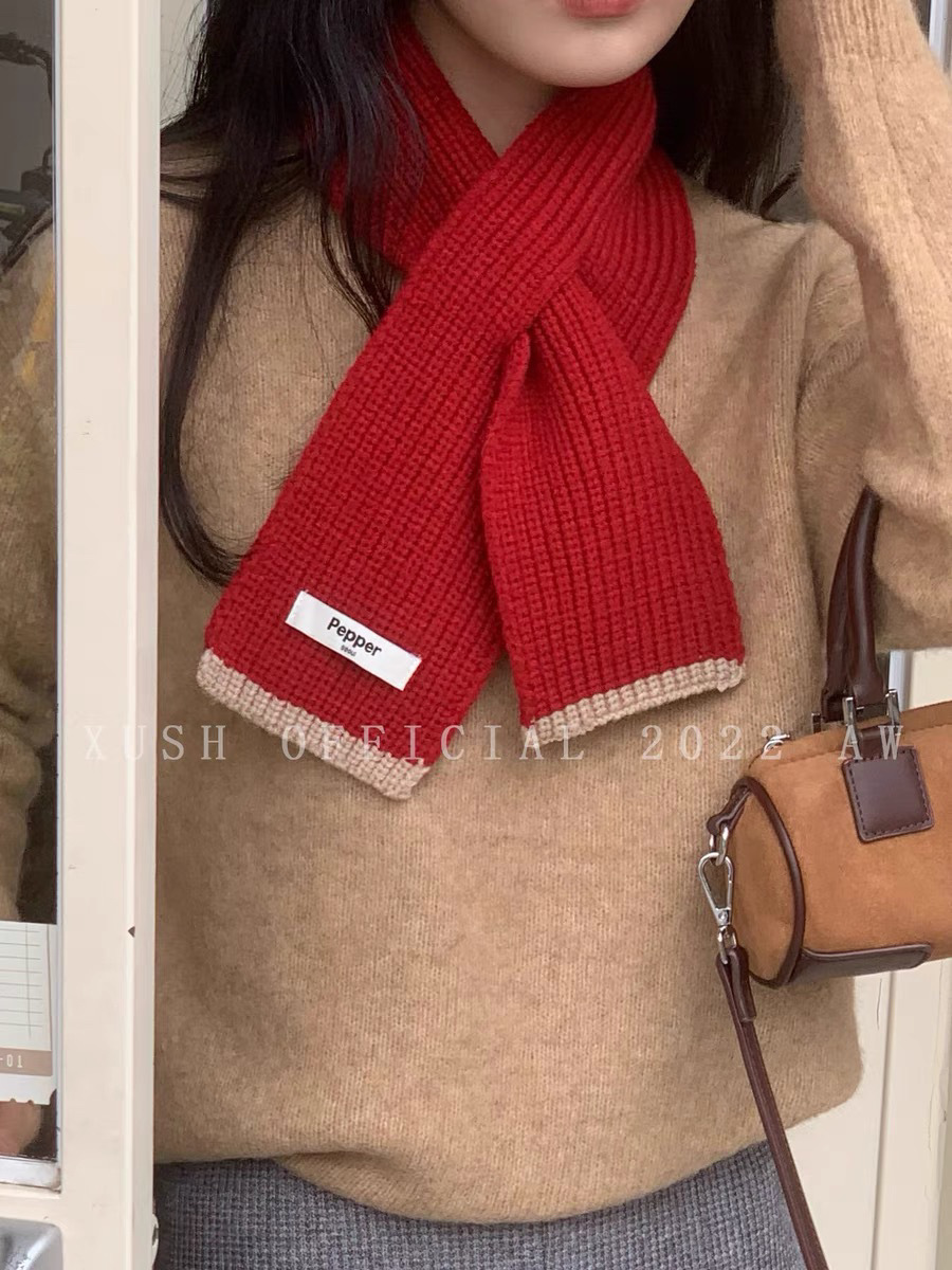 YOONY 한국 동대문 구매 짧은 귀여운 작은 스카프 여자의 가을과 겨울 대비 색상 한 Feng 인 스카프스토어 가기