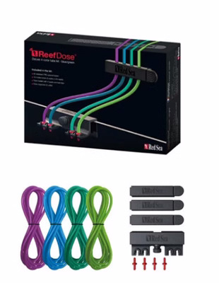 •  ReefDose2双头滴定泵 ReefDose4四头滴定泵 4色管件套装 蓝绿配色 4色管件套装 黄红配色 泵为单泵 需搭配管件使用 可自行挑选颜色