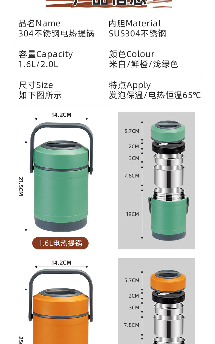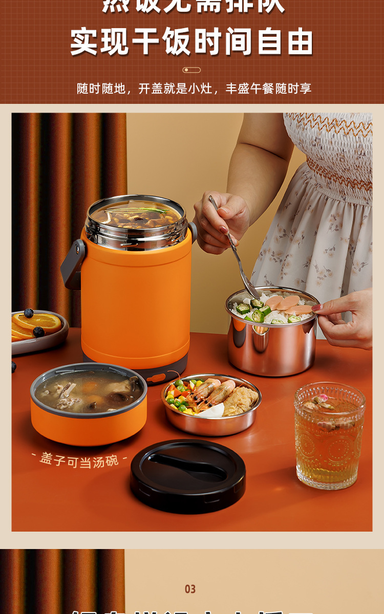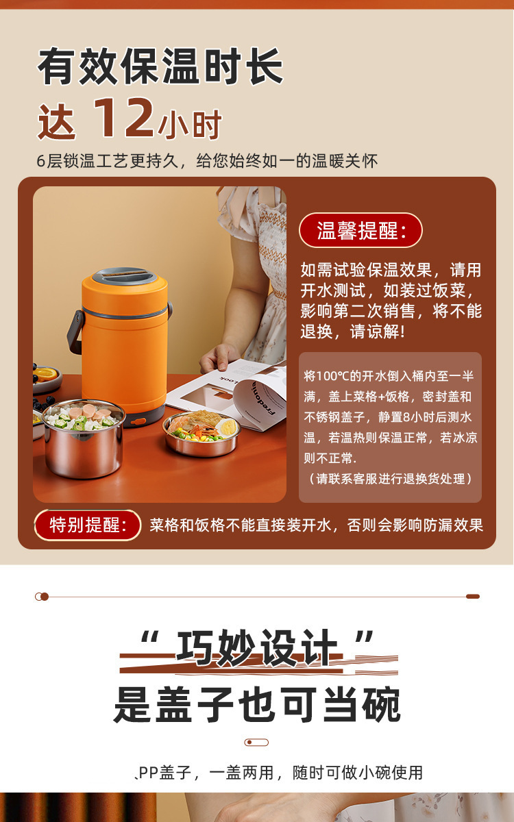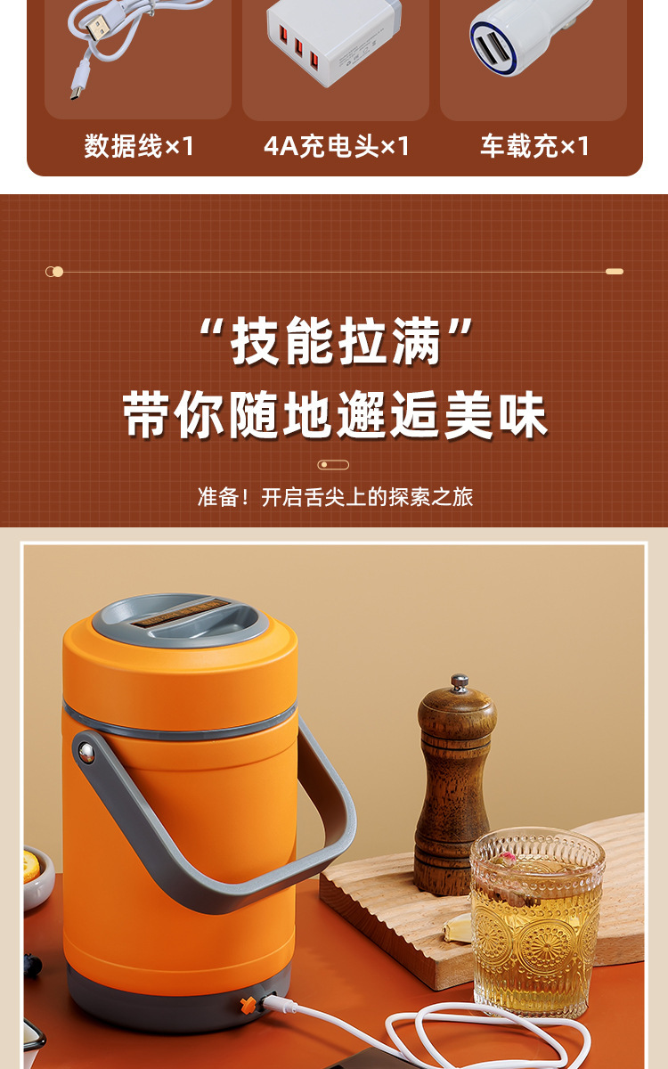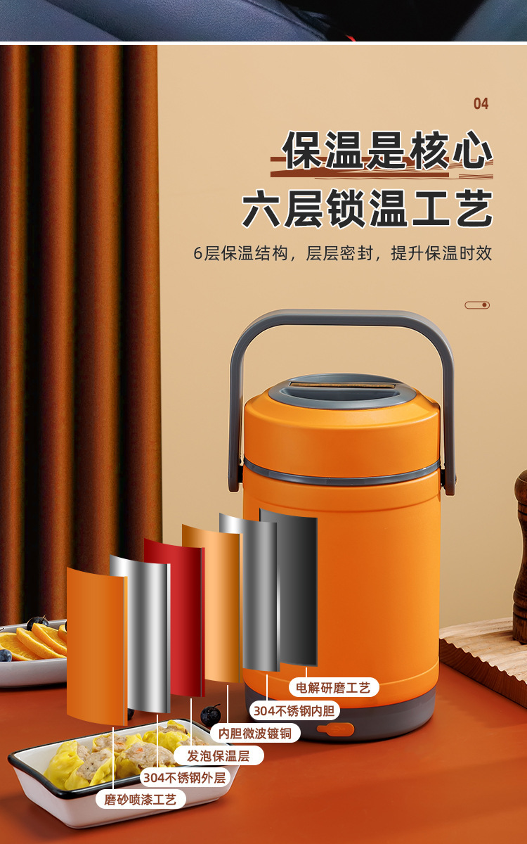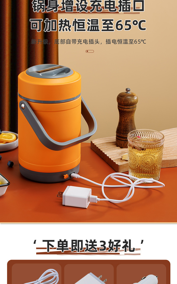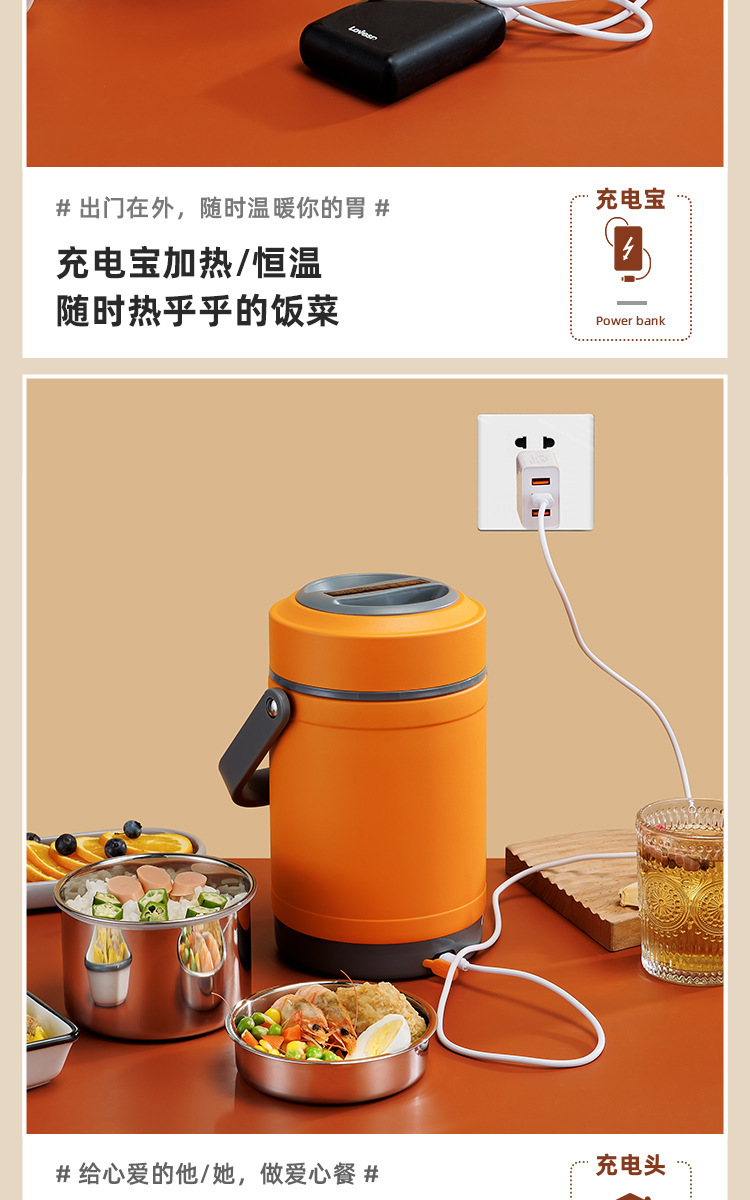 자동차 플러그인 전기 난방 USB 단열 회사원 학생 다층 휴대용 스테인레스 도시락 냄비