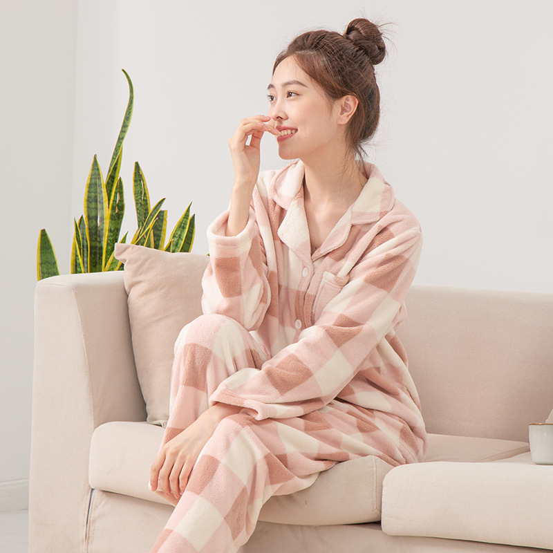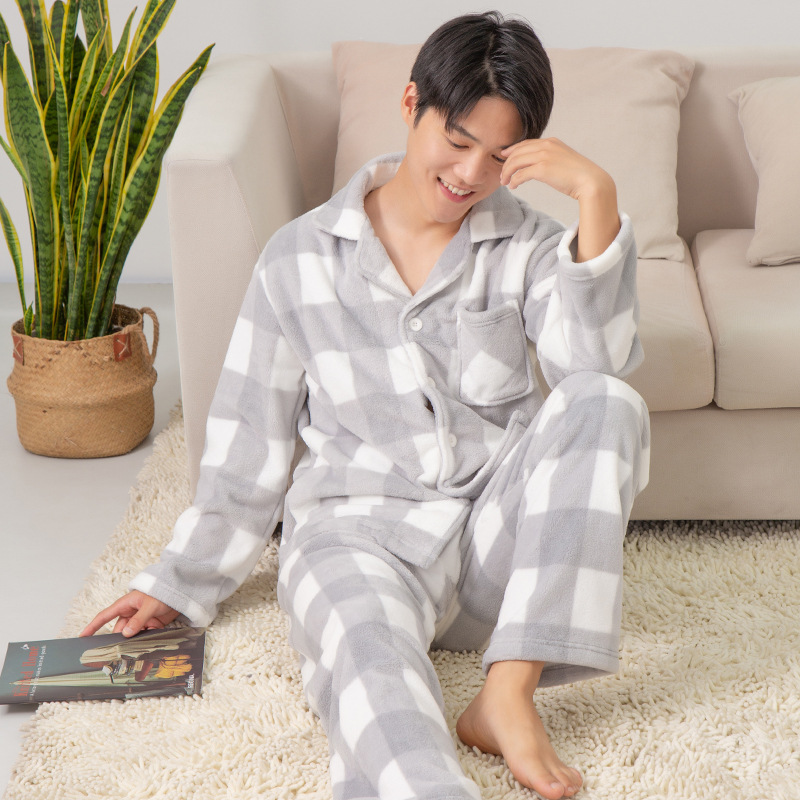 산호 양털 잠옷 여자의 인쇄되지 않은 가을 남자의 두꺼운 가정 옷 세트 잠옷 남자의 잠옷 겨울 산호 양털 커플스토어 가기