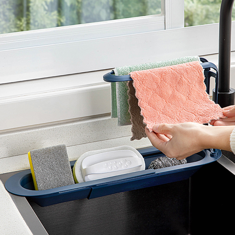 싱크 선반 텔레스코픽 배수 랙 필터 풀 야채 배수 바구니 식기 세척 걸레 보관 랙 주방 배수 랙