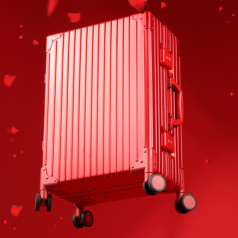웨딩 메탈 박스 22 인치 올 알루미늄 에스코트 트롤리 케이스 신부 지참금 가방 여성 가방 큰 빨간 가방