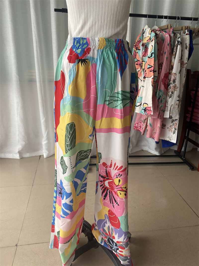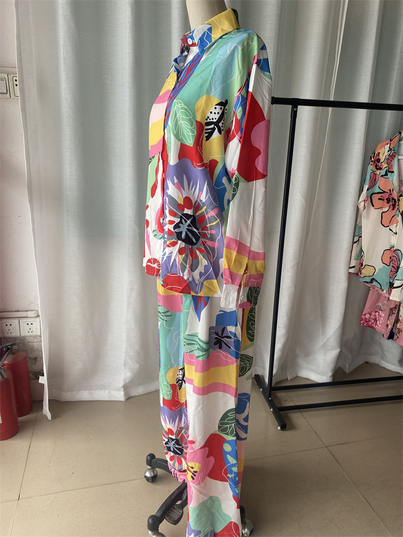 스팟 유럽과 미국의 새로운 국경 2024 기질 통근 긴팔 셔츠 높은 허리 넓은 다리 바지 여성용 세트
