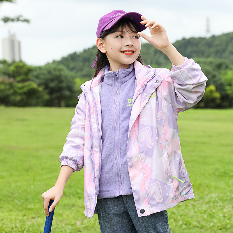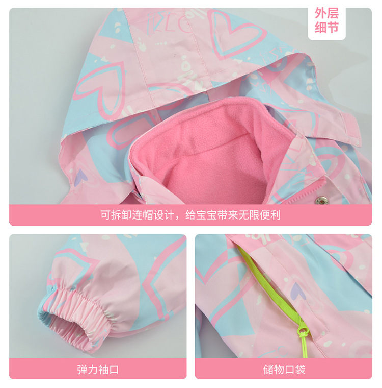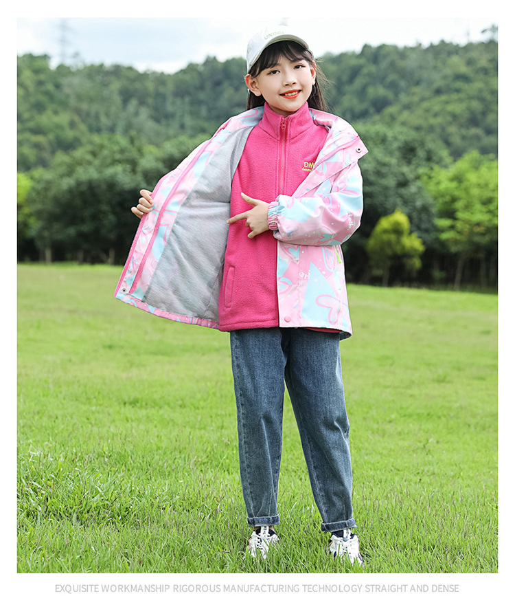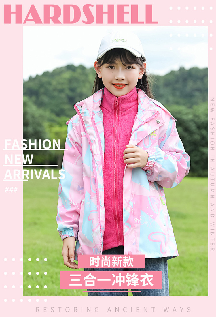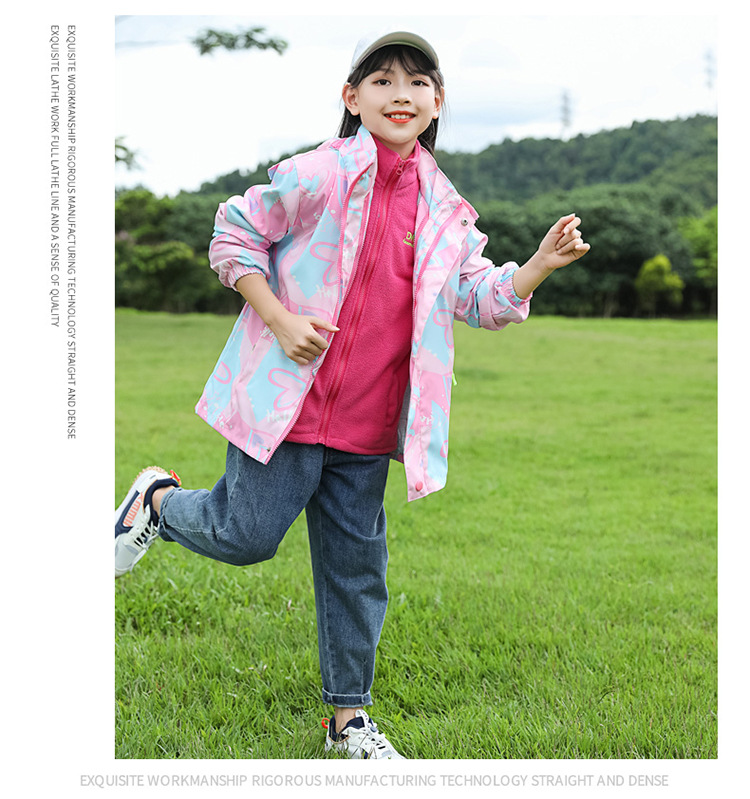 어린이 의류 소녀 봄과 가을 코트 2024 새로운 어린이 야외 러시 옷 겨울 두껍게 기모 분리 가능한 3 대 1스토어 가기