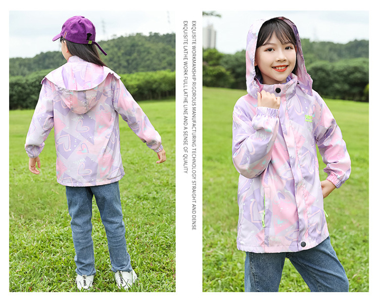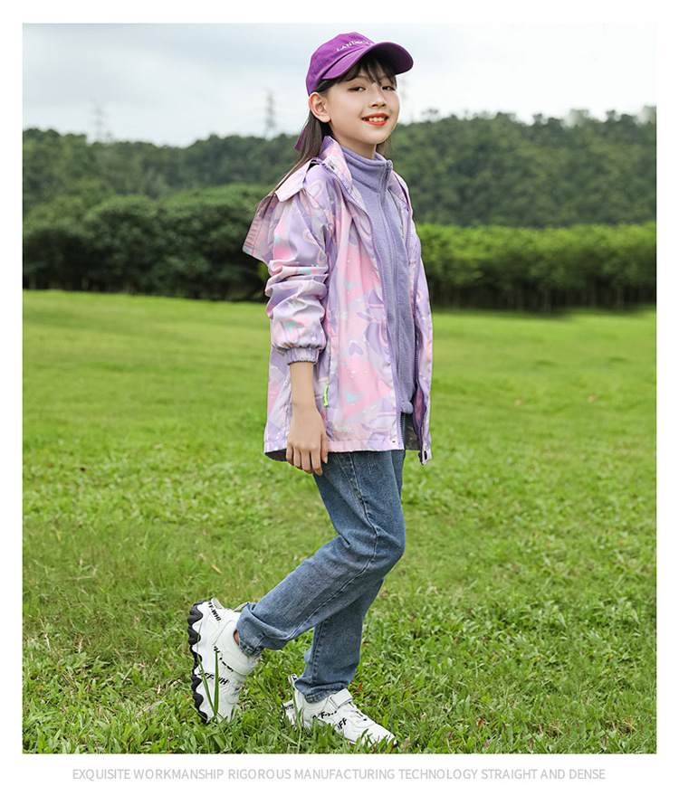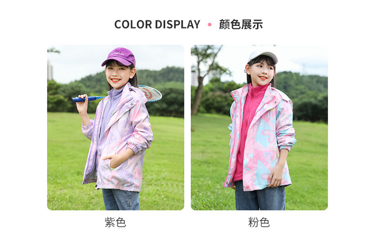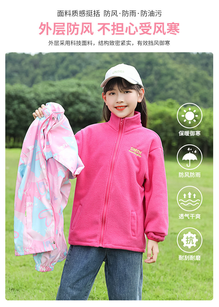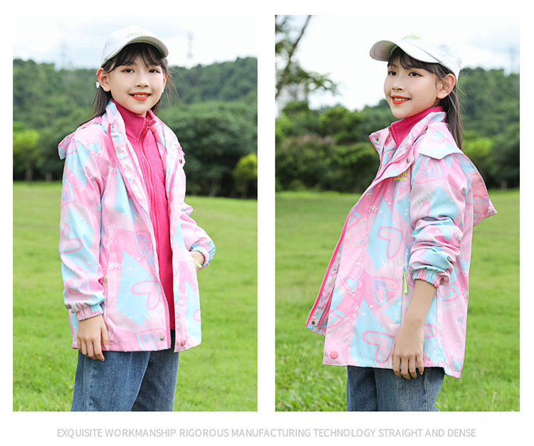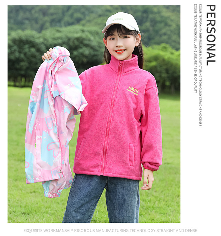 어린이 의류 소녀 봄과 가을 코트 2024 새로운 어린이 야외 러시 옷 겨울 두껍게 기모 분리 가능한 3 대 1스토어 가기