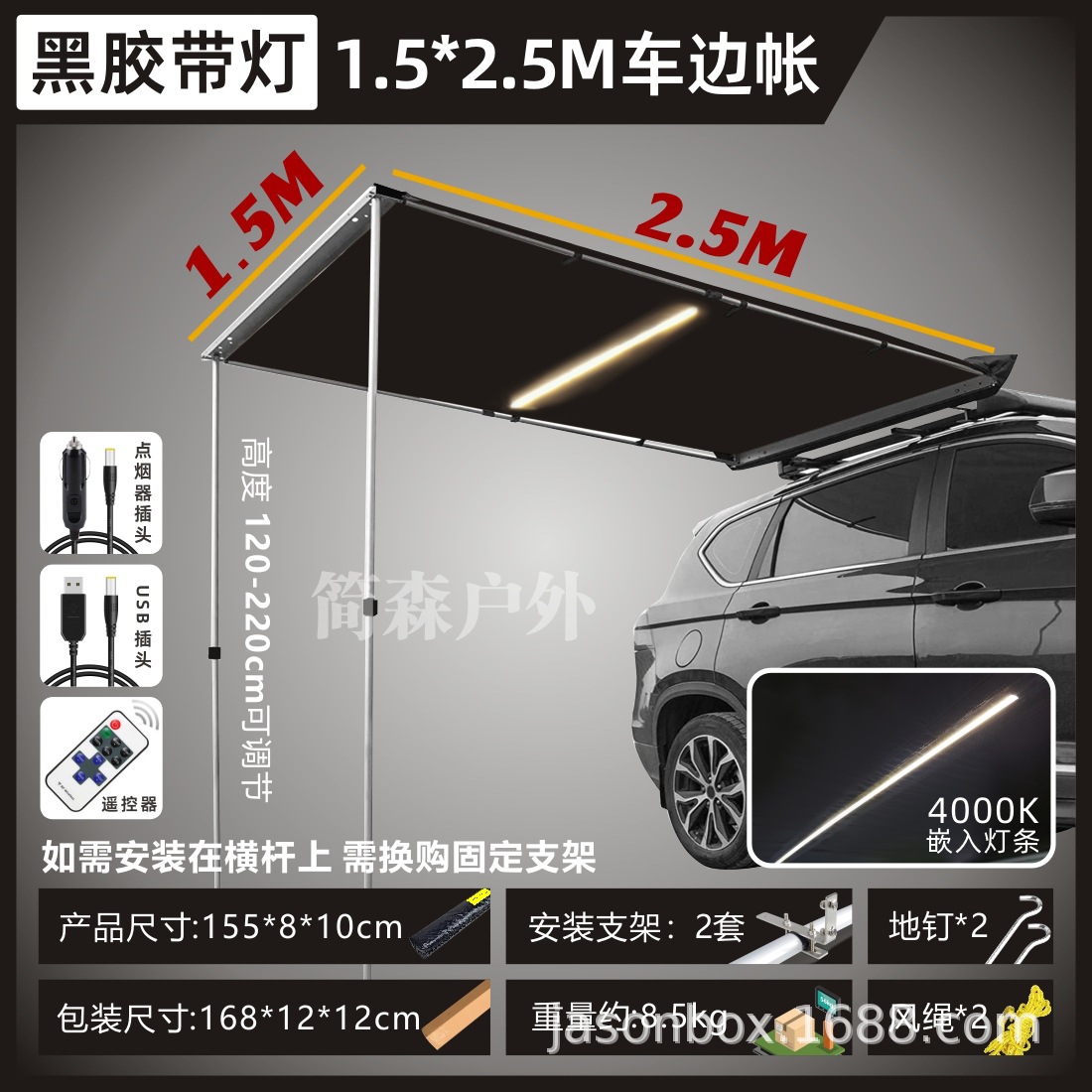 • [블랙 테이프 라이트 천 쉘] 1.5*2.5 자동차 사이드 텐트