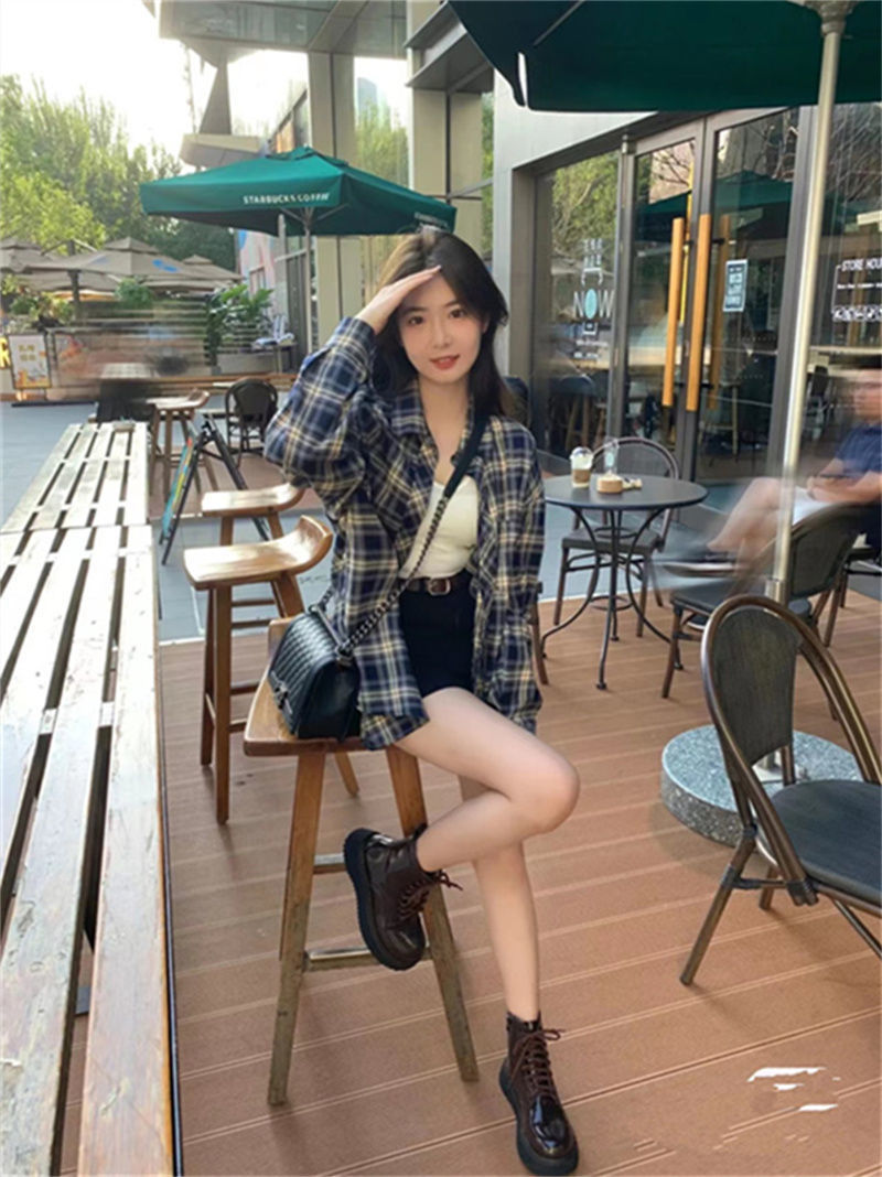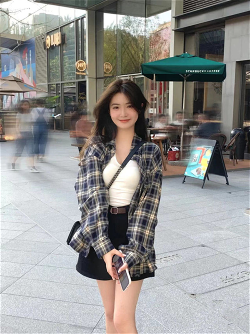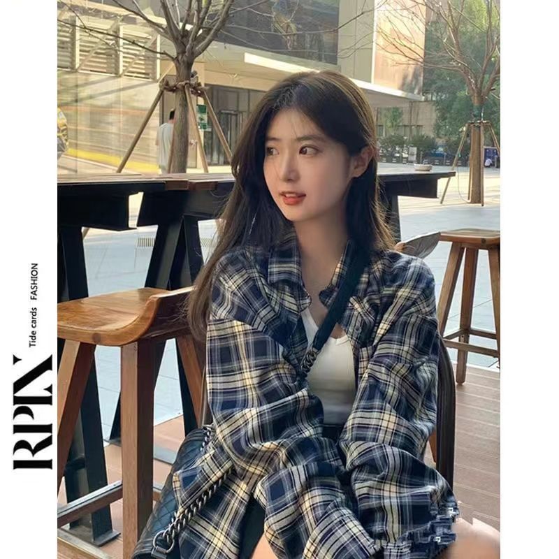 긴팔 셔츠 여성의 봄 초가을 미국 스타일 트렌디 브랜드 격자 무늬 탑 인터넷 연예인 느슨한 디자인 틈새 중간 길이 셔츠스토어 가기