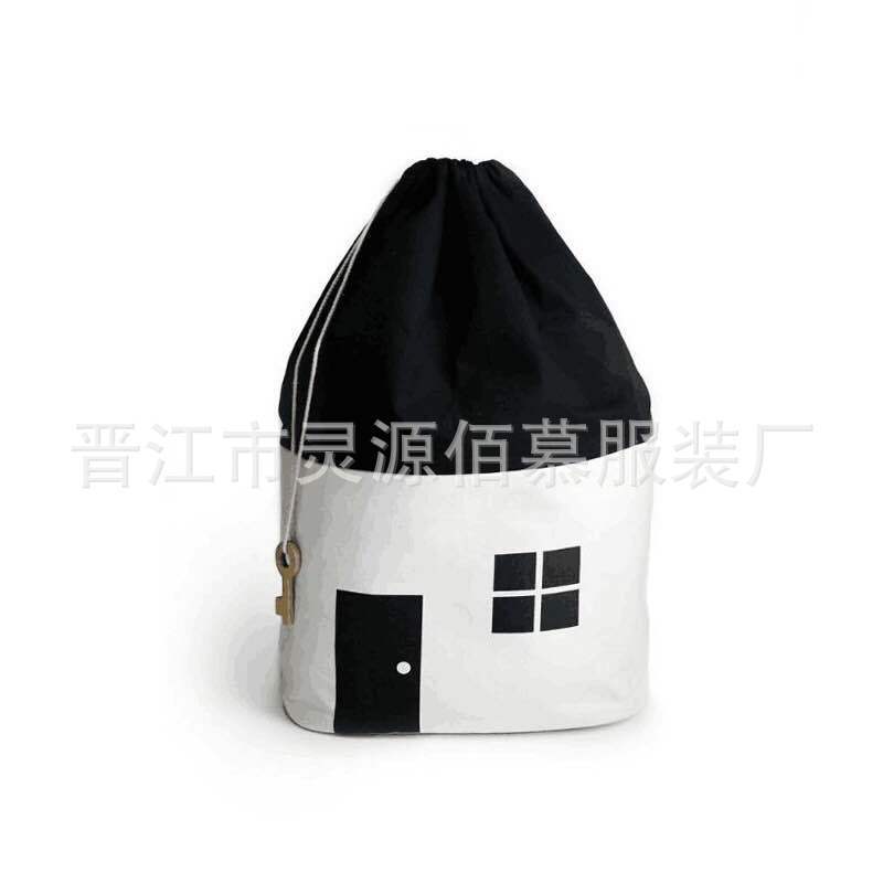 国外3个月前这款房子收纳袋一出来,我们已经惊喜不已,但是由于年底订单忙,年初终于打样好,,ins新款小房子纯棉可束口收纳袋黑白款2款,尺寸65*36*20CM,净重0.22KG。