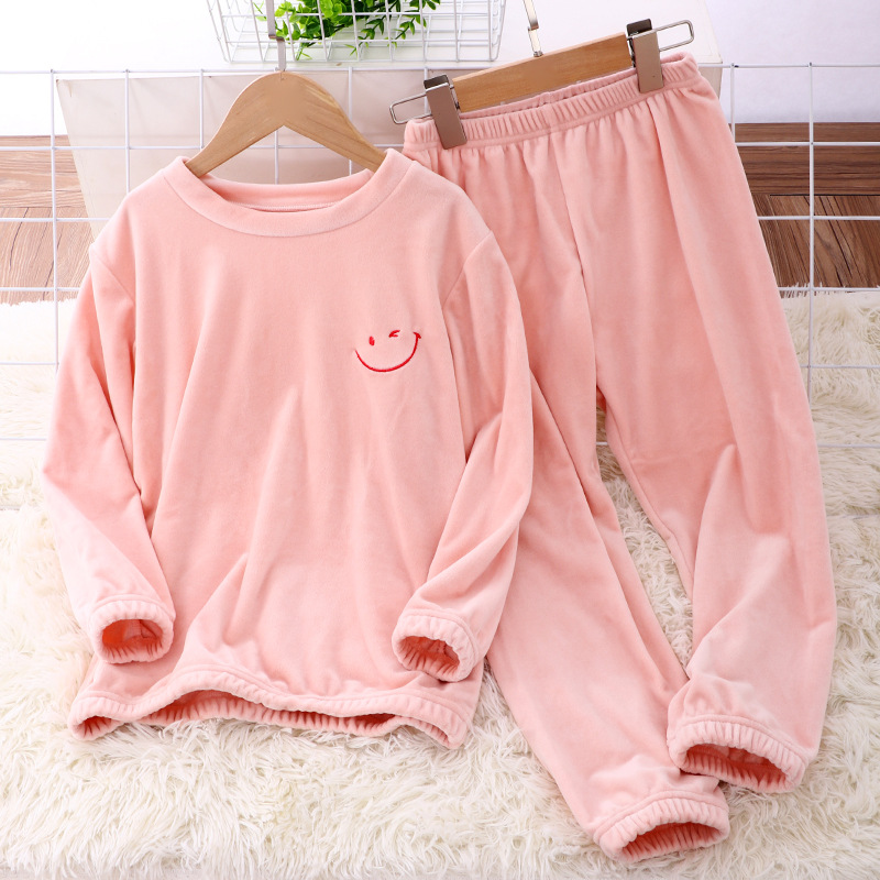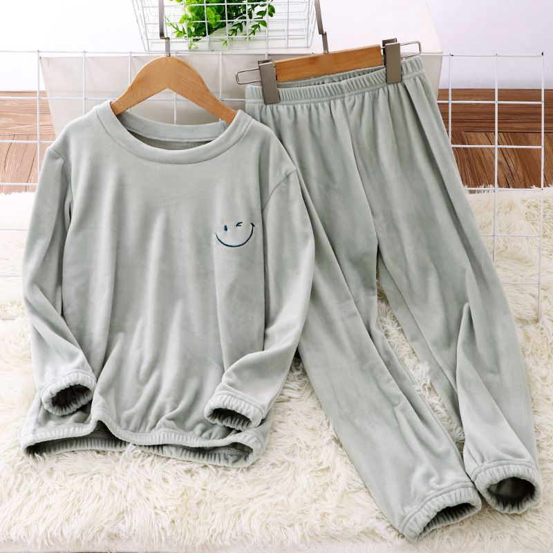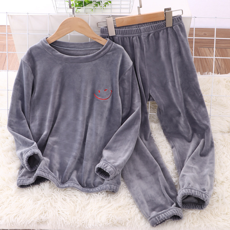 아이들의 플란넬 잠옷 세트 기모 두꺼운 소년 소녀 크리스탈 벨벳 부모-자식 가정 옷 세트