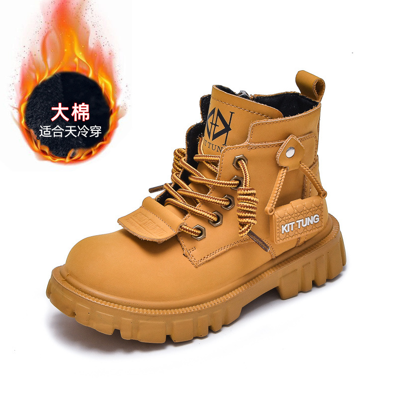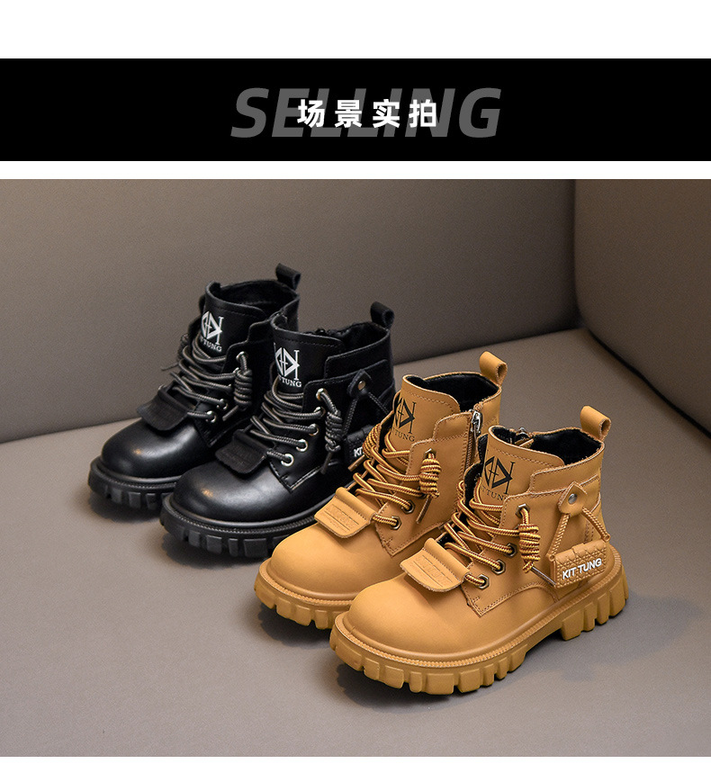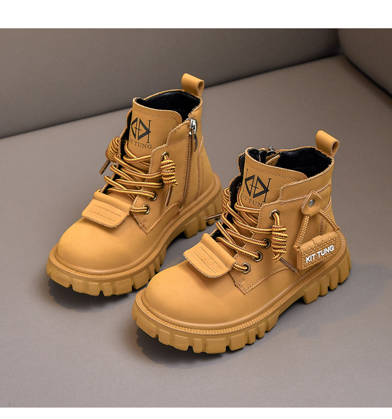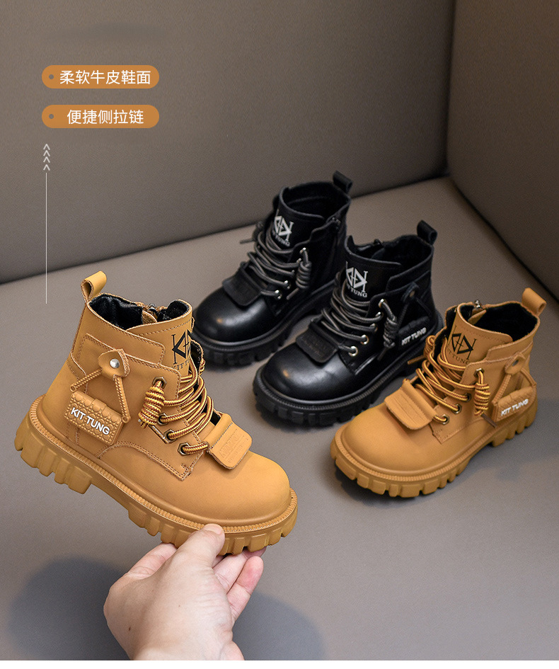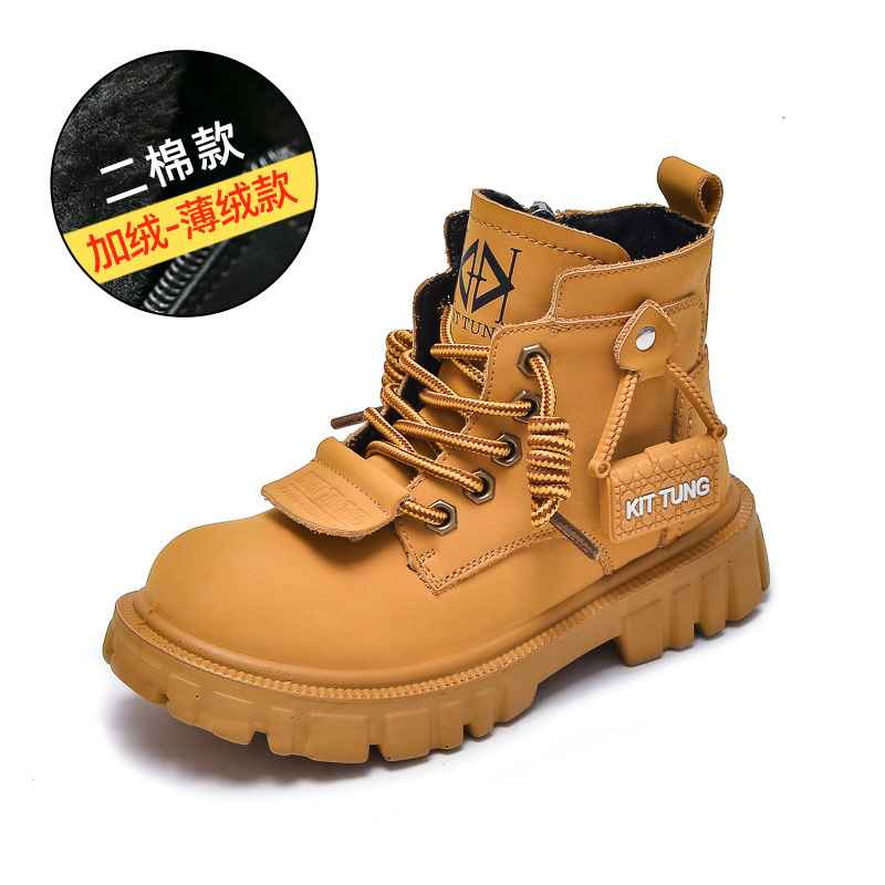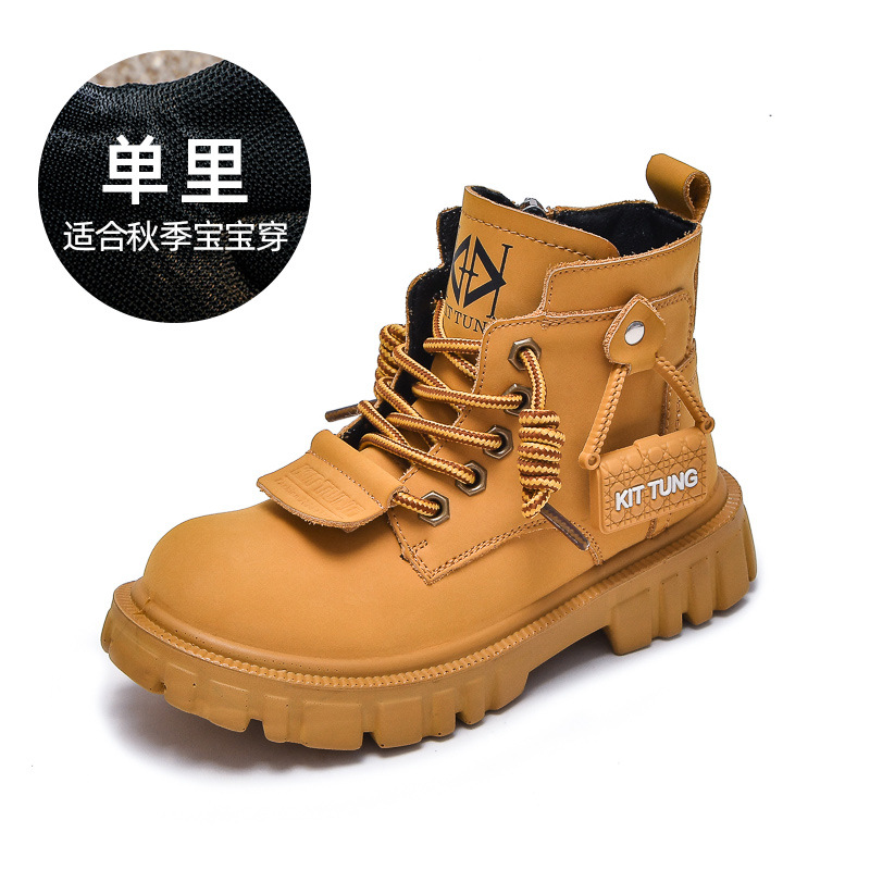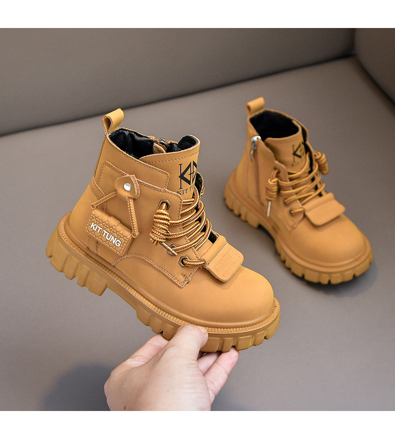 소년 마틴 부츠 2025 가을, 겨울 새로운 어린이 부츠 부드러운 밑창 캐주얼 다목적 플러스 벨벳 소년 작은 노란색 부츠 도매스토어 가기