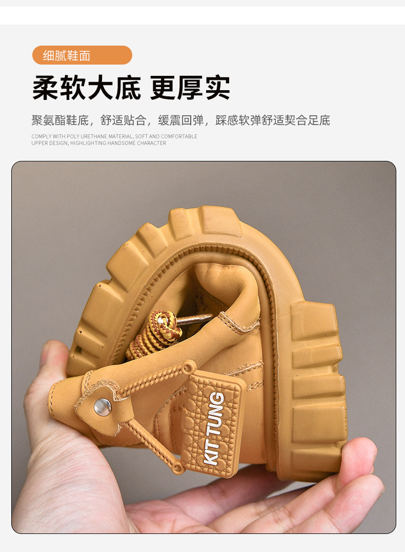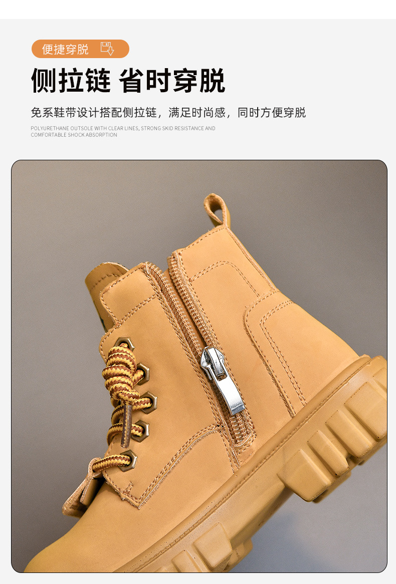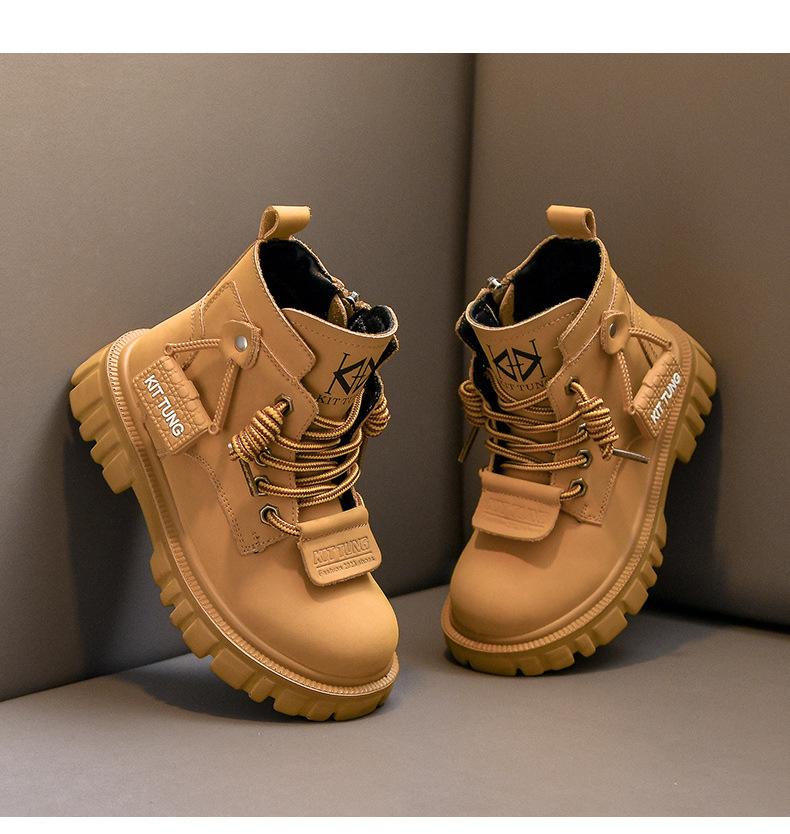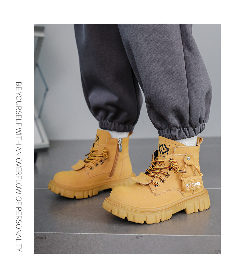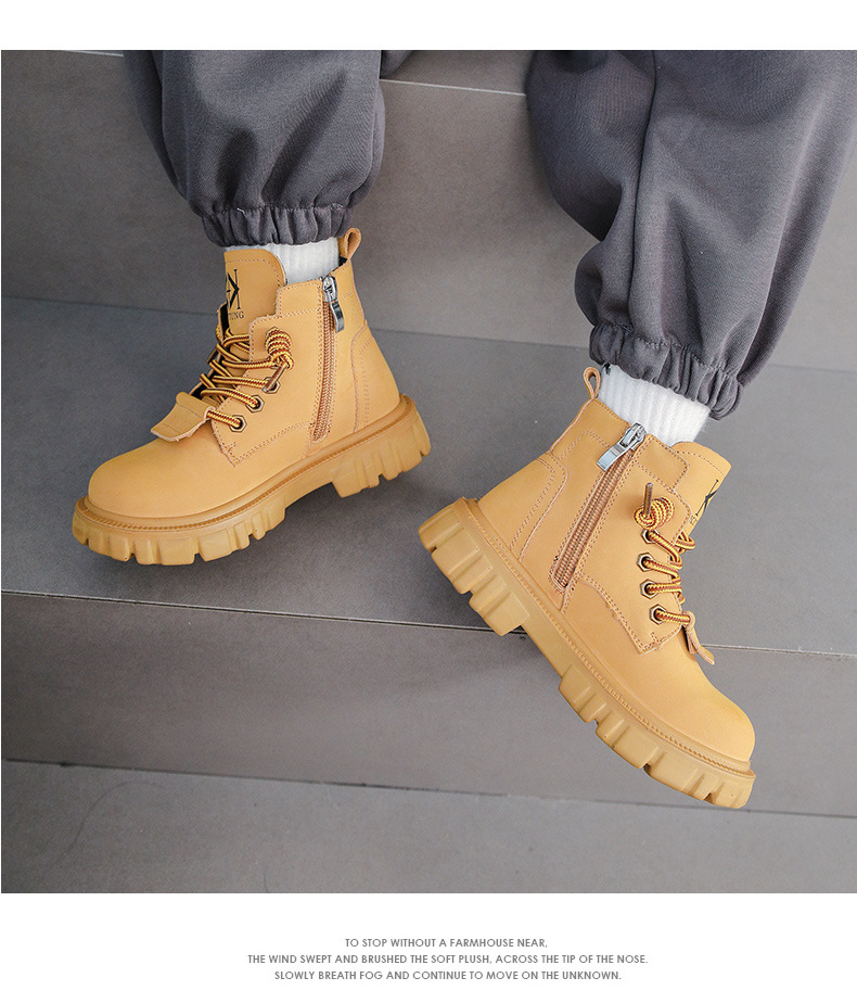 소년 마틴 부츠 2025 가을, 겨울 새로운 어린이 부츠 부드러운 밑창 캐주얼 다목적 플러스 벨벳 소년 작은 노란색 부츠 도매스토어 가기