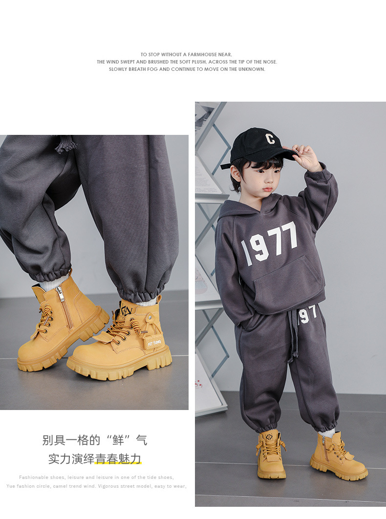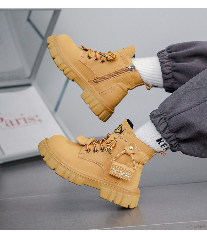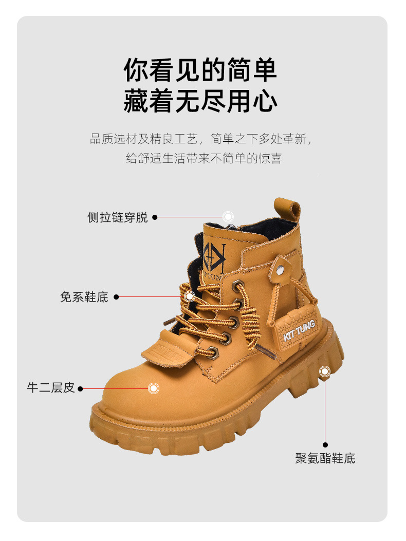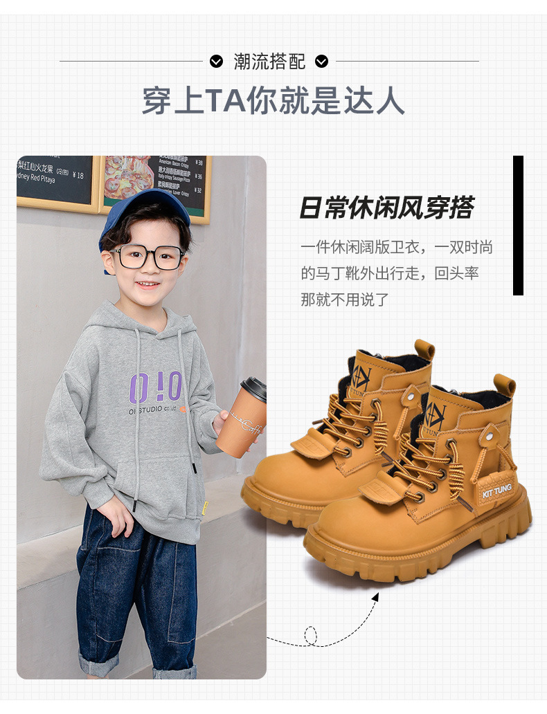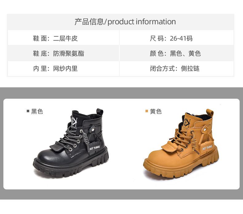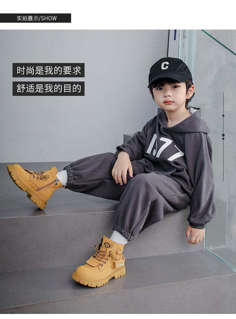 소년 마틴 부츠 2025 가을, 겨울 새로운 어린이 부츠 부드러운 밑창 캐주얼 다목적 플러스 벨벳 소년 작은 노란색 부츠 도매스토어 가기