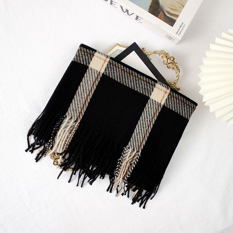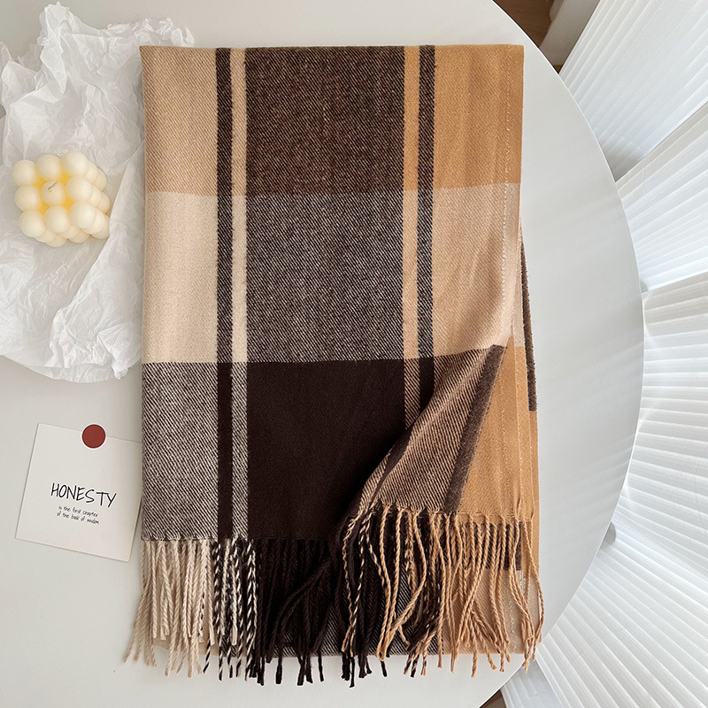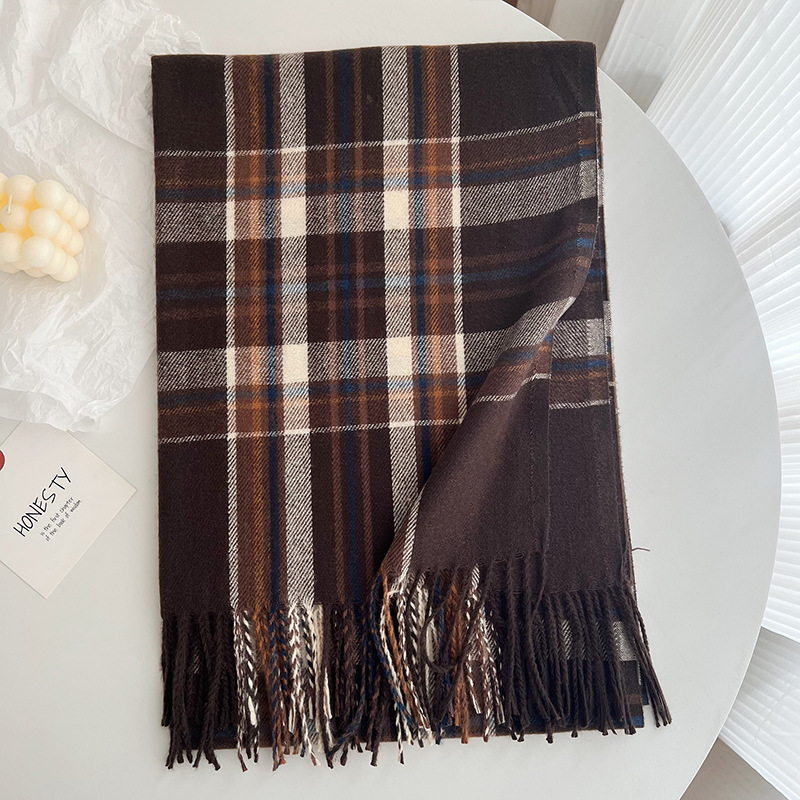 2025 새로운 한국 스타일 겨울 모조 캐시미어 복고풍 격자 무늬 스카프 남성과 여성 일본식 술 목도리 따뜻한 스카프스토어 가기
