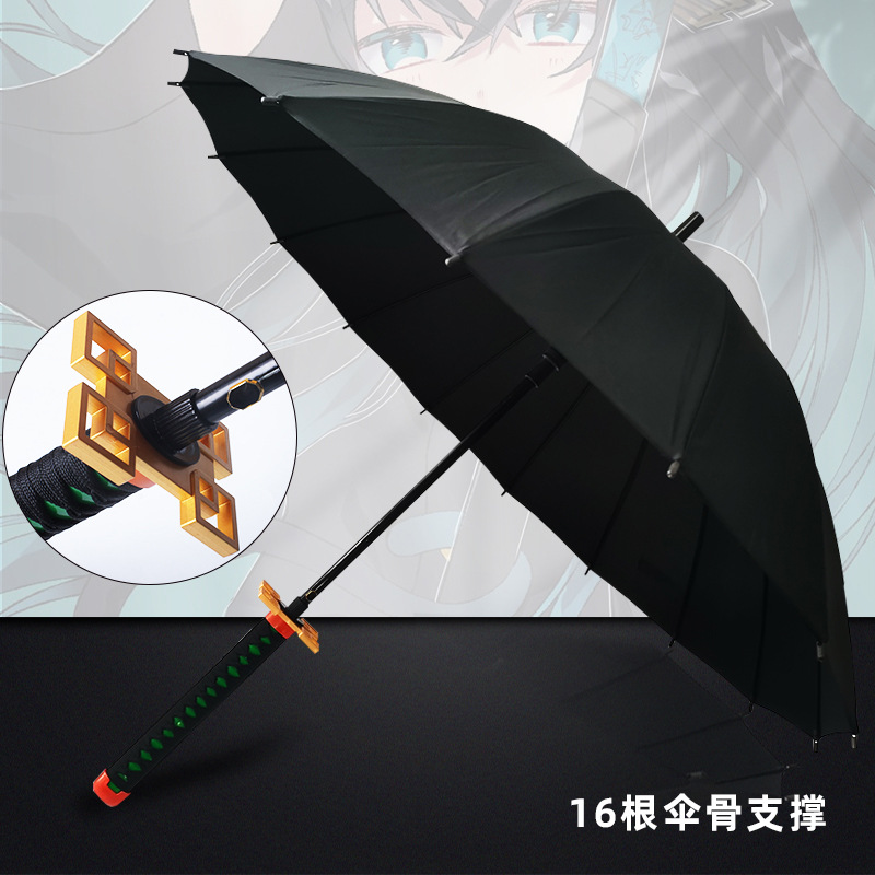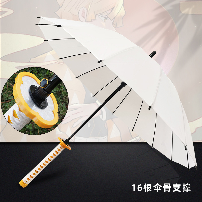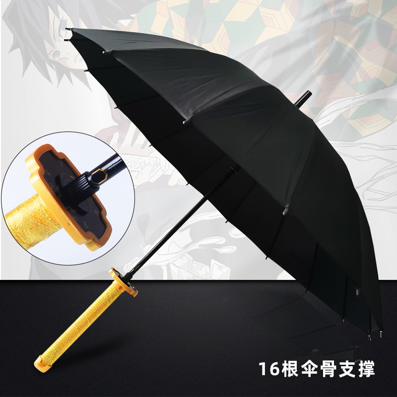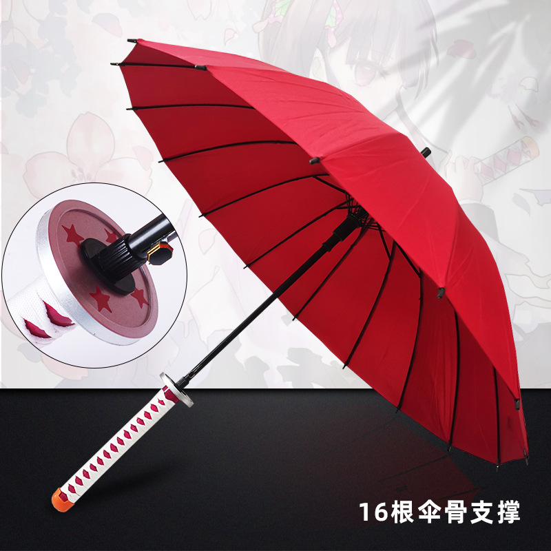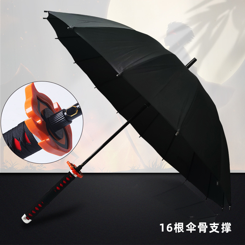 애니메이션 우산 긴 손잡이 우산 직선형 칼 모양 우산 귀멸의 칼날 우산 사무라이 개성 창의적 우산 16개의 뼈