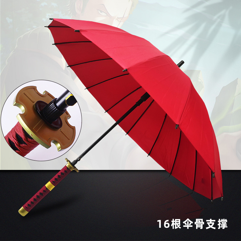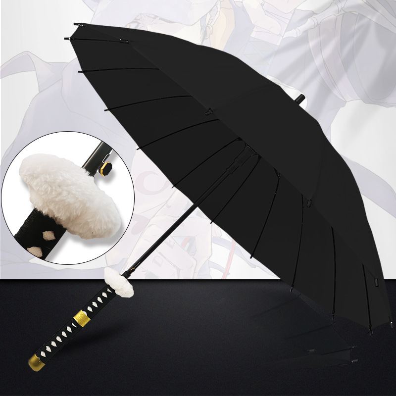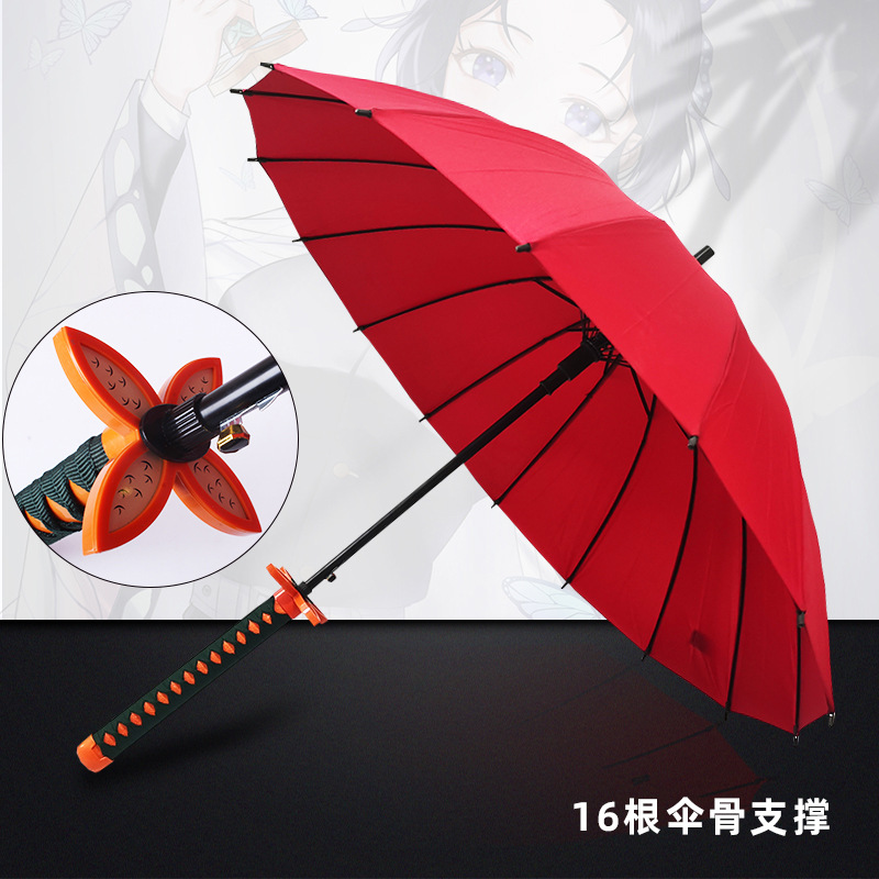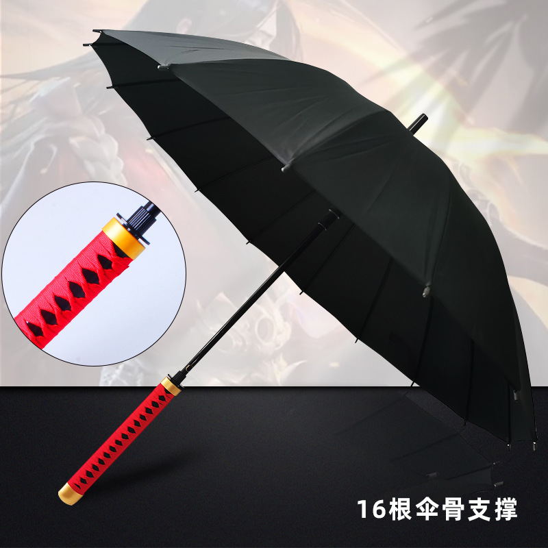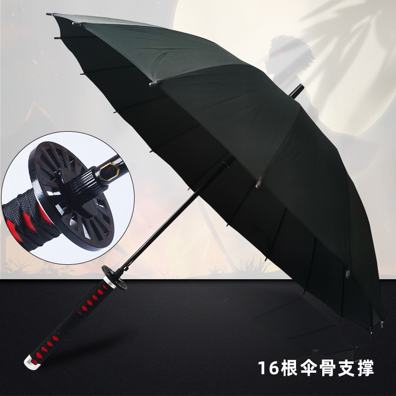 애니메이션 우산 긴 손잡이 우산 직선형 칼 모양 우산 귀멸의 칼날 우산 사무라이 개성 창의적 우산 16개의 뼈