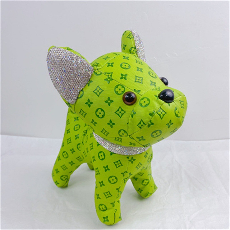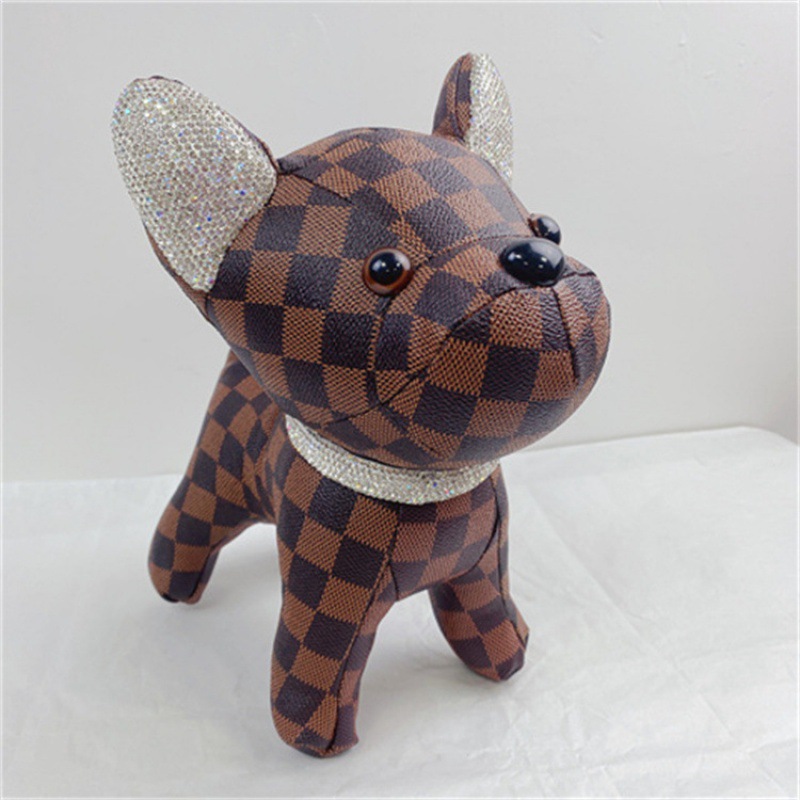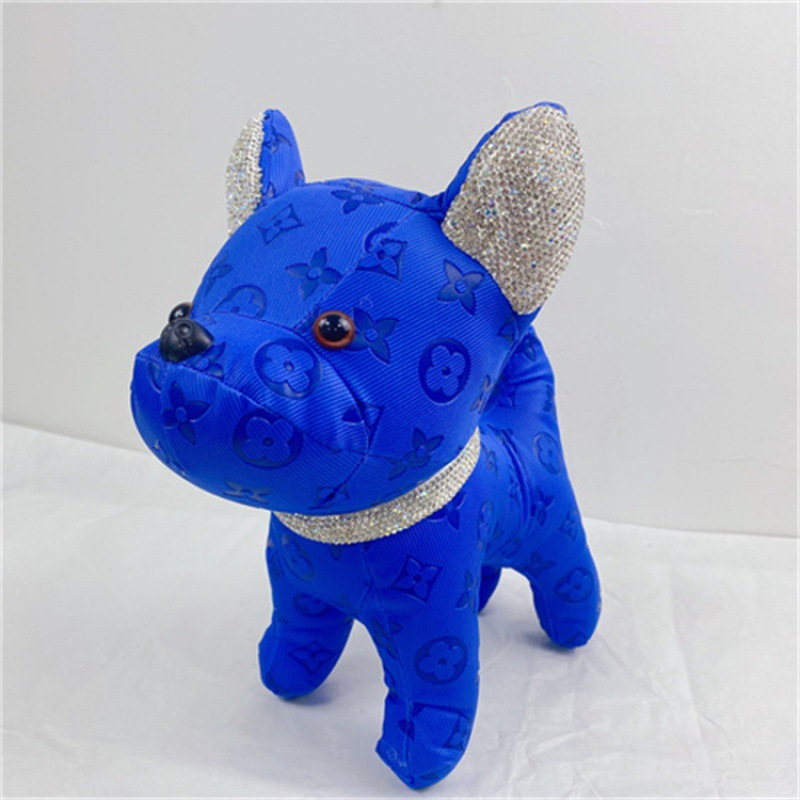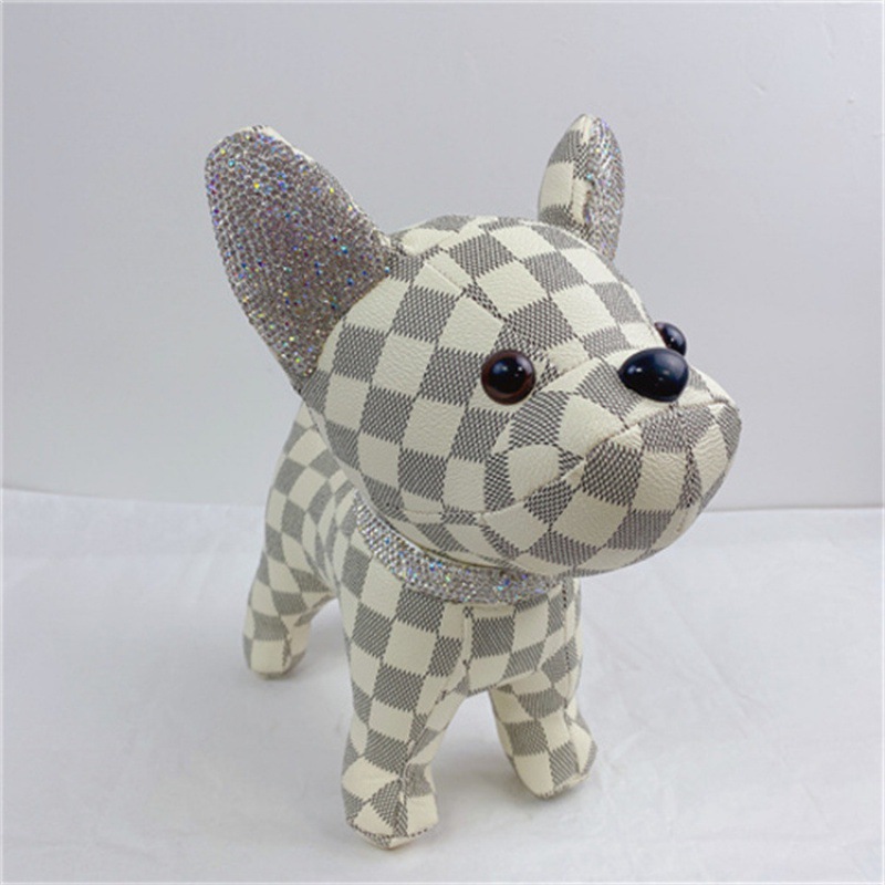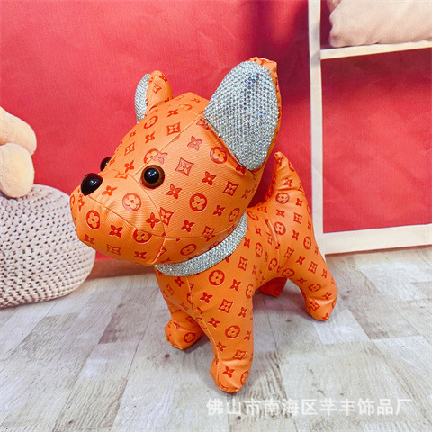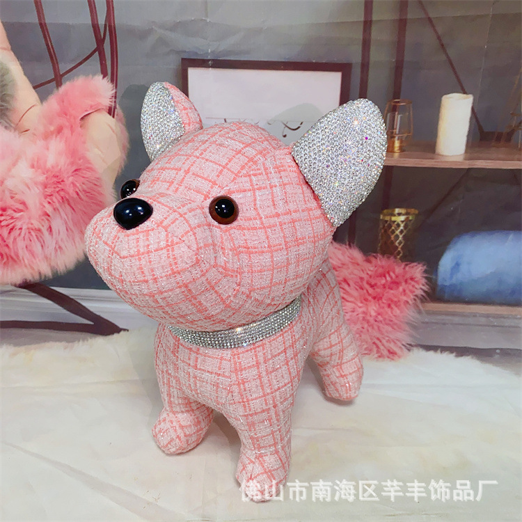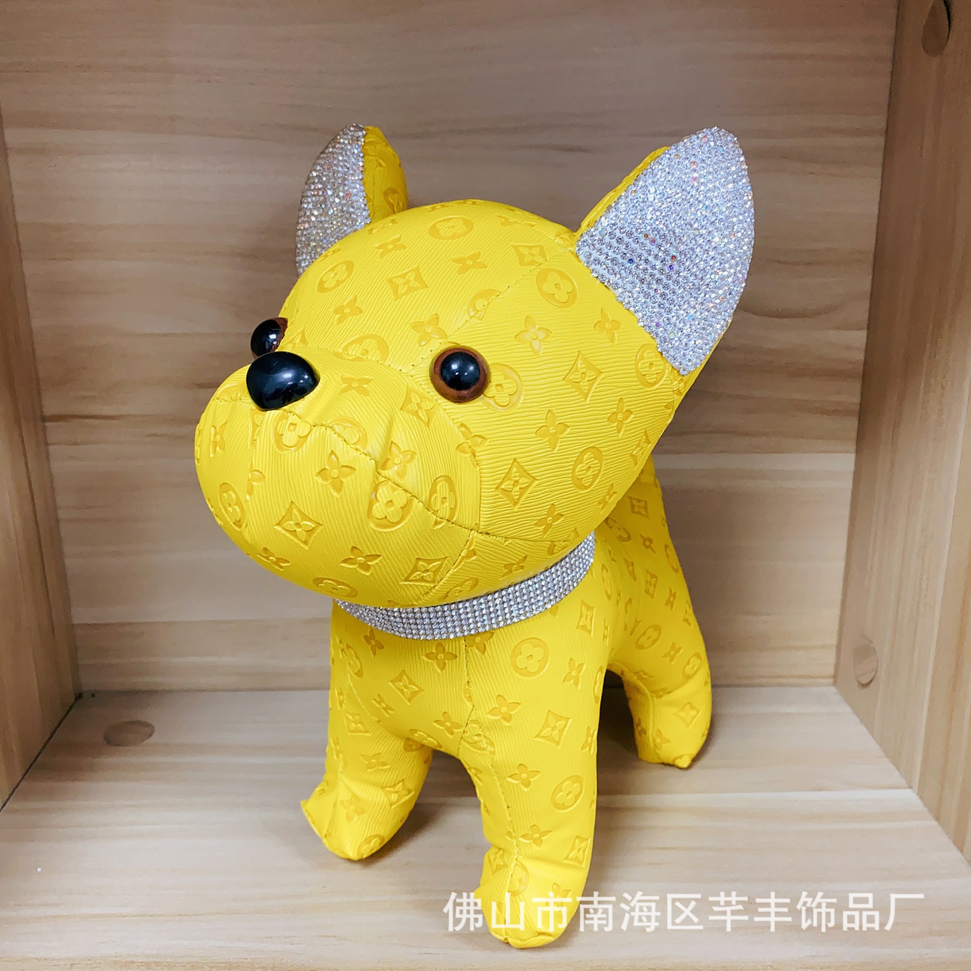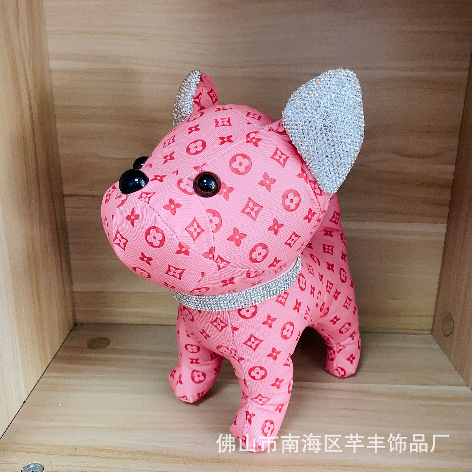 手工皮质网红镶钻法斗狗公仔带水钻车载摆件布偶娃娃玩具一件代发