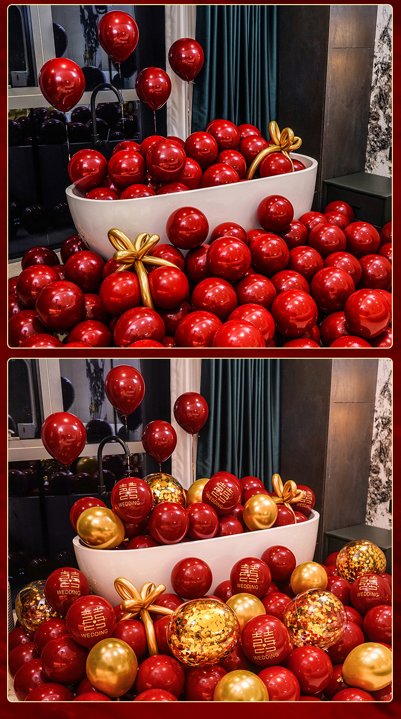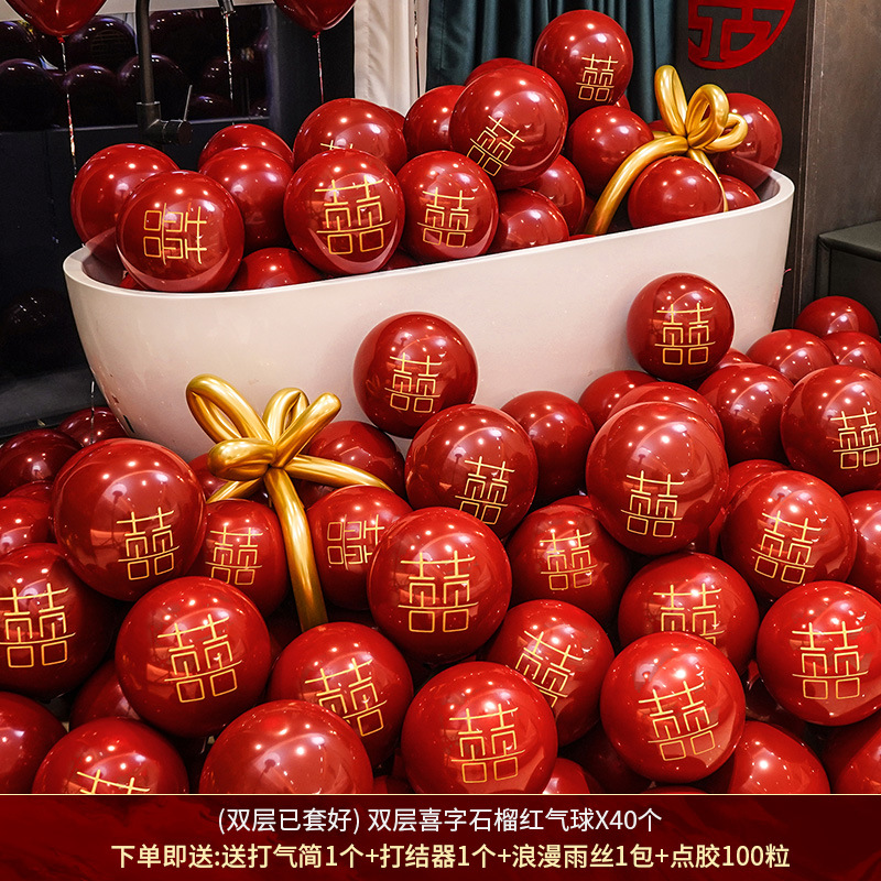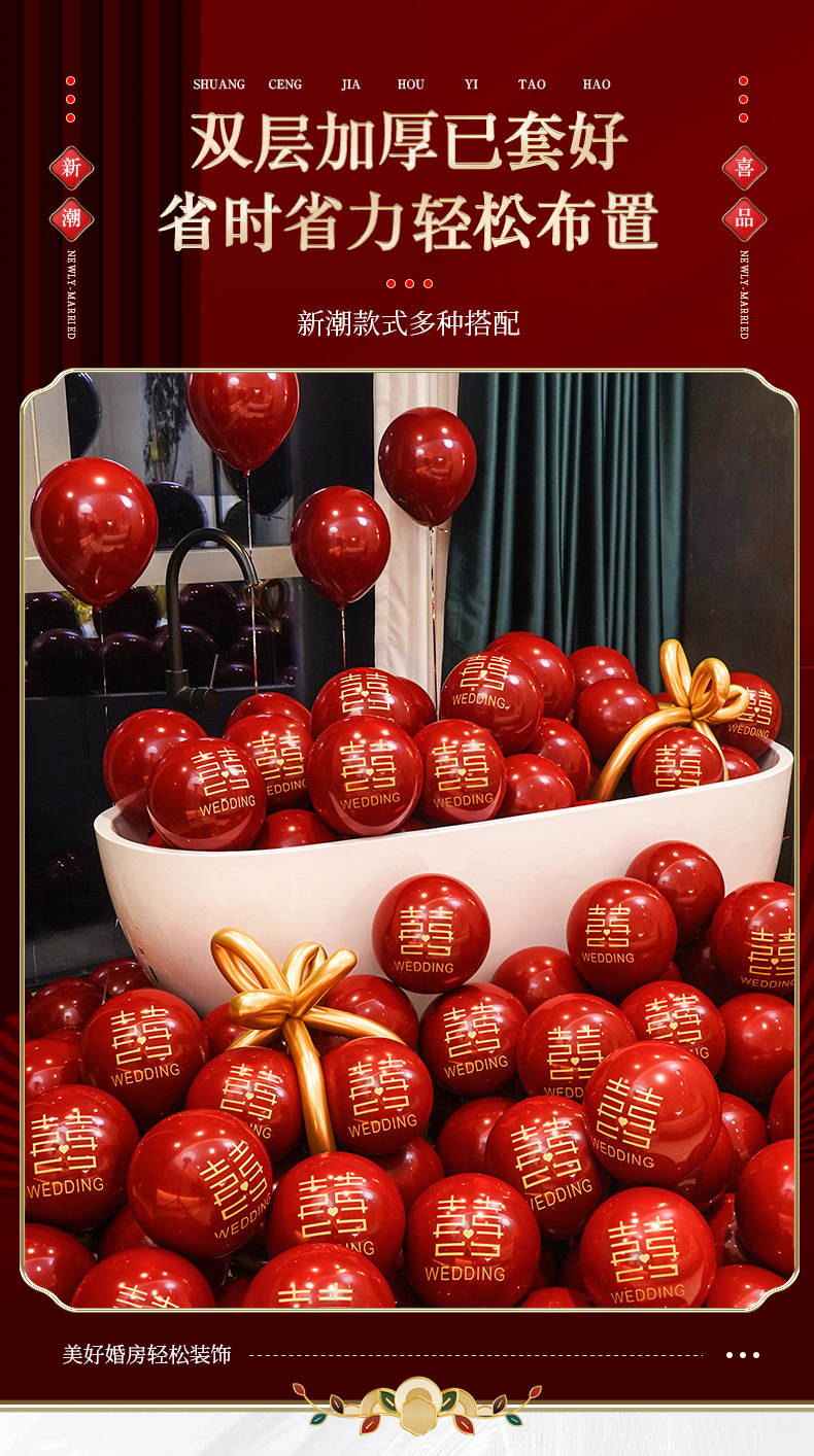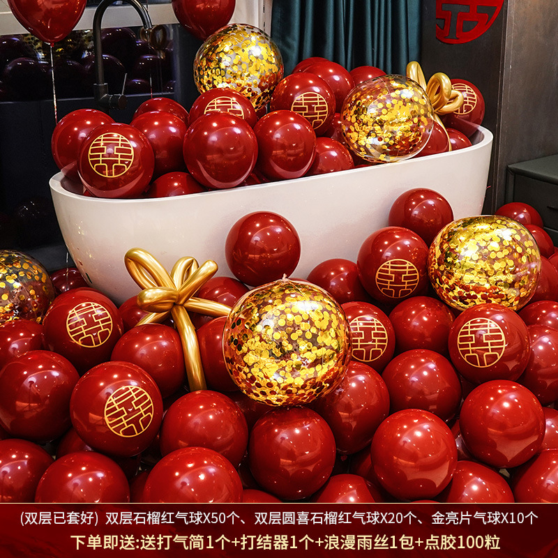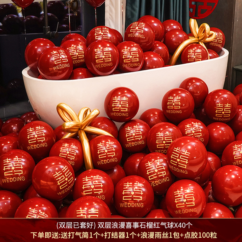 인터넷 레드 웨딩 룸 풍선 세트 다콴 웨딩 침실 2 층 웨딩 약혼 웨딩 장면 장식 용품스토어 가기