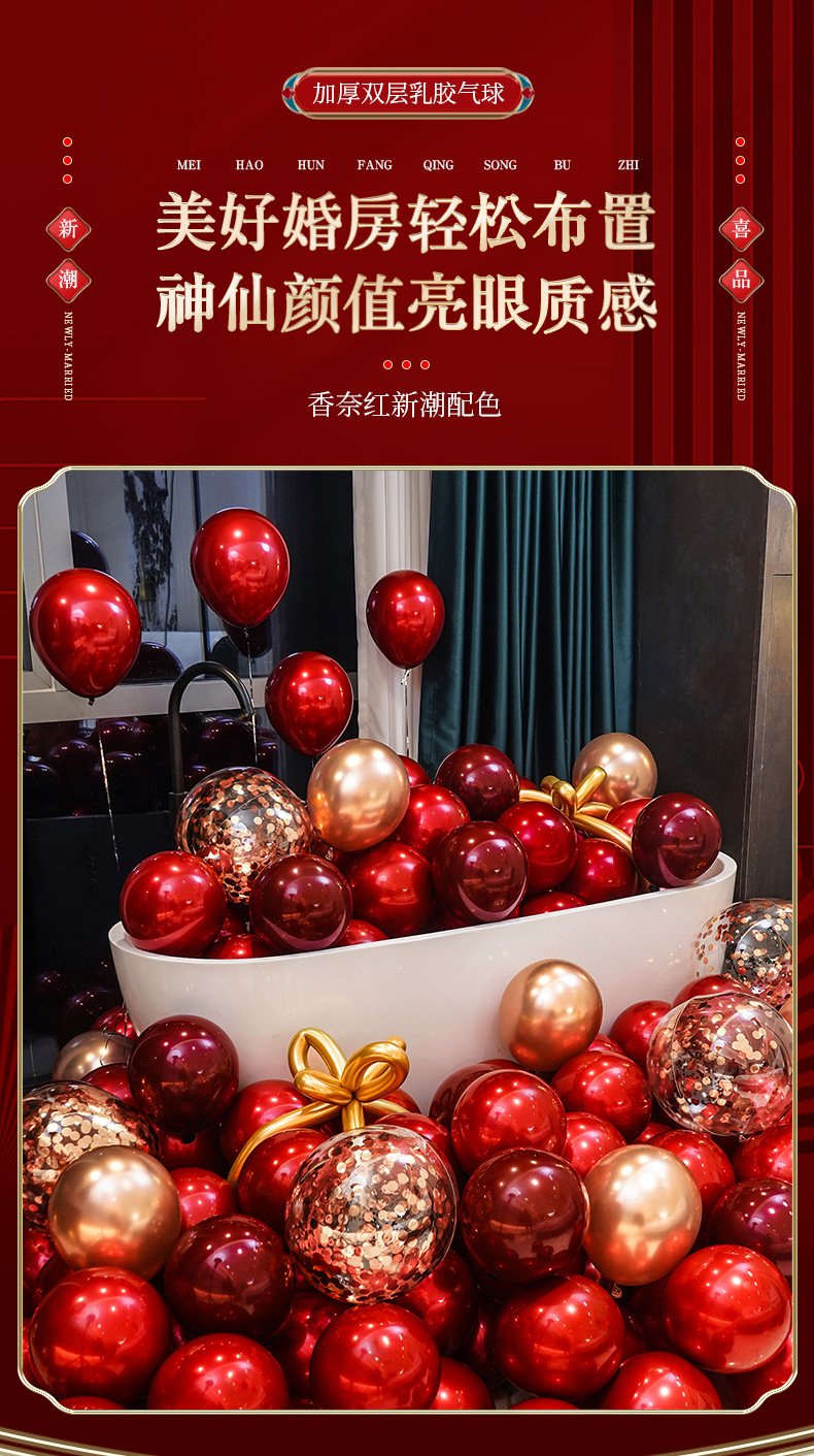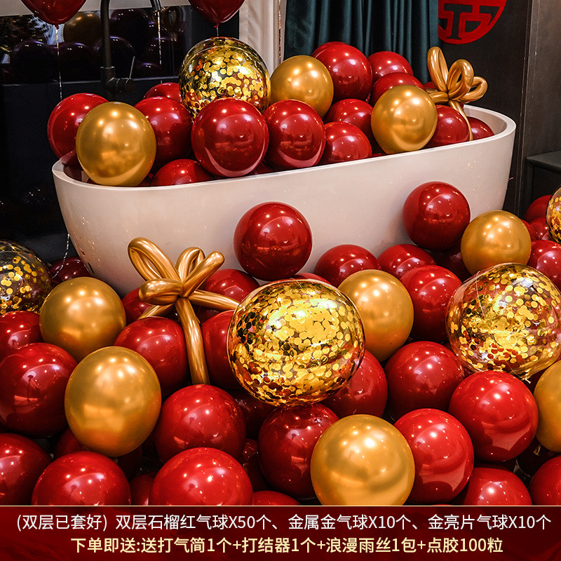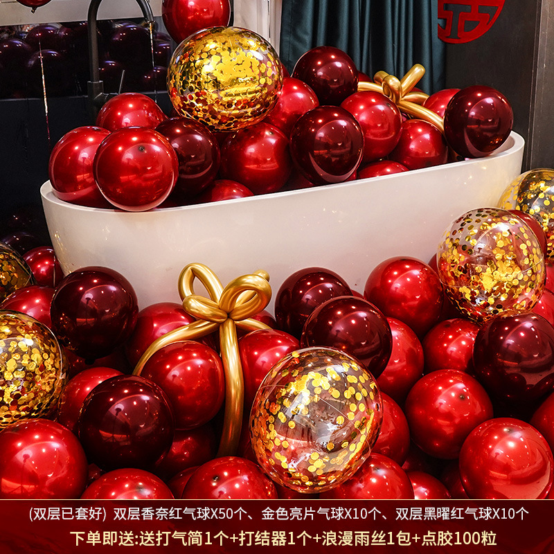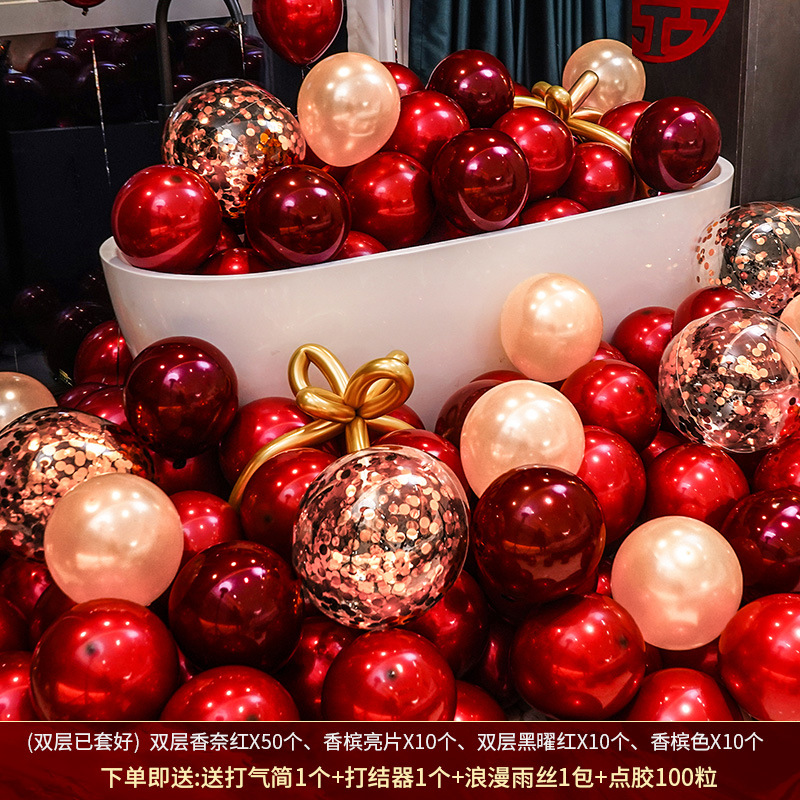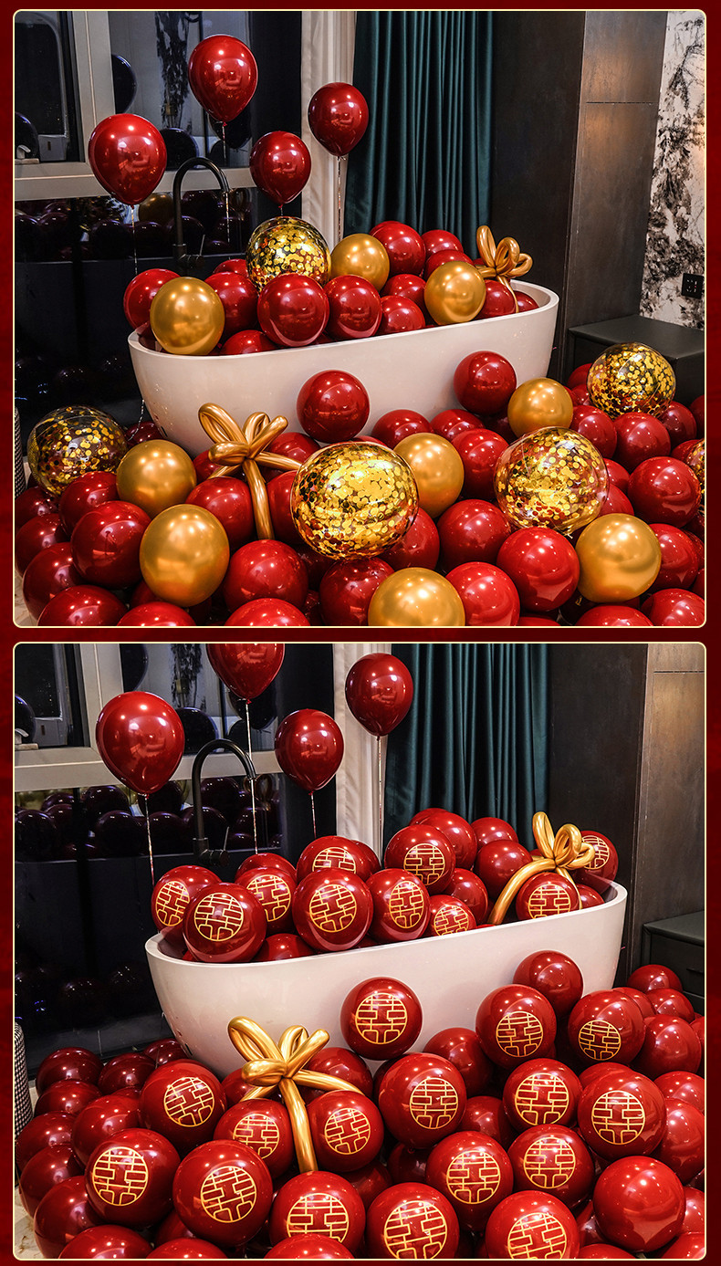 인터넷 레드 웨딩 룸 풍선 세트 다콴 웨딩 침실 2 층 웨딩 약혼 웨딩 장면 장식 용품스토어 가기