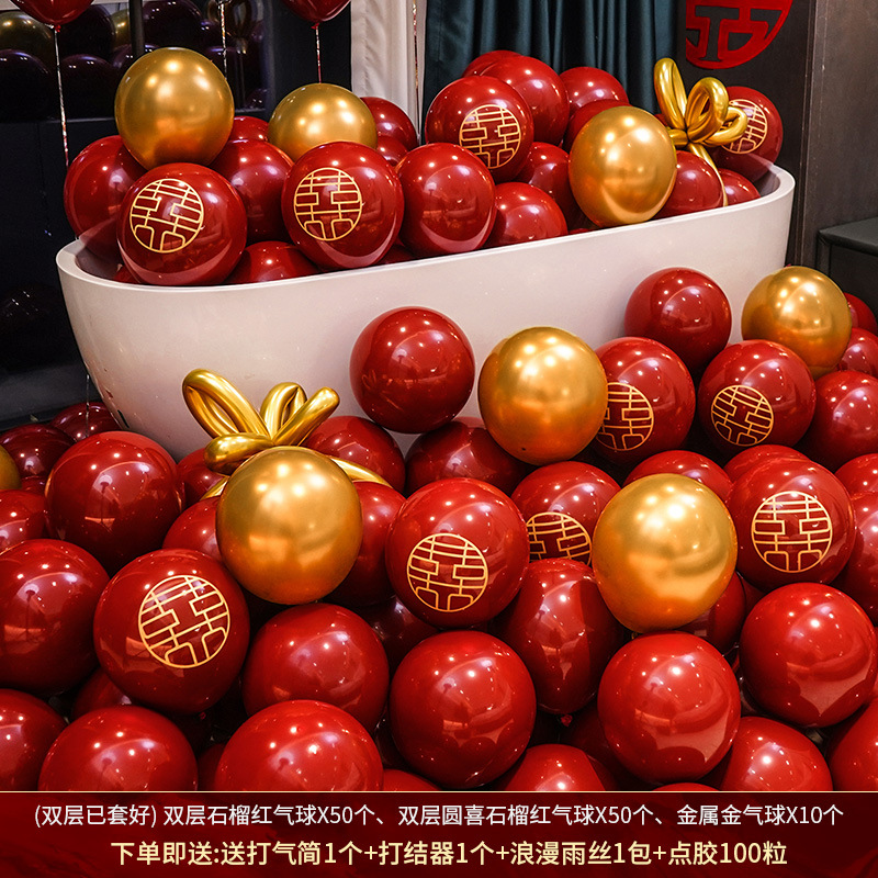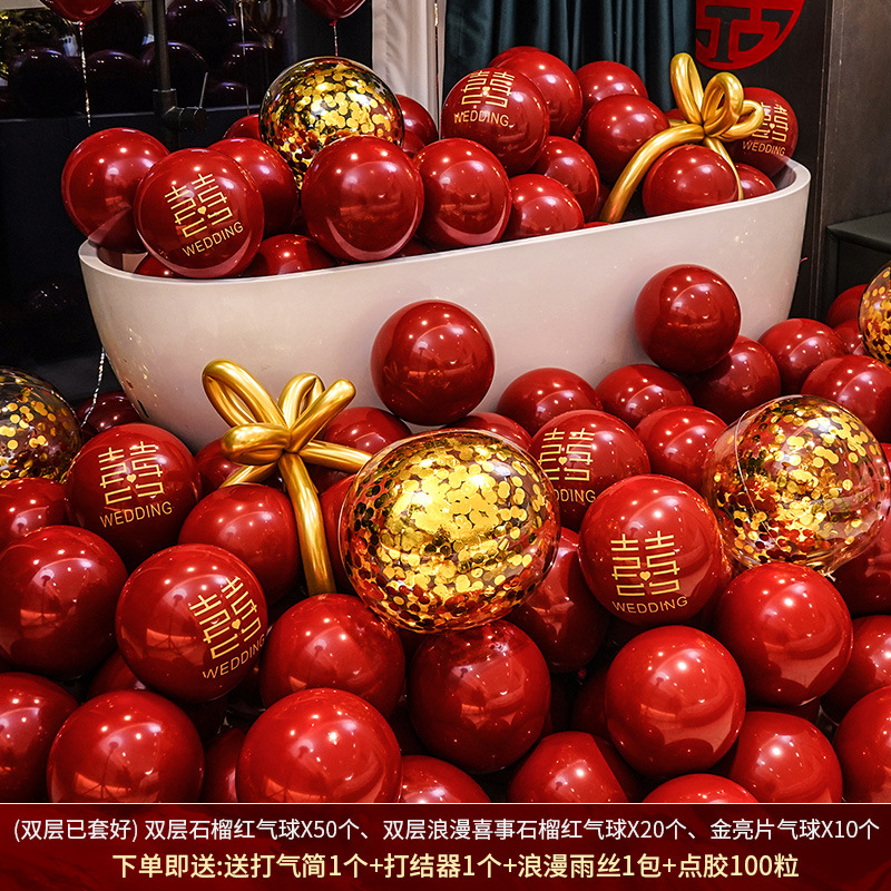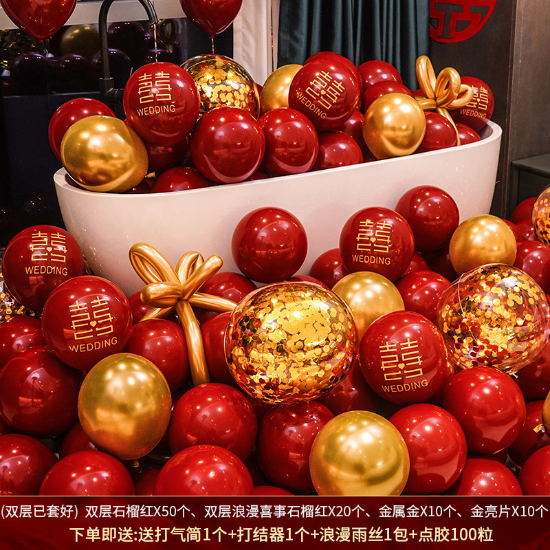 인터넷 레드 웨딩 룸 풍선 세트 다콴 웨딩 침실 2 층 웨딩 약혼 웨딩 장면 장식 용품