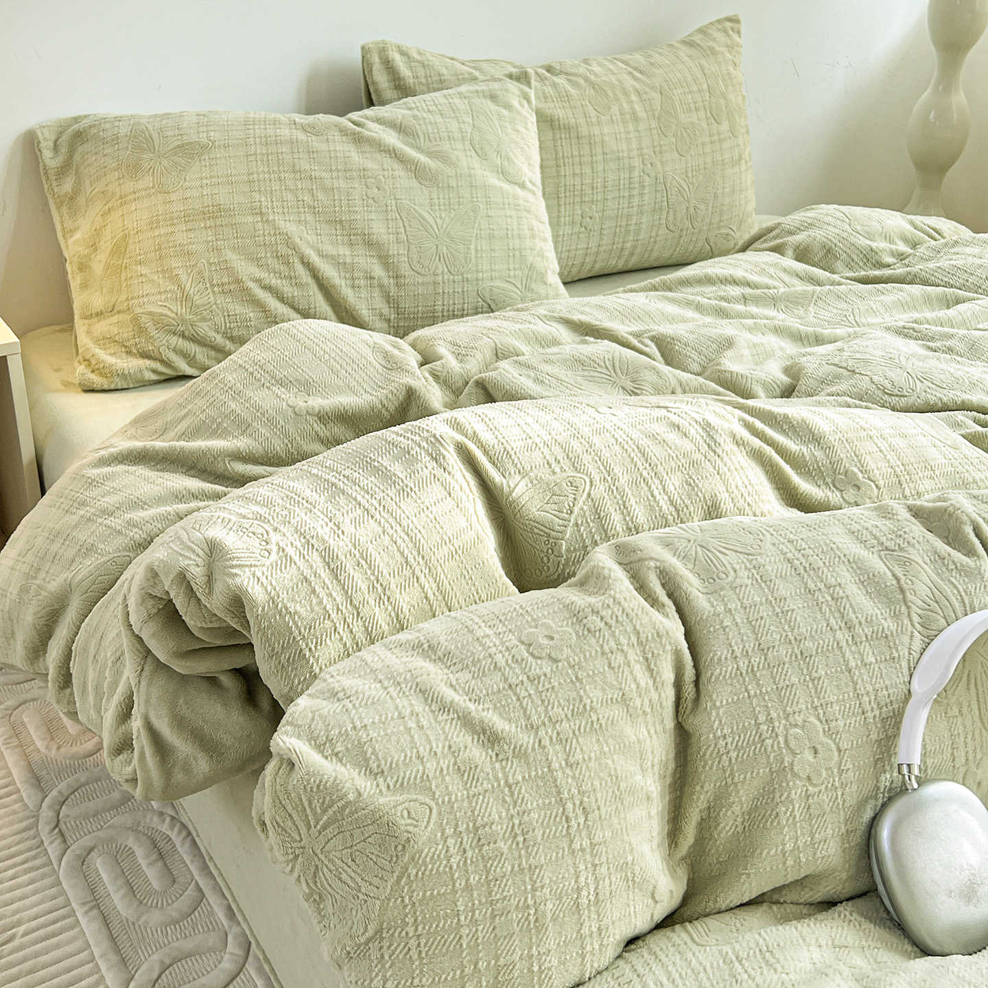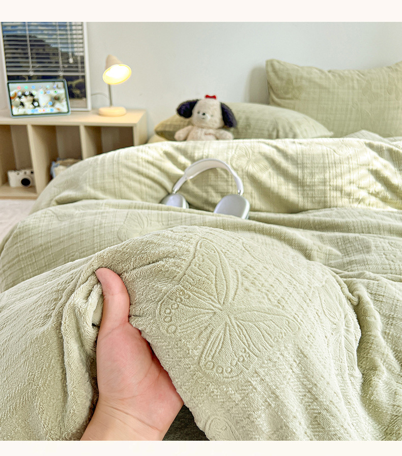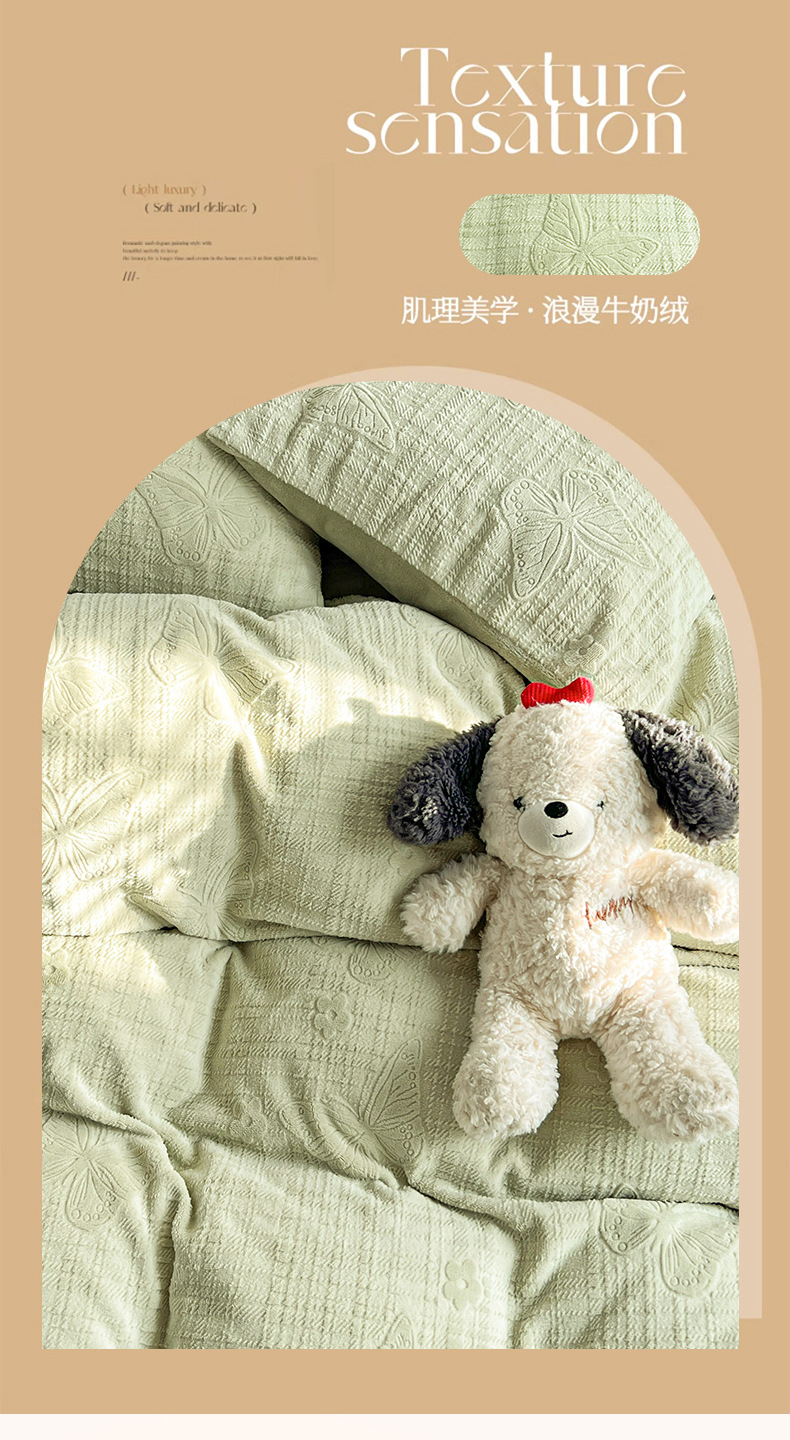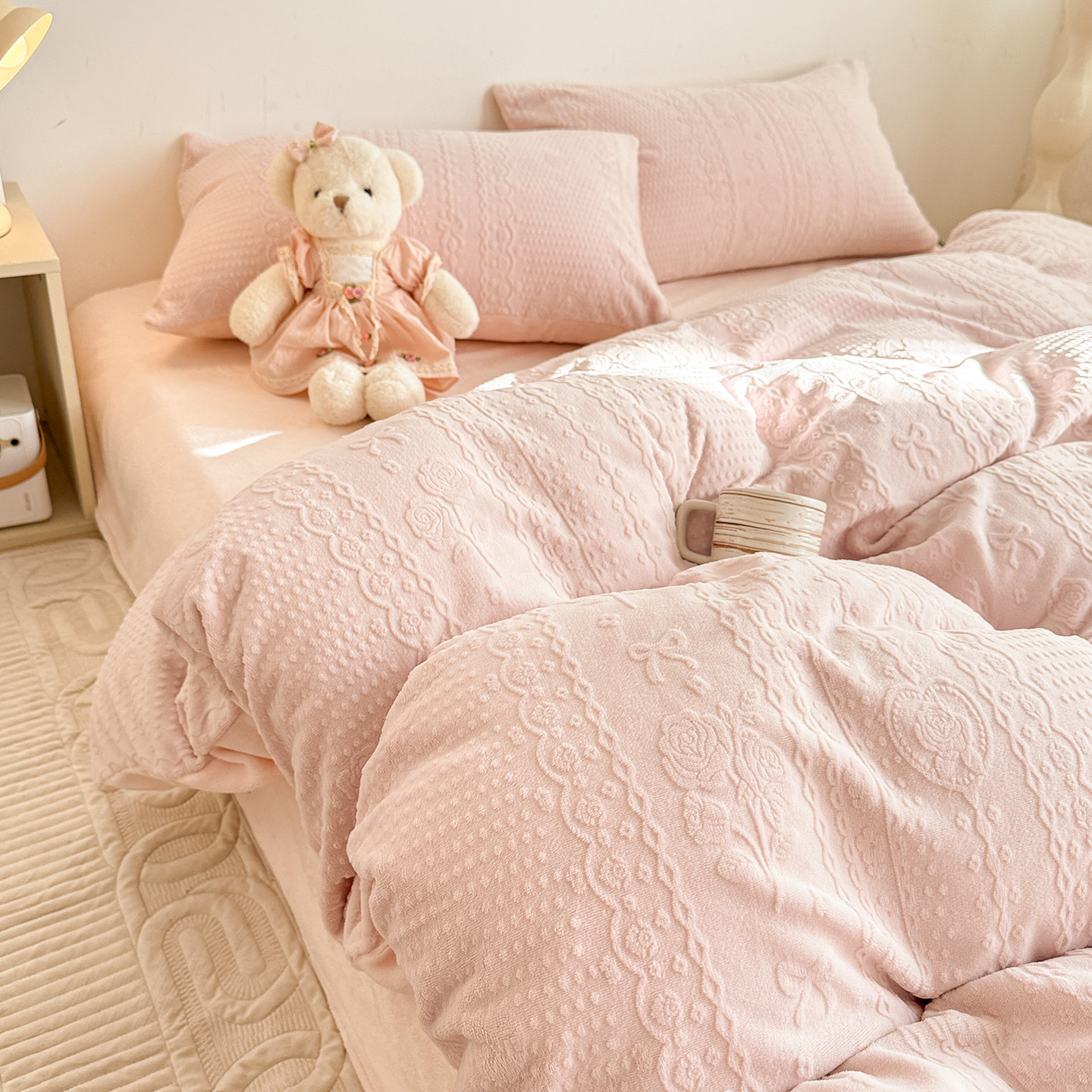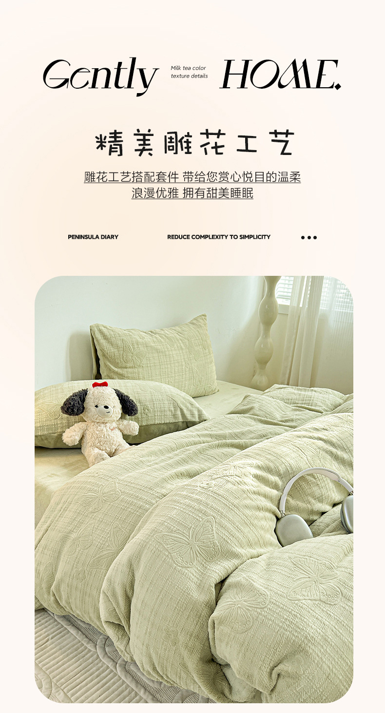 Ins 조용한 바람 우유 벨벳 4 종 세트 클래스 와플 침대 시트 퀼트 커버 침대 모자 Nantong 홈 섬유 침대 4 종 세트스토어 가기