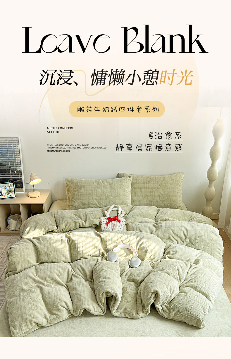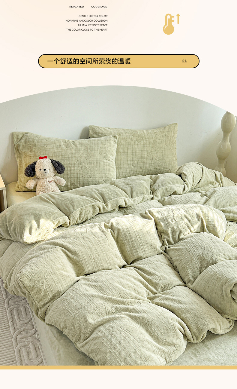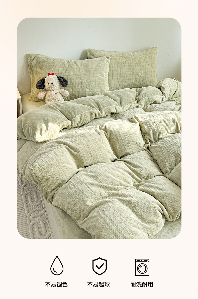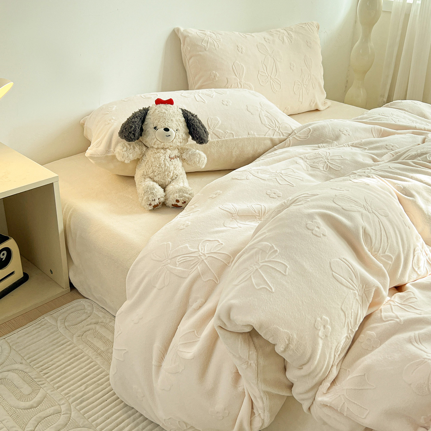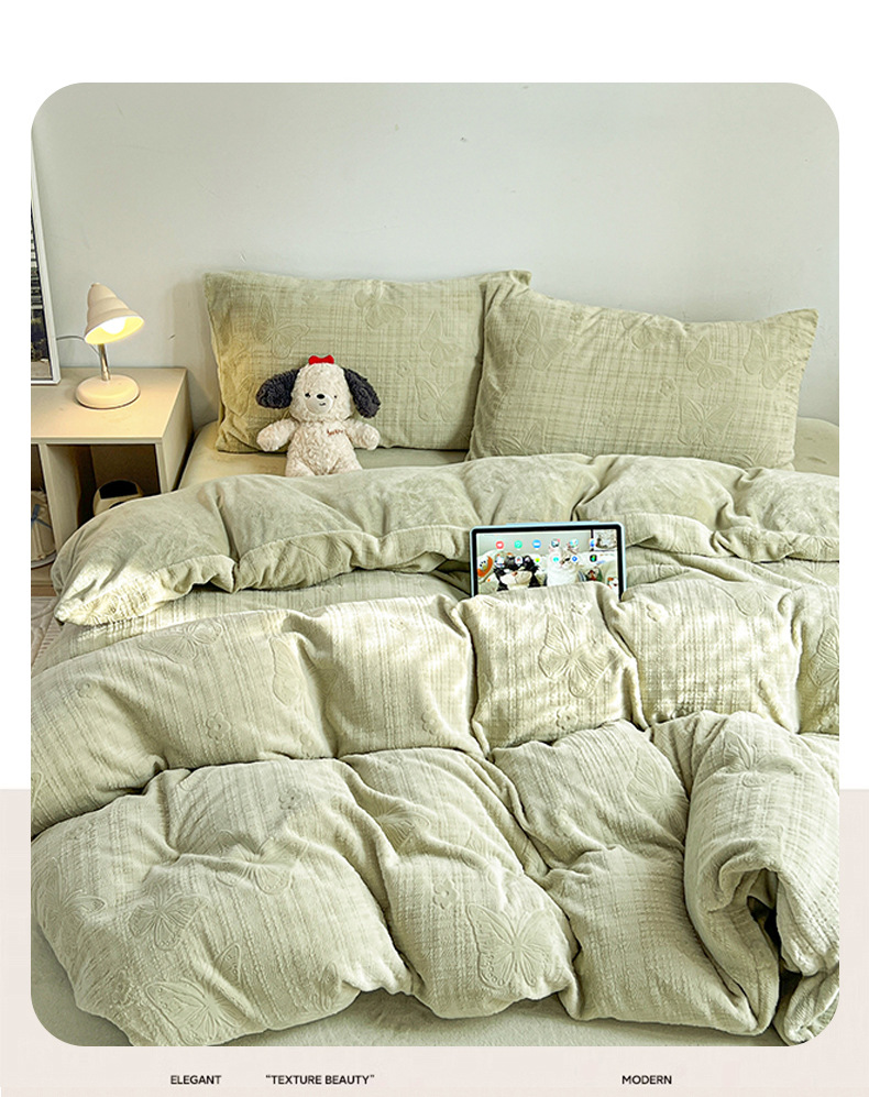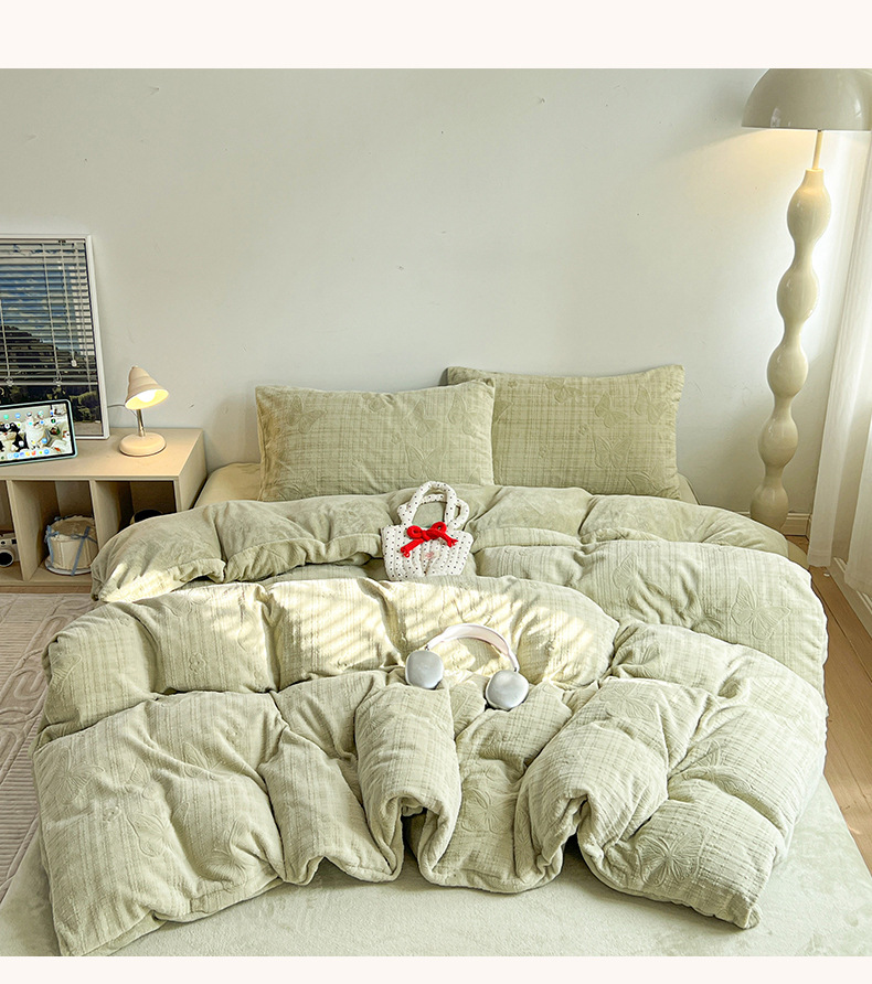Ins 조용한 바람 우유 벨벳 4 종 세트 클래스 와플 침대 시트 퀼트 커버 침대 모자 Nantong 홈 섬유 침대 4 종 세트스토어 가기