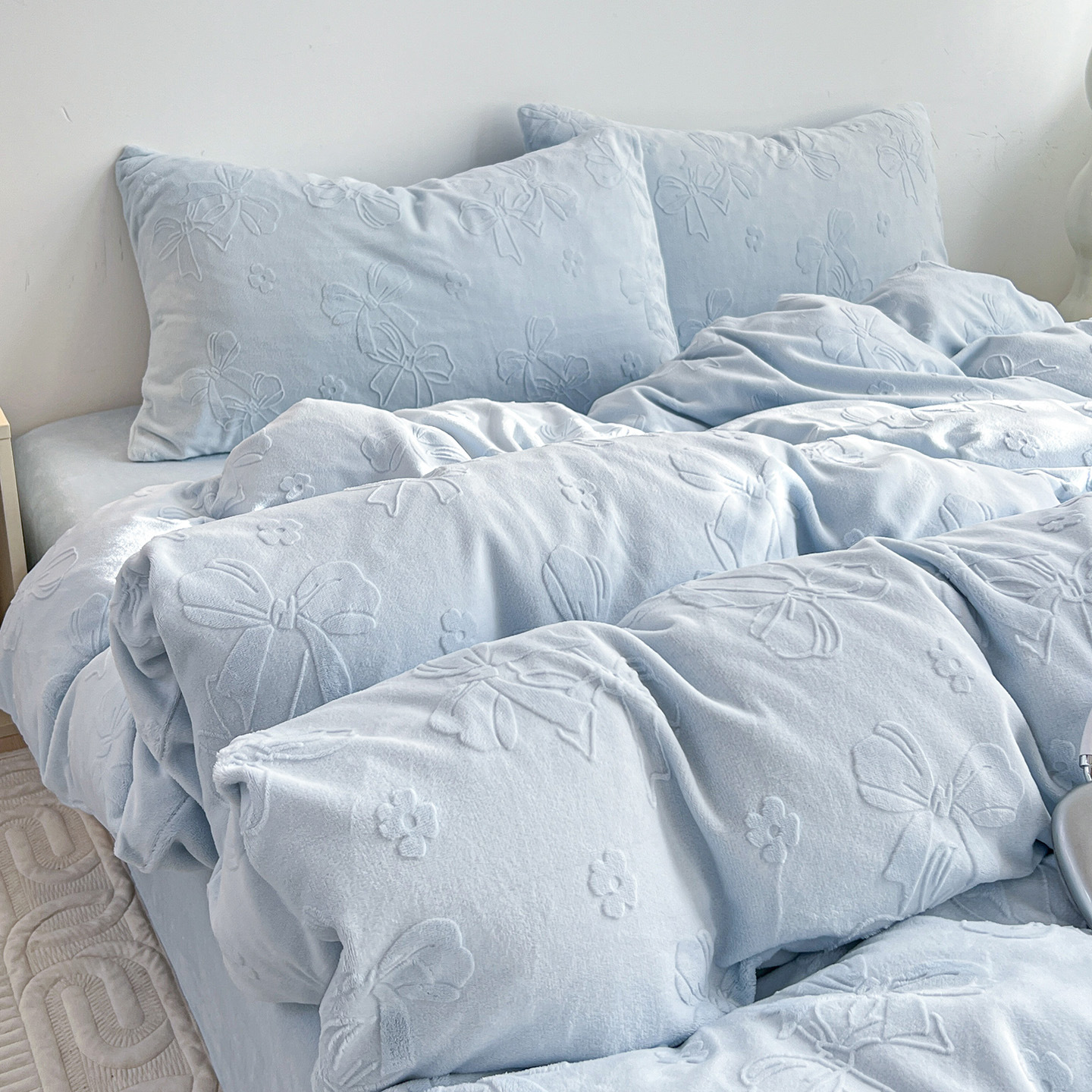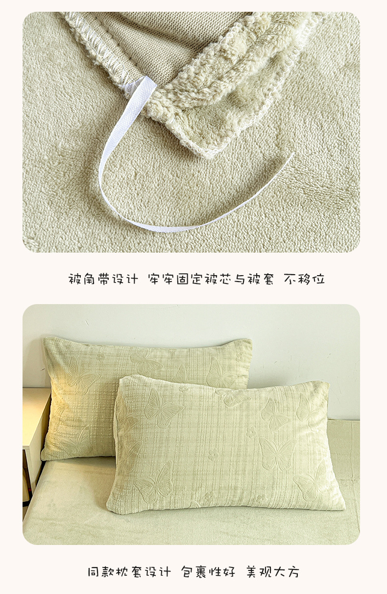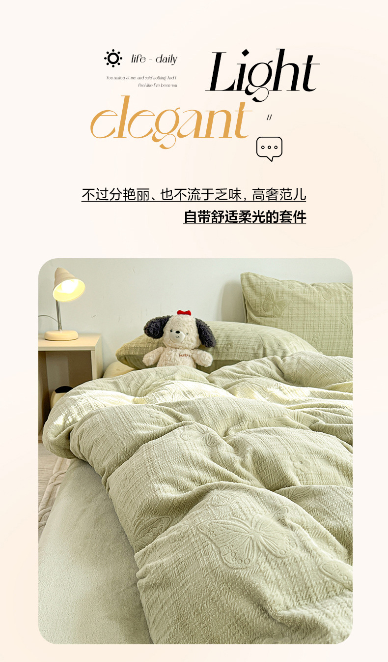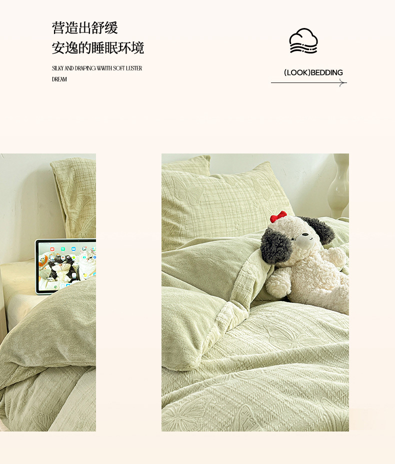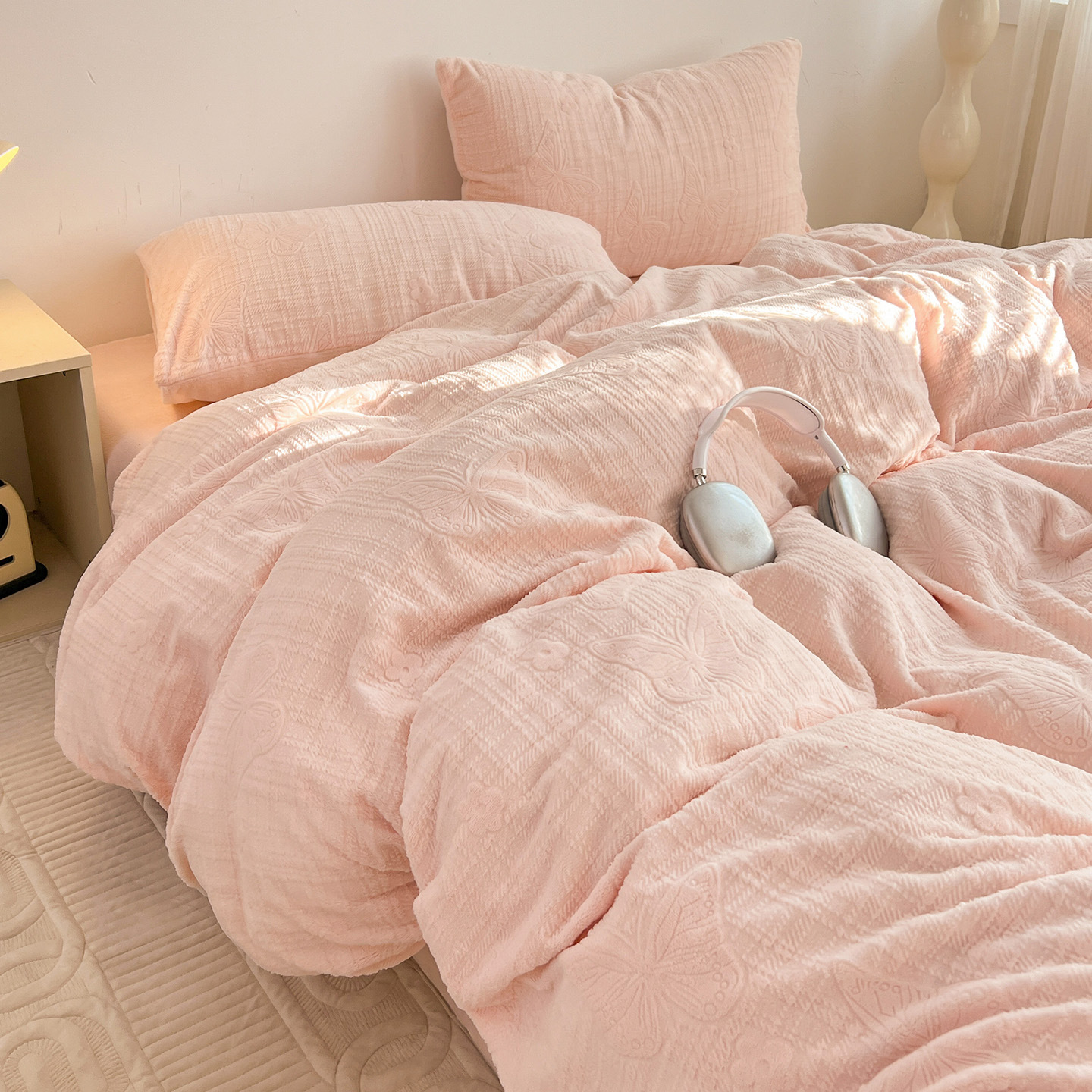 Ins 조용한 바람 우유 벨벳 4 종 세트 클래스 와플 침대 시트 퀼트 커버 침대 모자 Nantong 홈 섬유 침대 4 종 세트스토어 가기