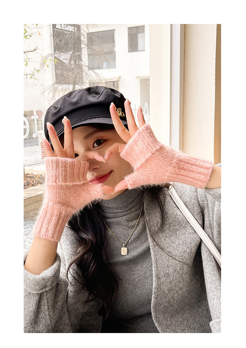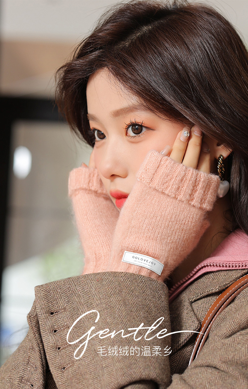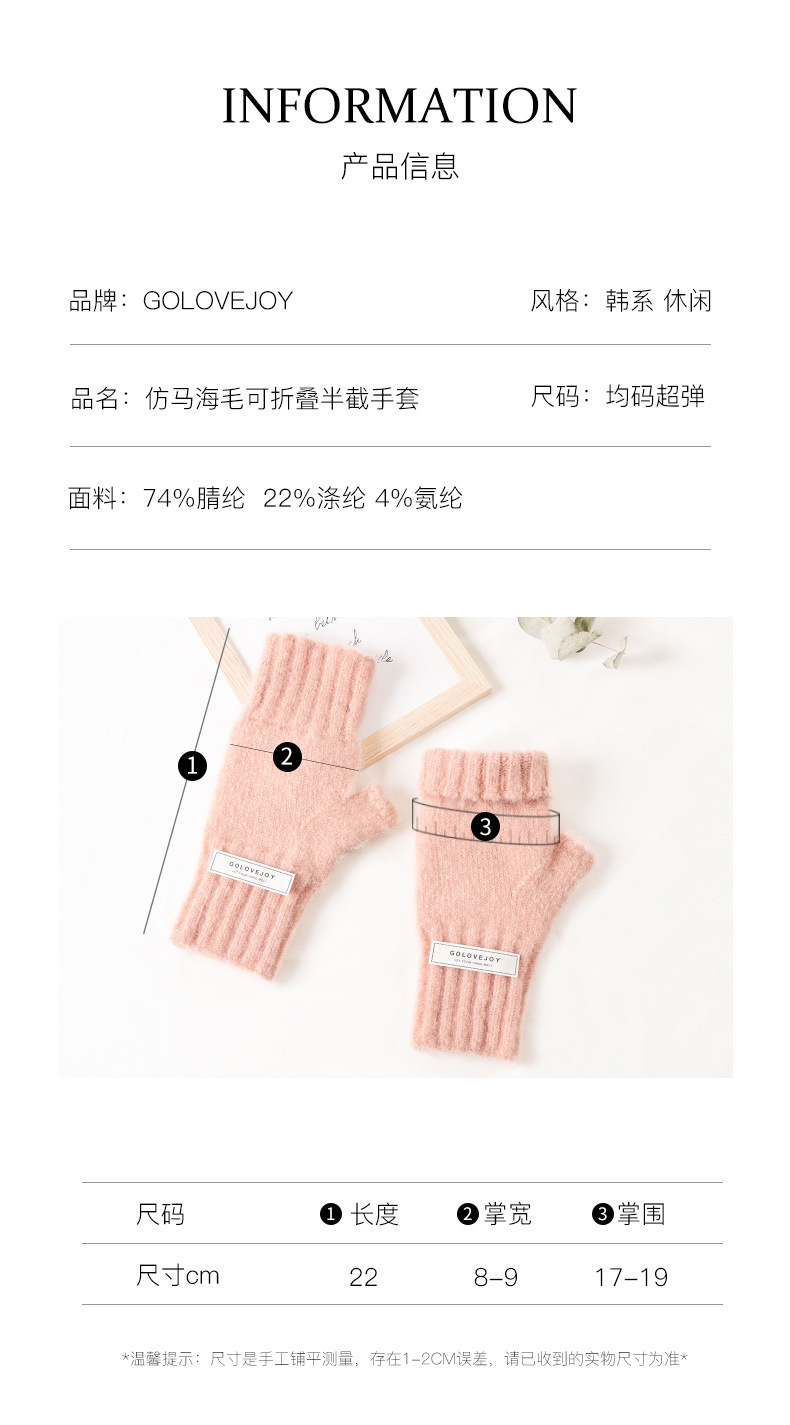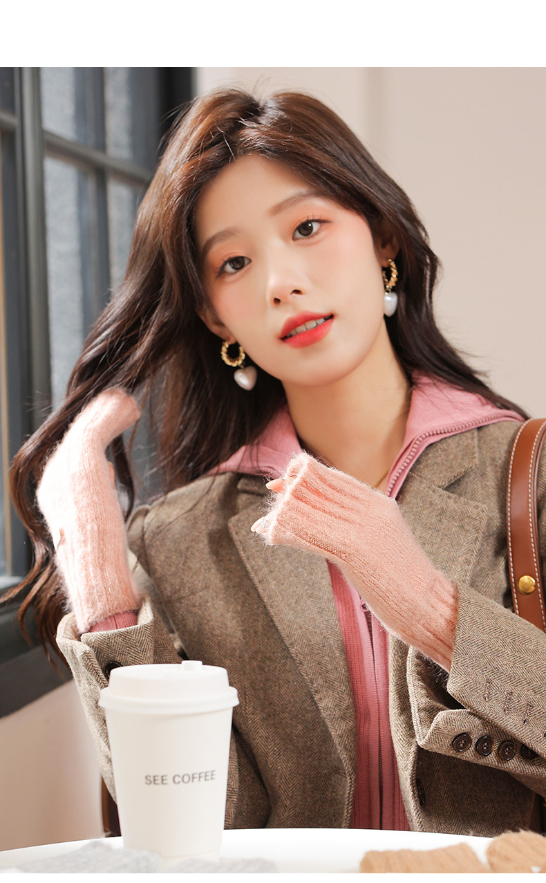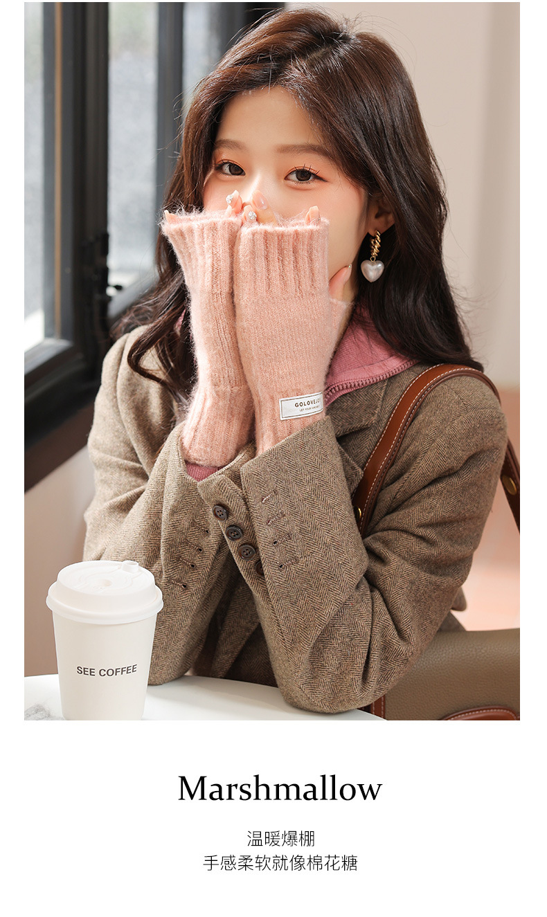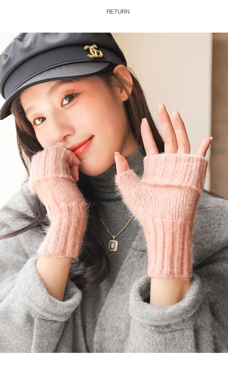 겨울 새로운 한국식 반 손가락 니트 장갑 여자의 가을 기모 두꺼운 모조 모헤어 오픈 손가락 따뜻한 장갑
