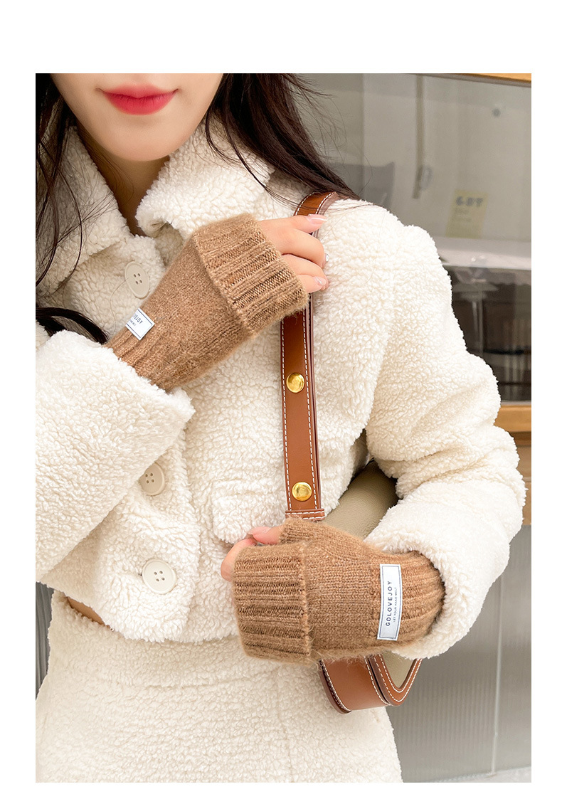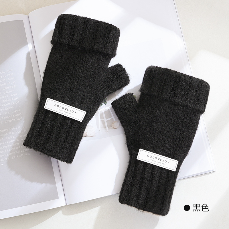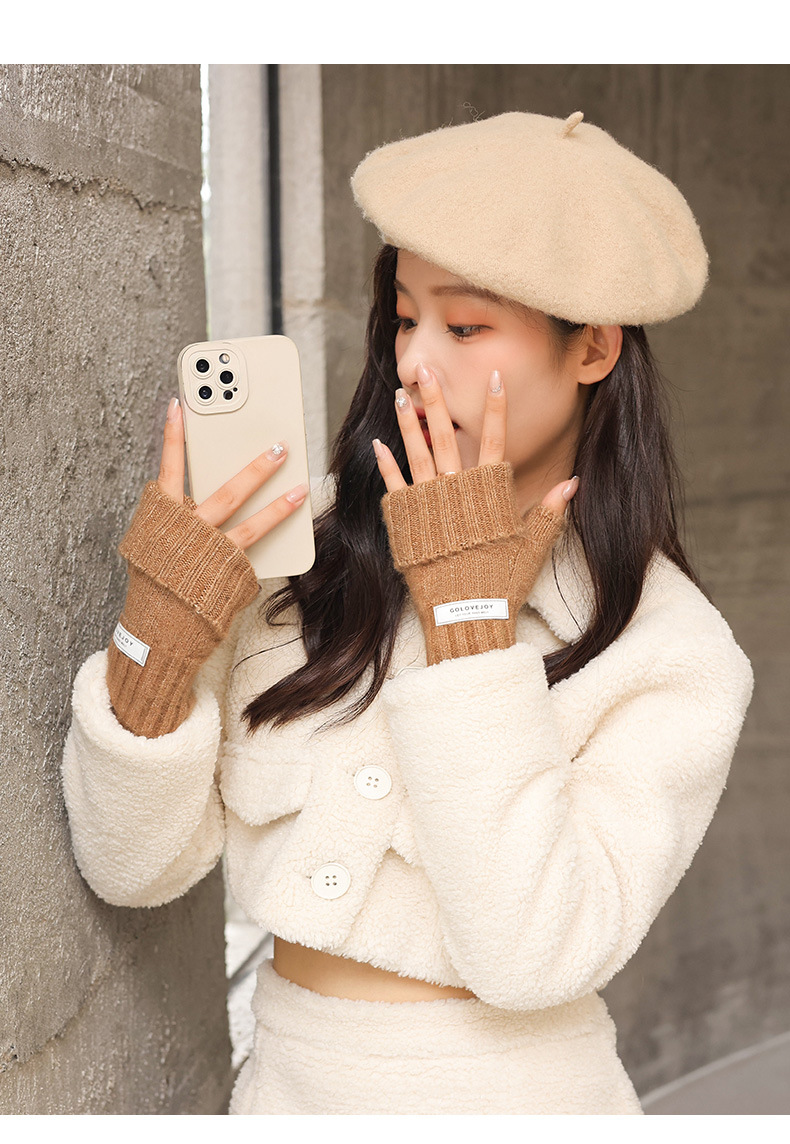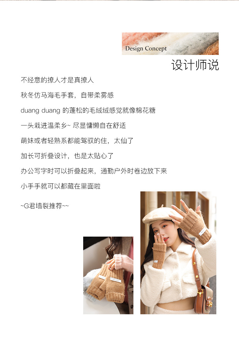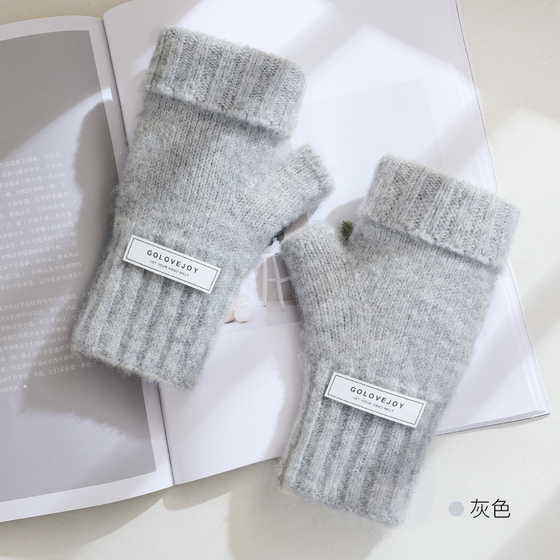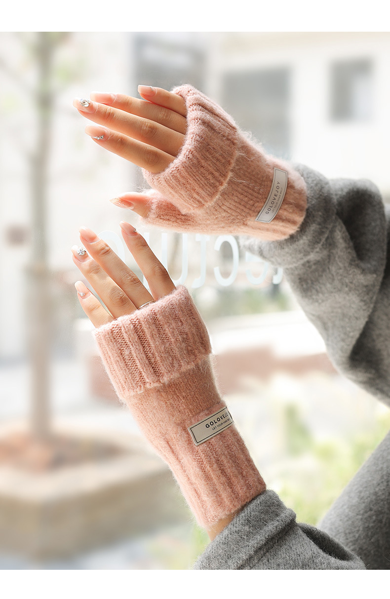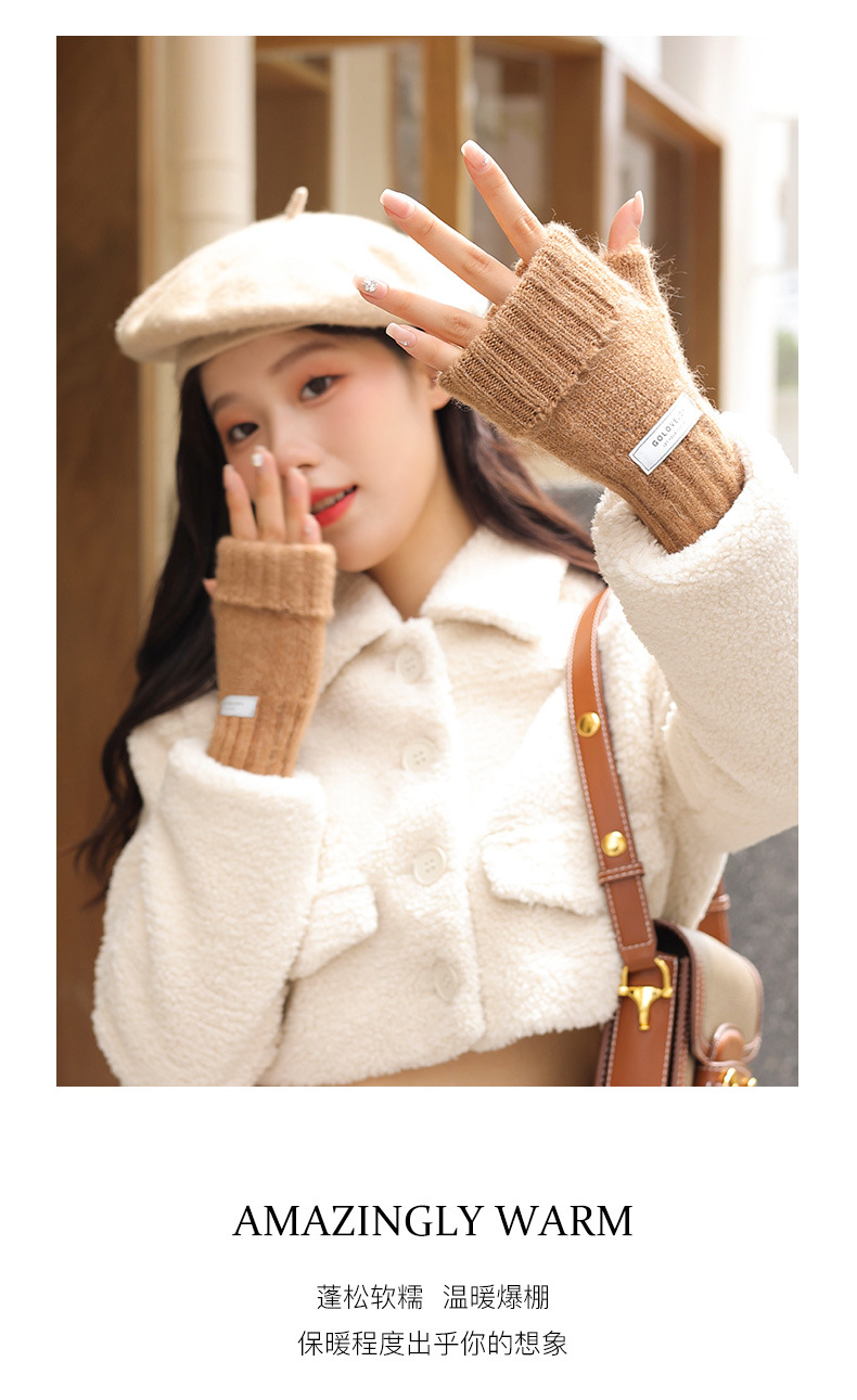 겨울 새로운 한국식 반 손가락 니트 장갑 여자의 가을 기모 두꺼운 모조 모헤어 오픈 손가락 따뜻한 장갑