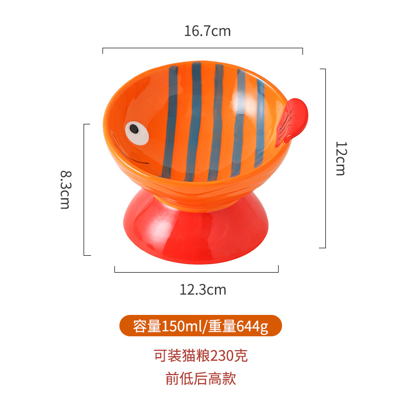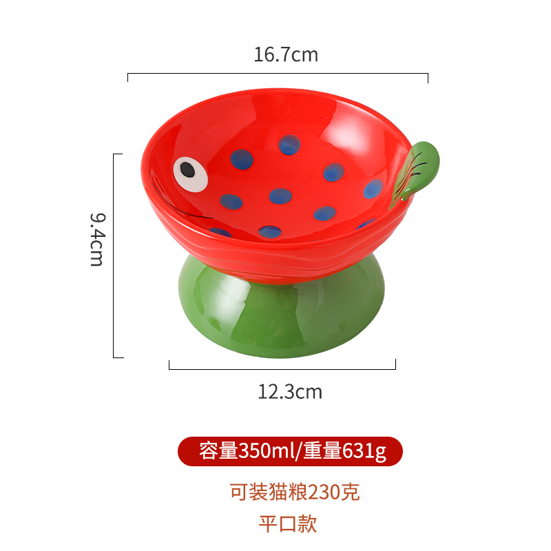 물고기 재미 고양이 그릇 세라믹 안티 노크 안티 블랙 턱 높은 발 플랫 입 비스듬한 목 보호 마시는 애완 동물 그릇 고양이와 개 음식 분지